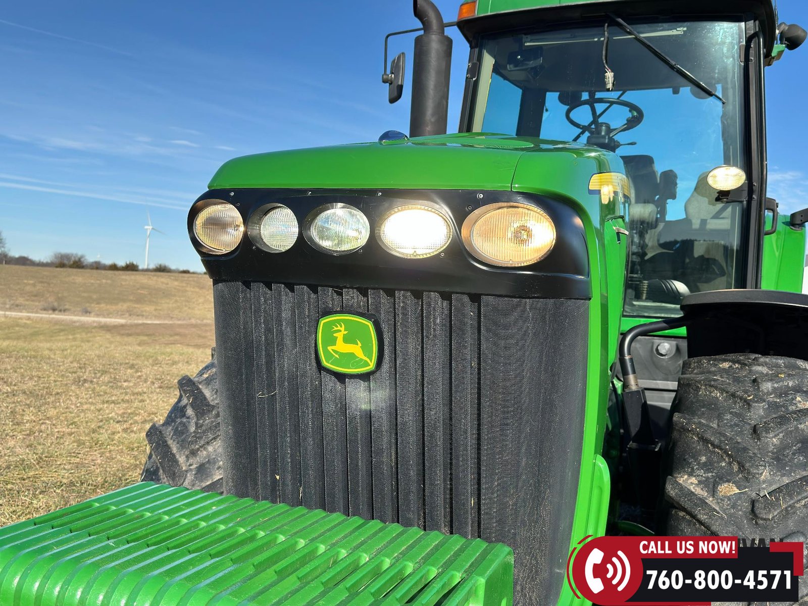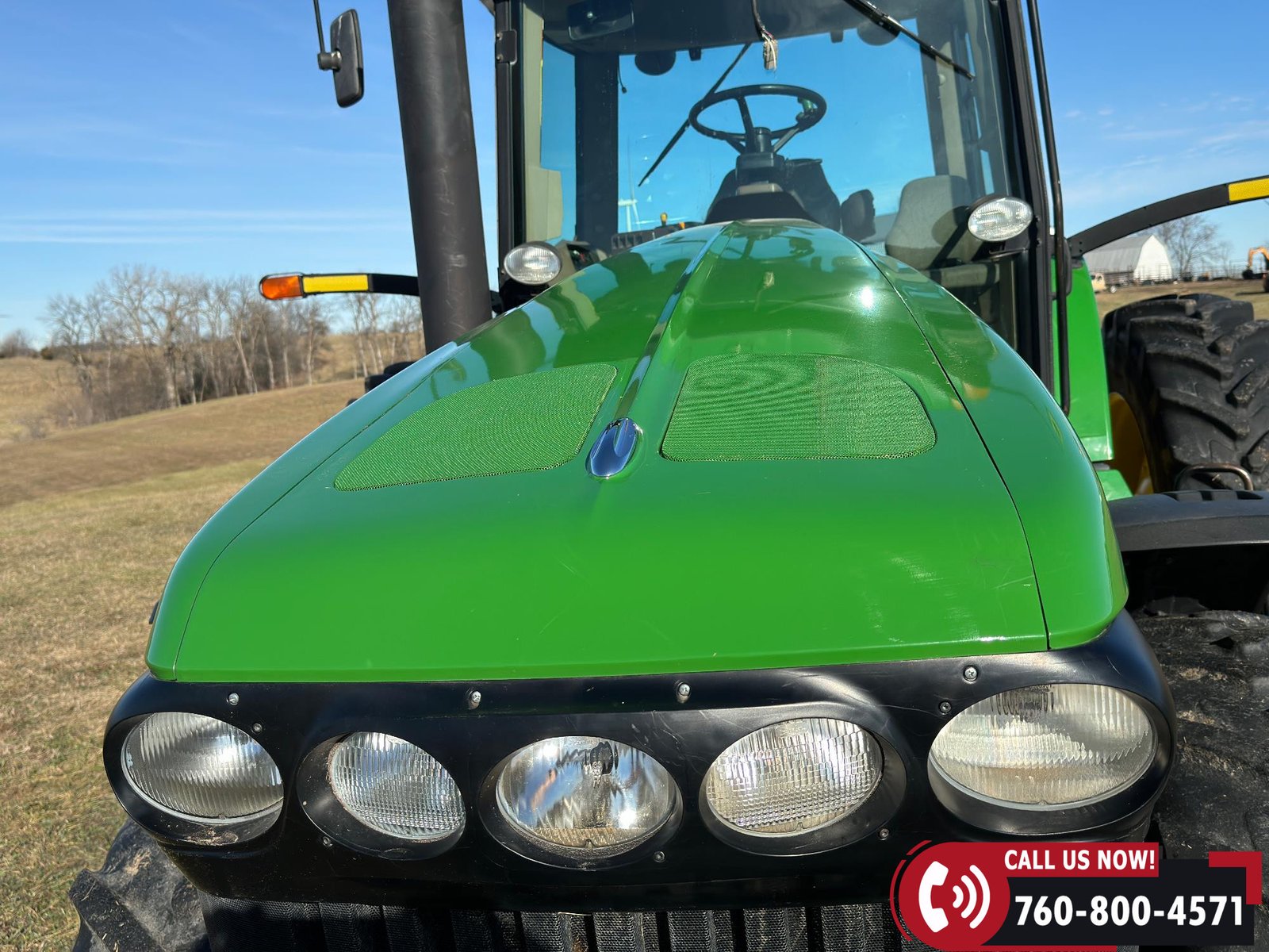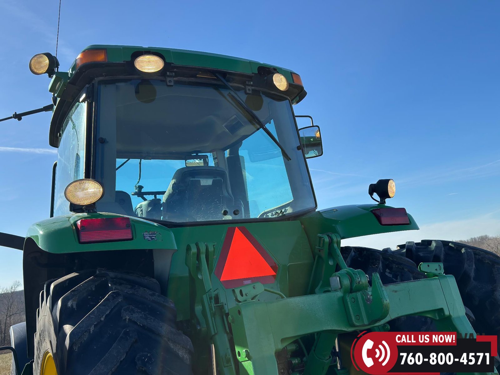 Additional equipment includes a Category IV drawbar with hammer strap, rear wheel weights, and 20 front suitcase weights. Outfitted with Field Vision Xenon HID lighting, Deluxe Comfort Package, and an active seat for operator comfort.