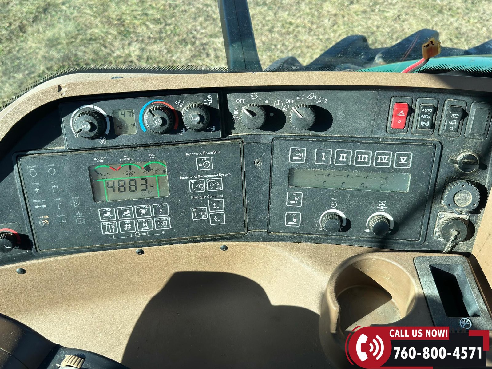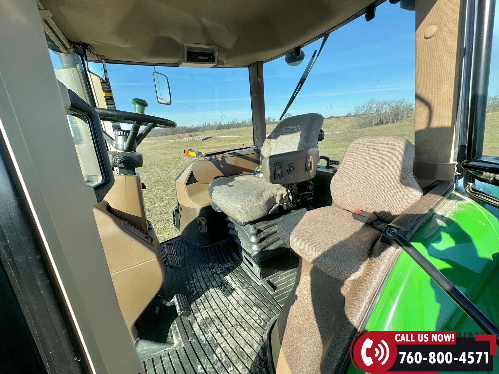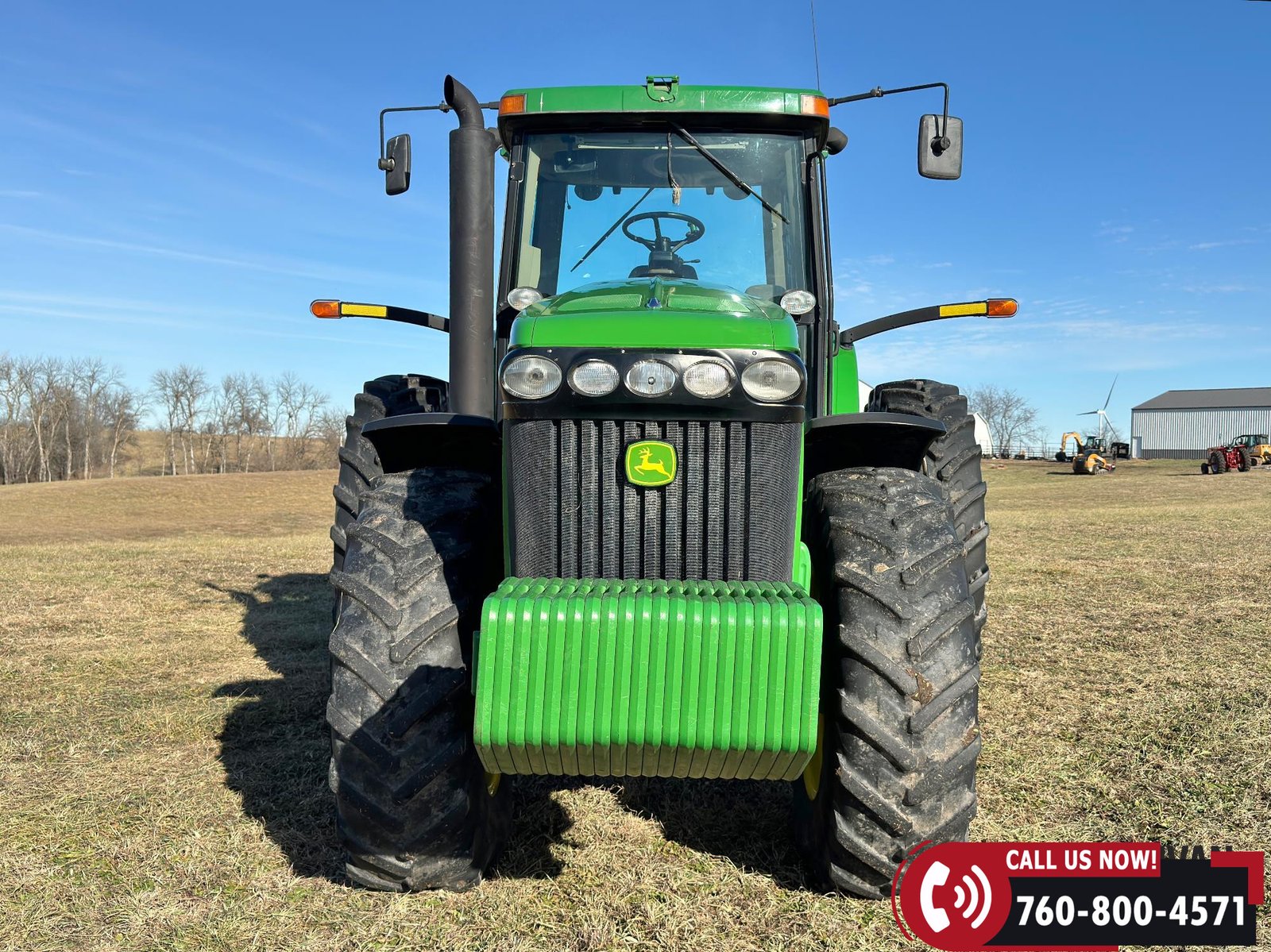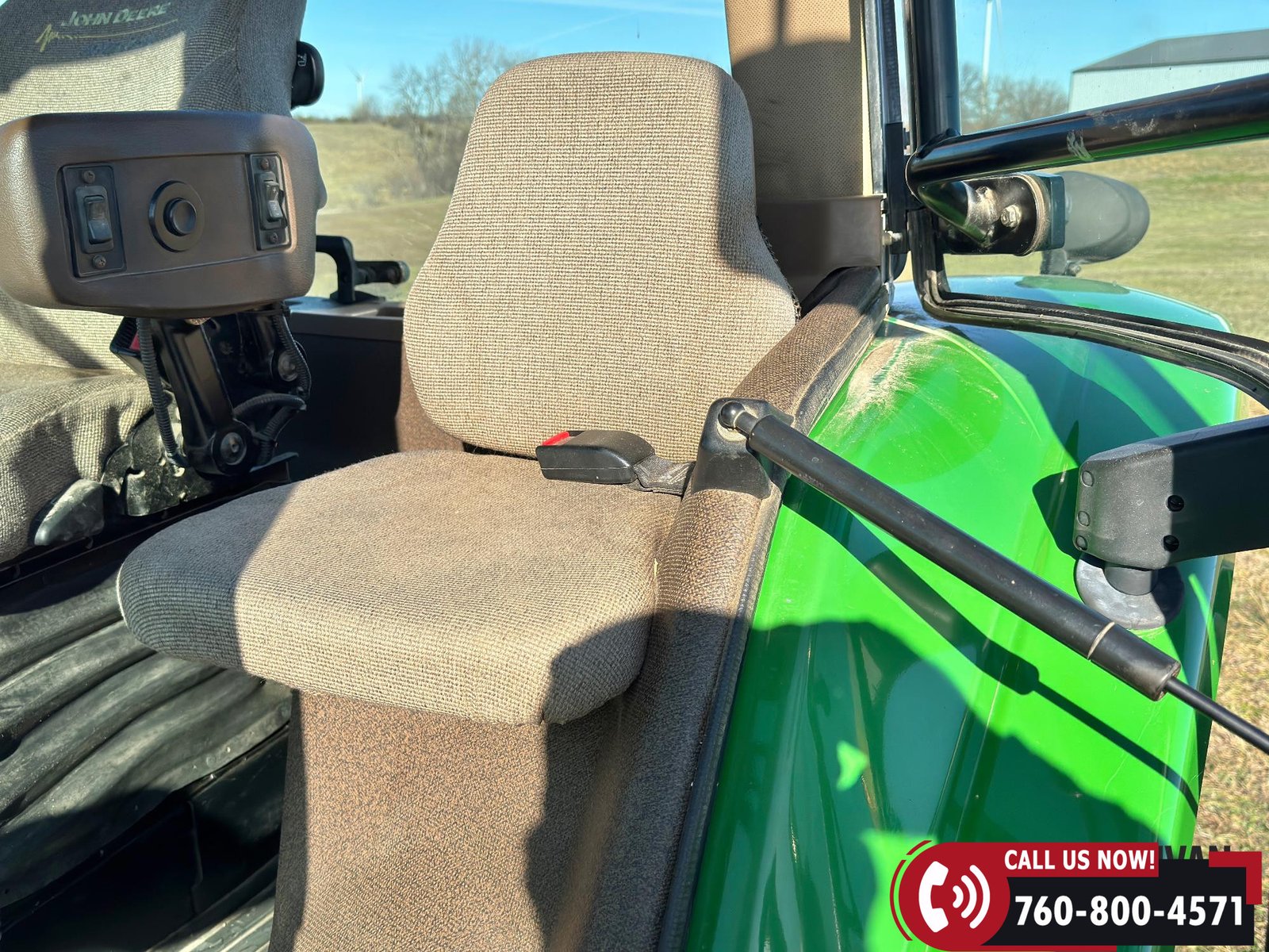 Additional equipment includes a Category IV drawbar with hammer strap, rear wheel weights, and 20 front suitcase weights. Outfitted with Field Vision Xenon HID lighting, Deluxe Comfort Package, and an active seat for operator comfort.