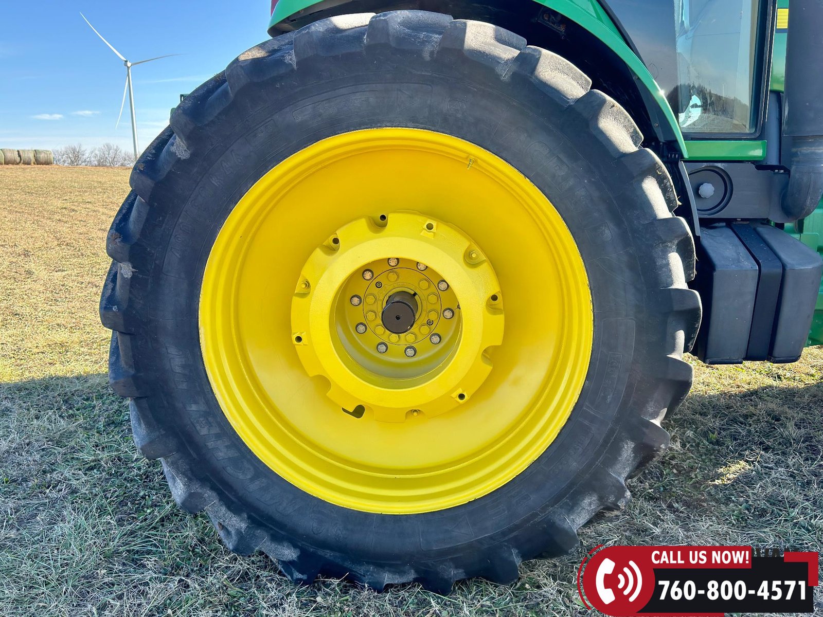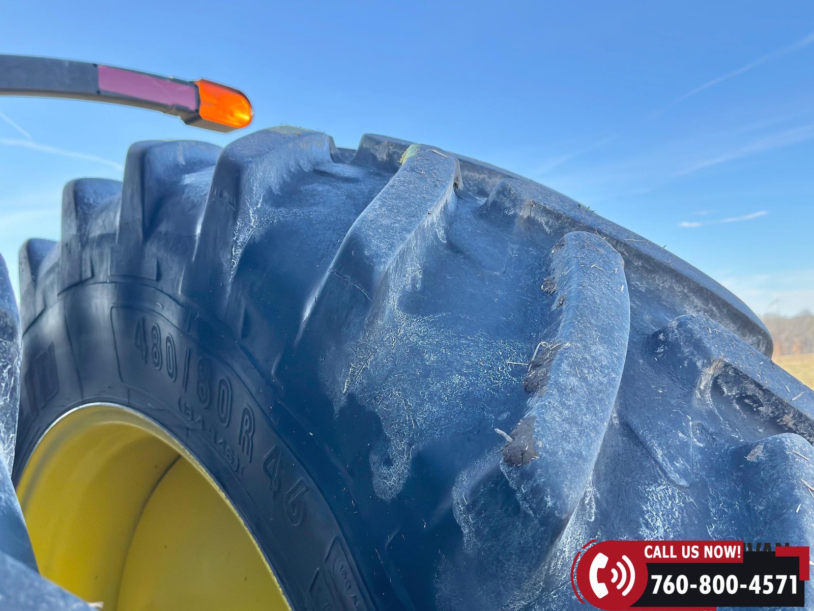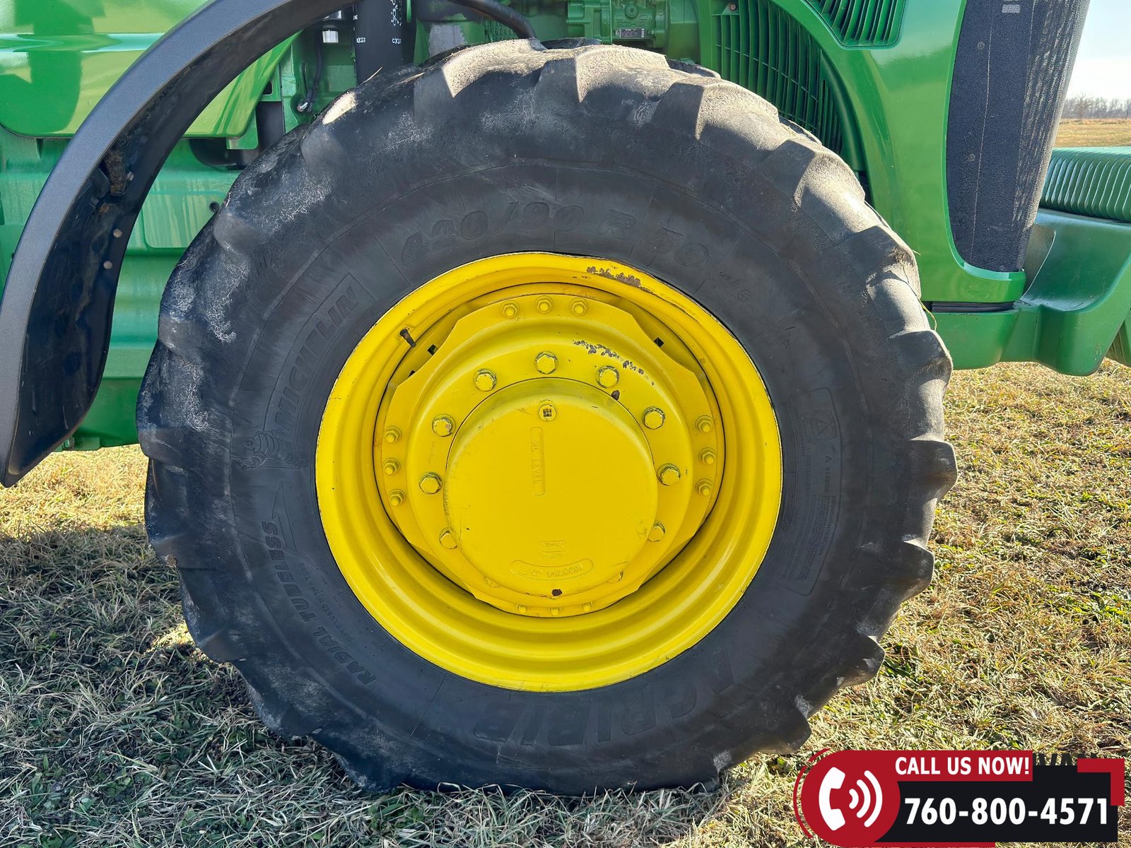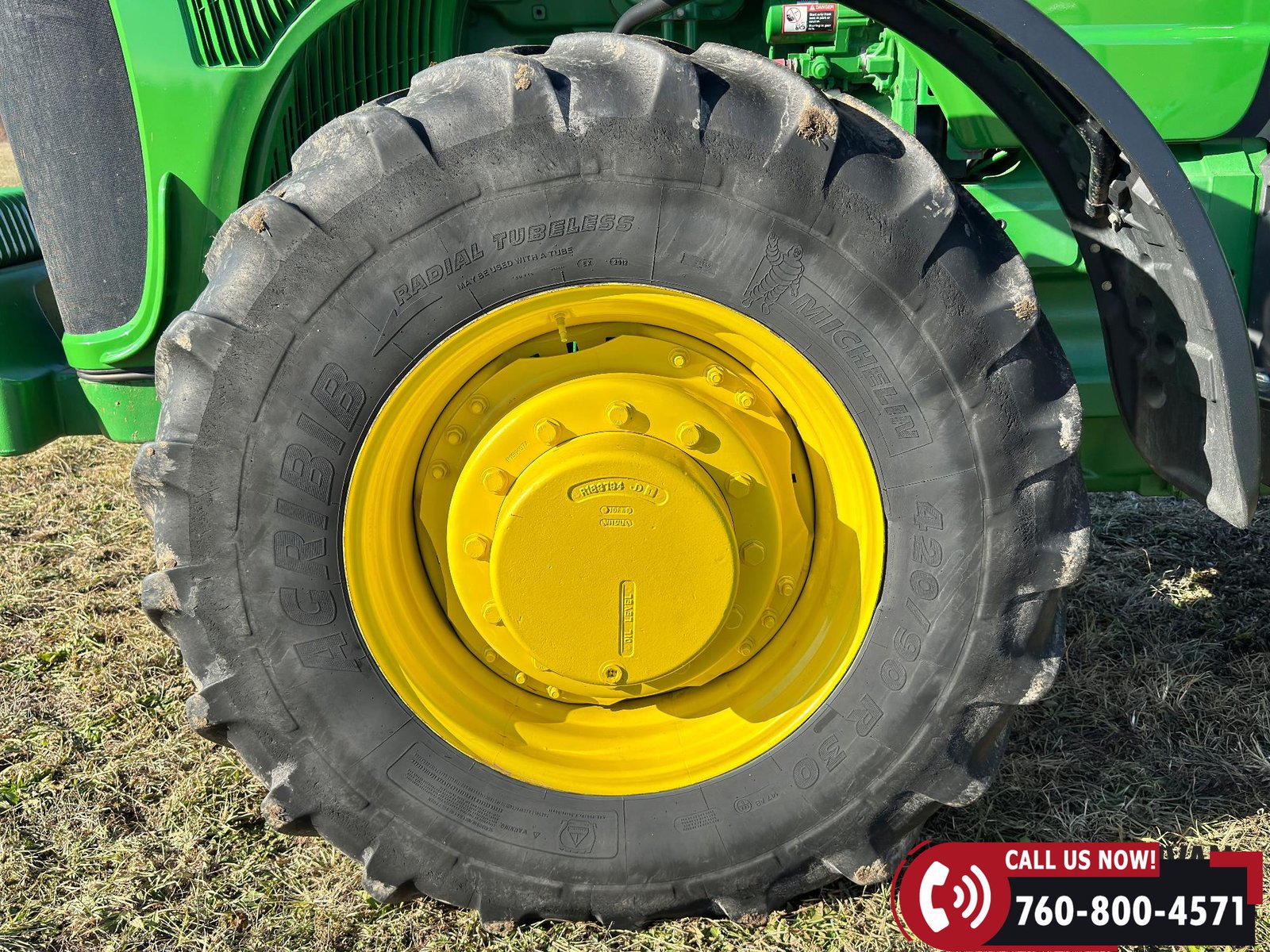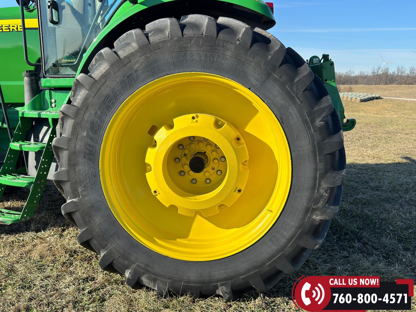 Rides on 420/90R30 front tires and 480/80R46 rear tires.
