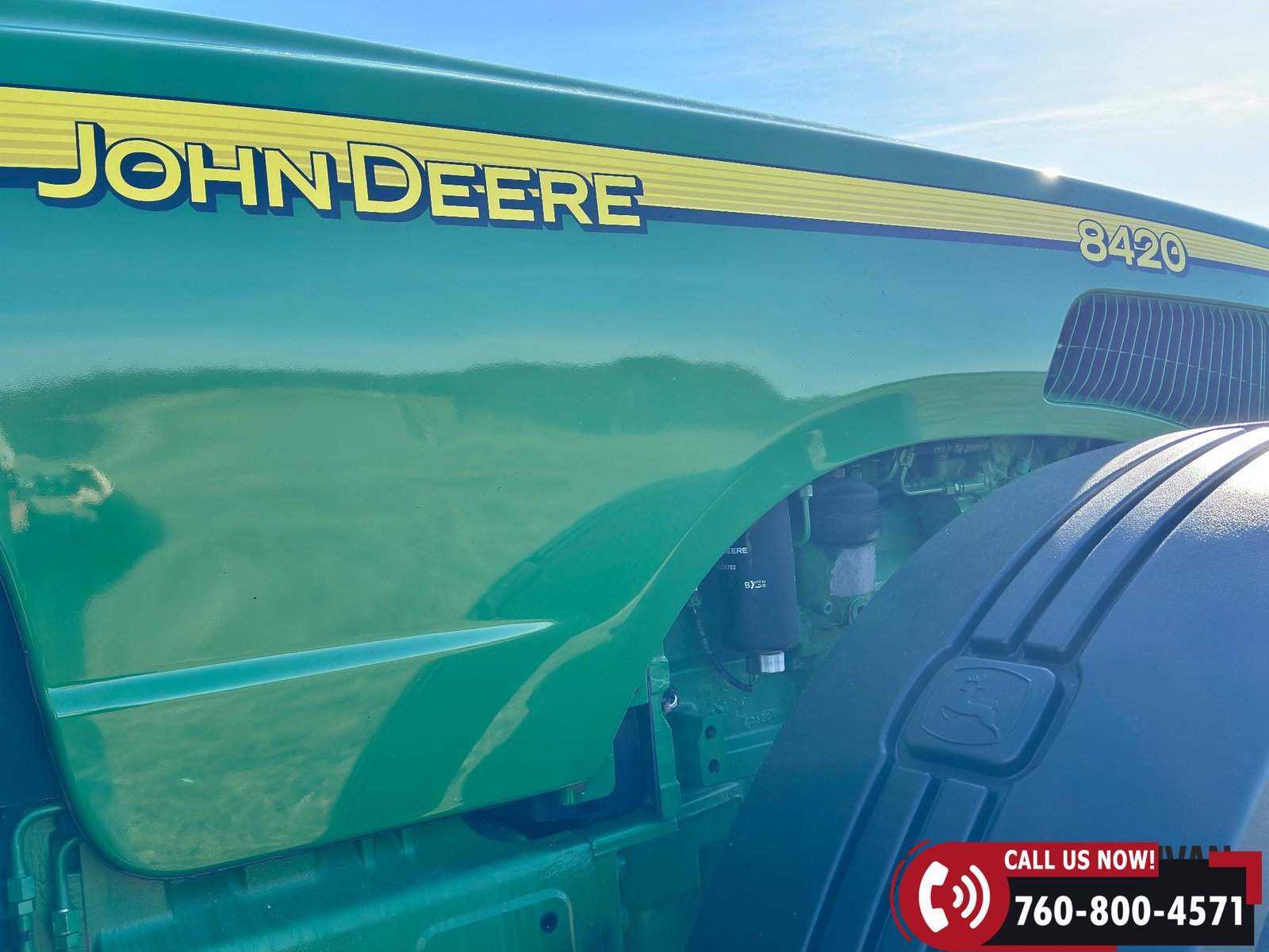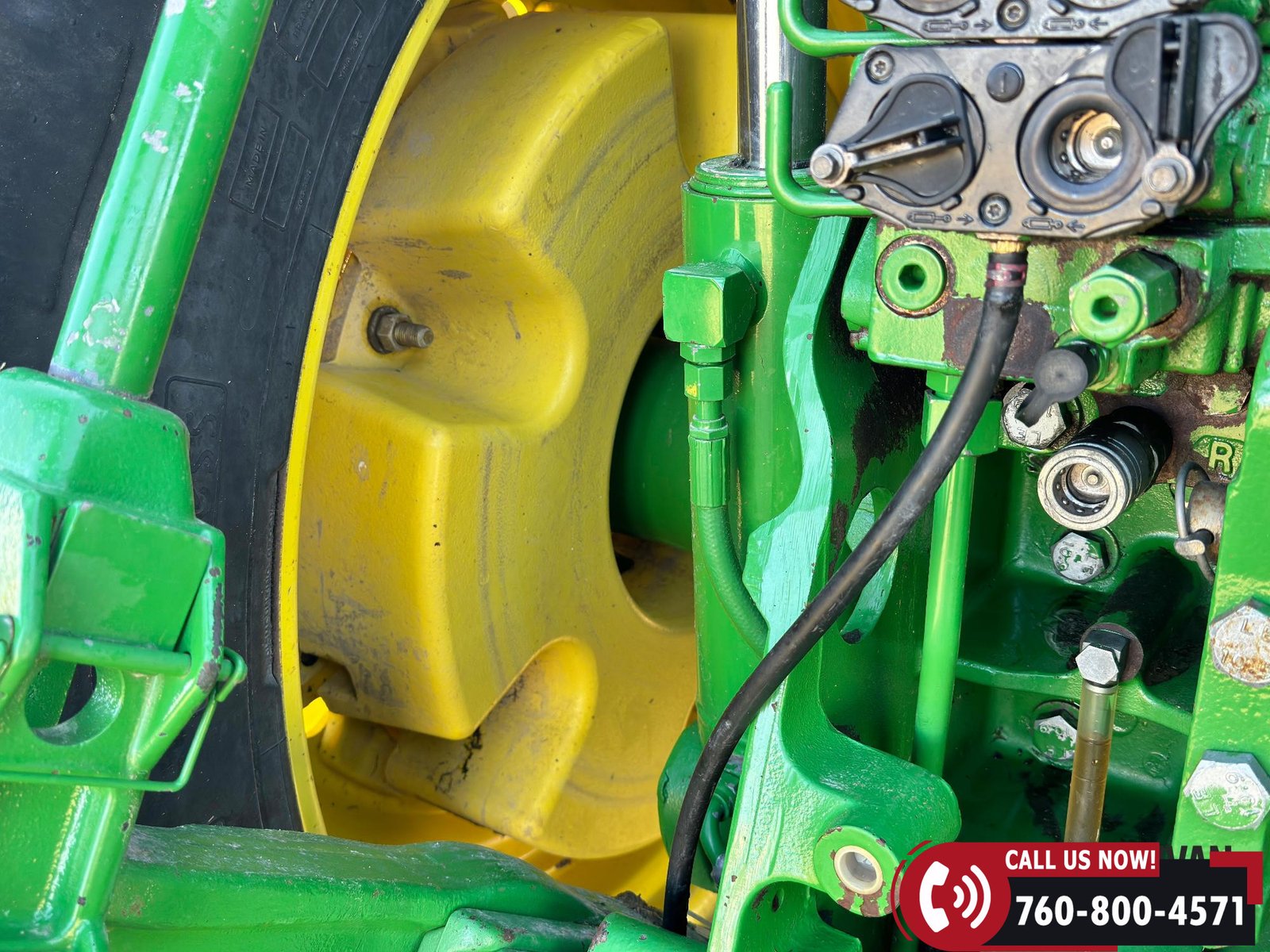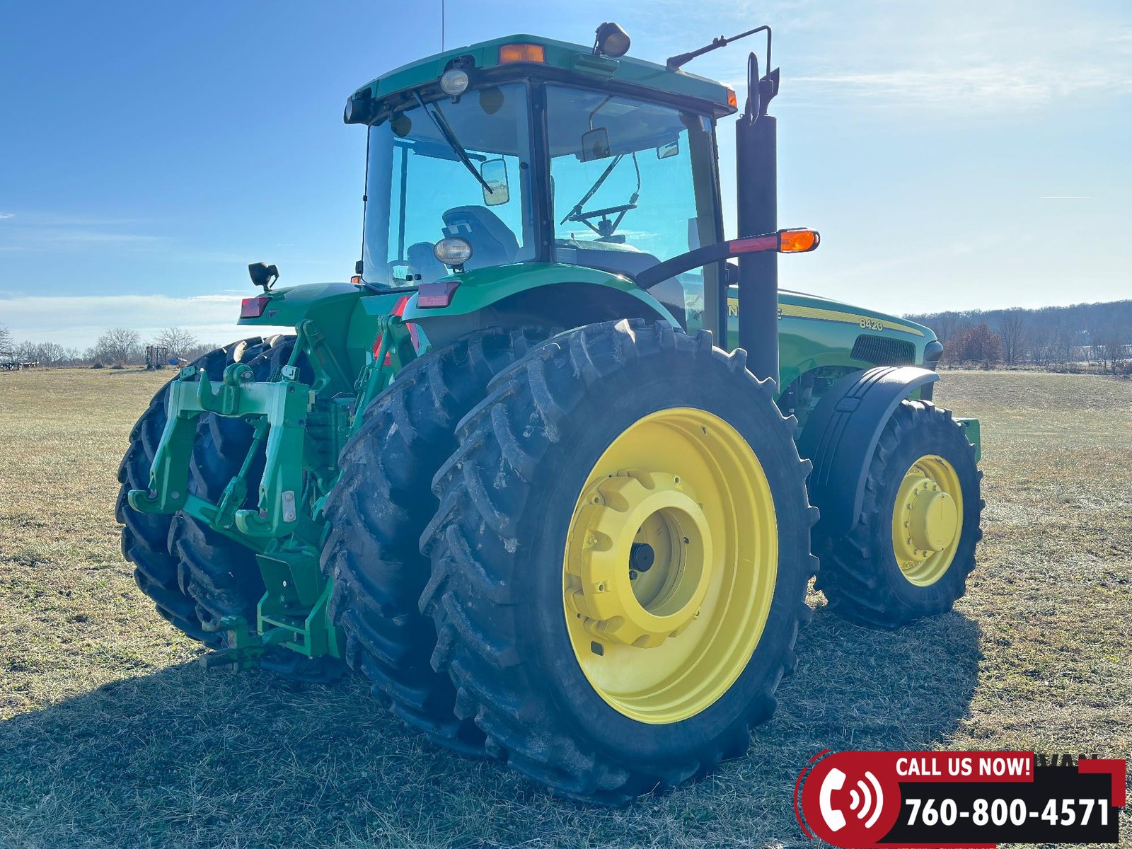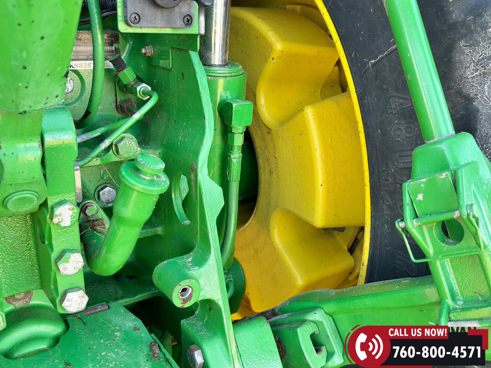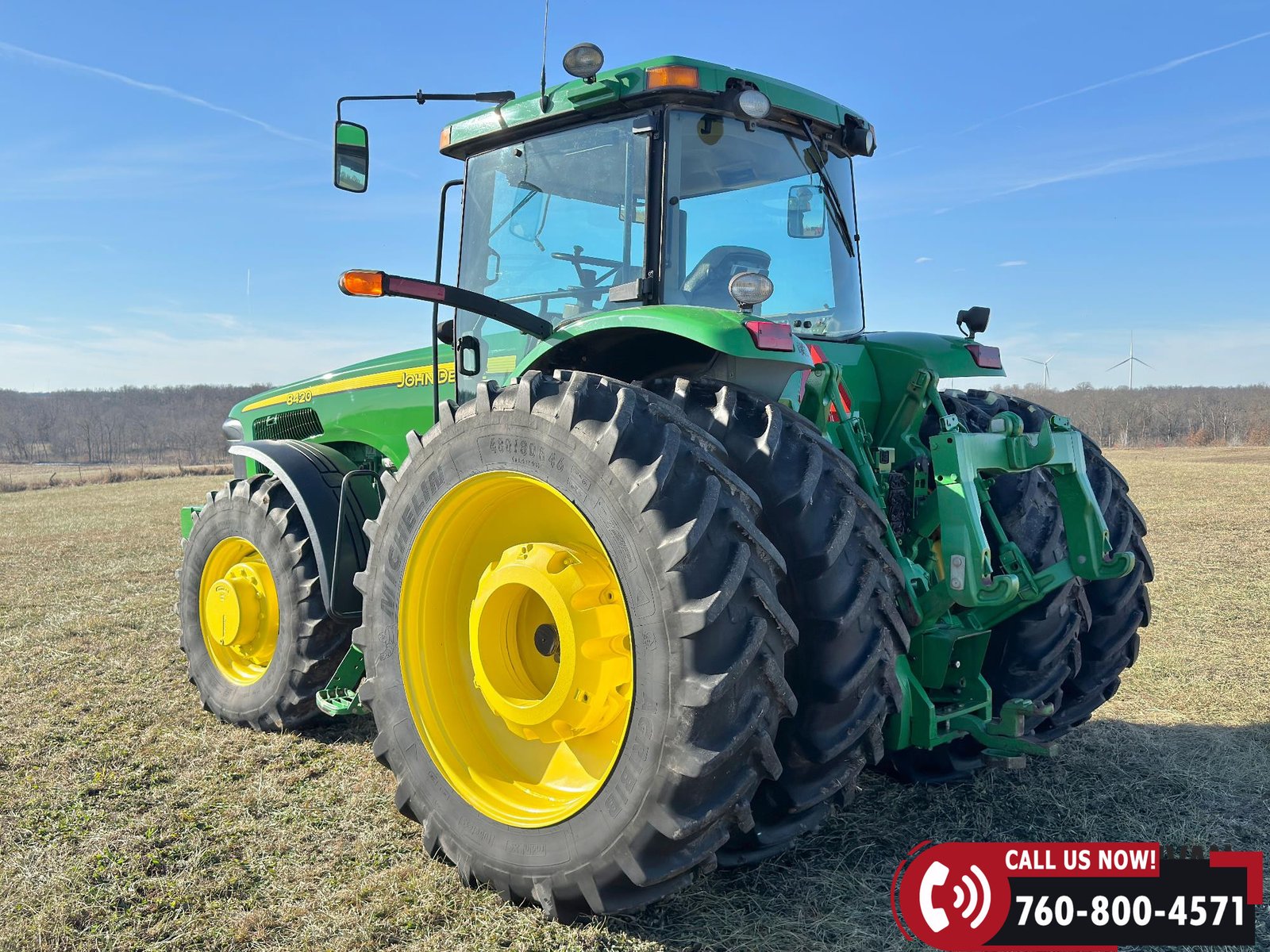 Rides on 420/90R30 front tires and 480/80R46 rear tires.