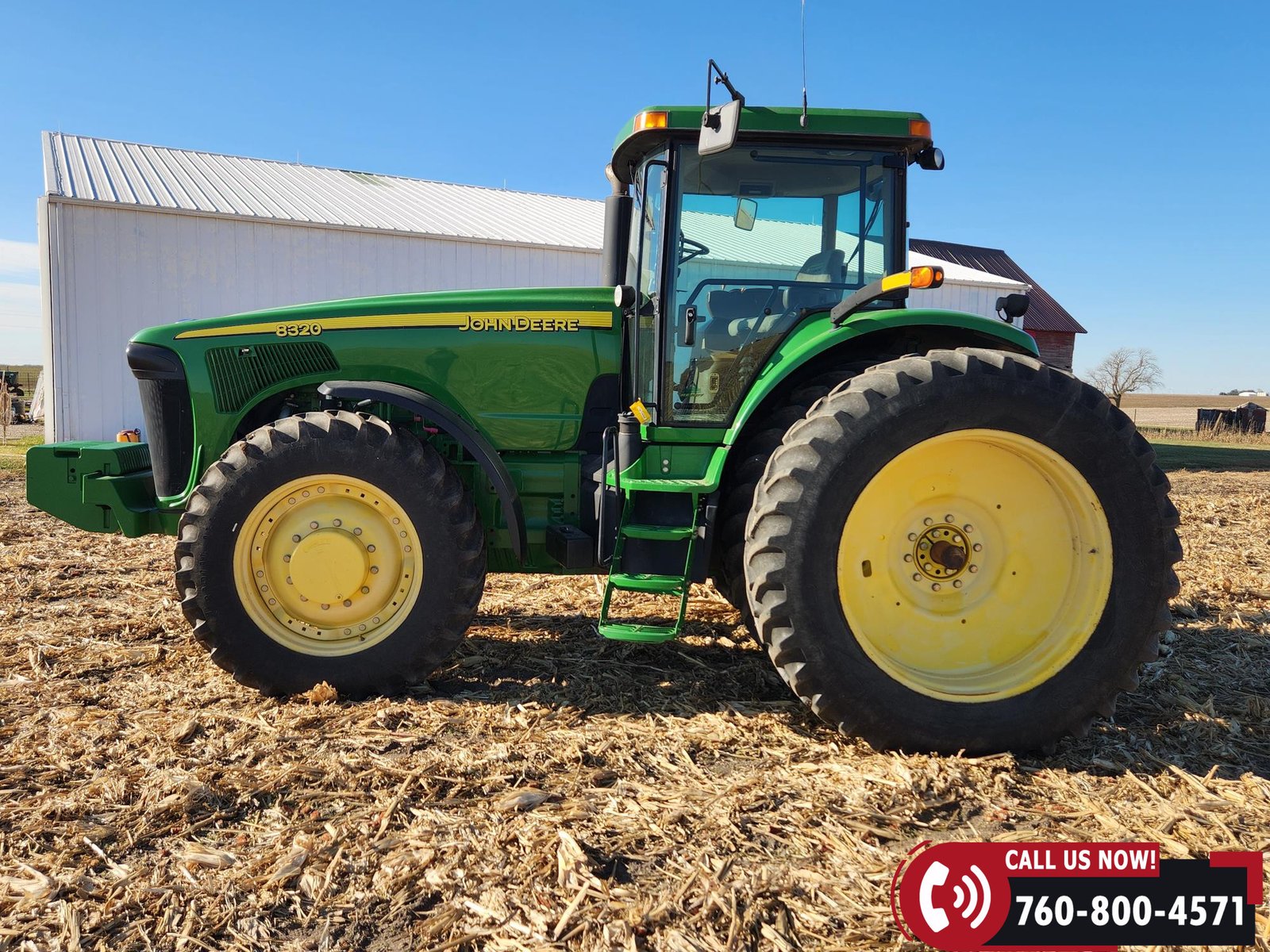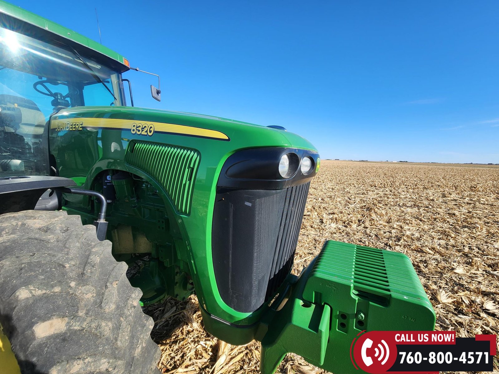 2005 John Deere 8320 MFWD Tractor with 2,267 hours showing. Powered by a John Deere 8.1L 6-cylinder diesel engine and equipped with a 16-speed PowerShift transmission.