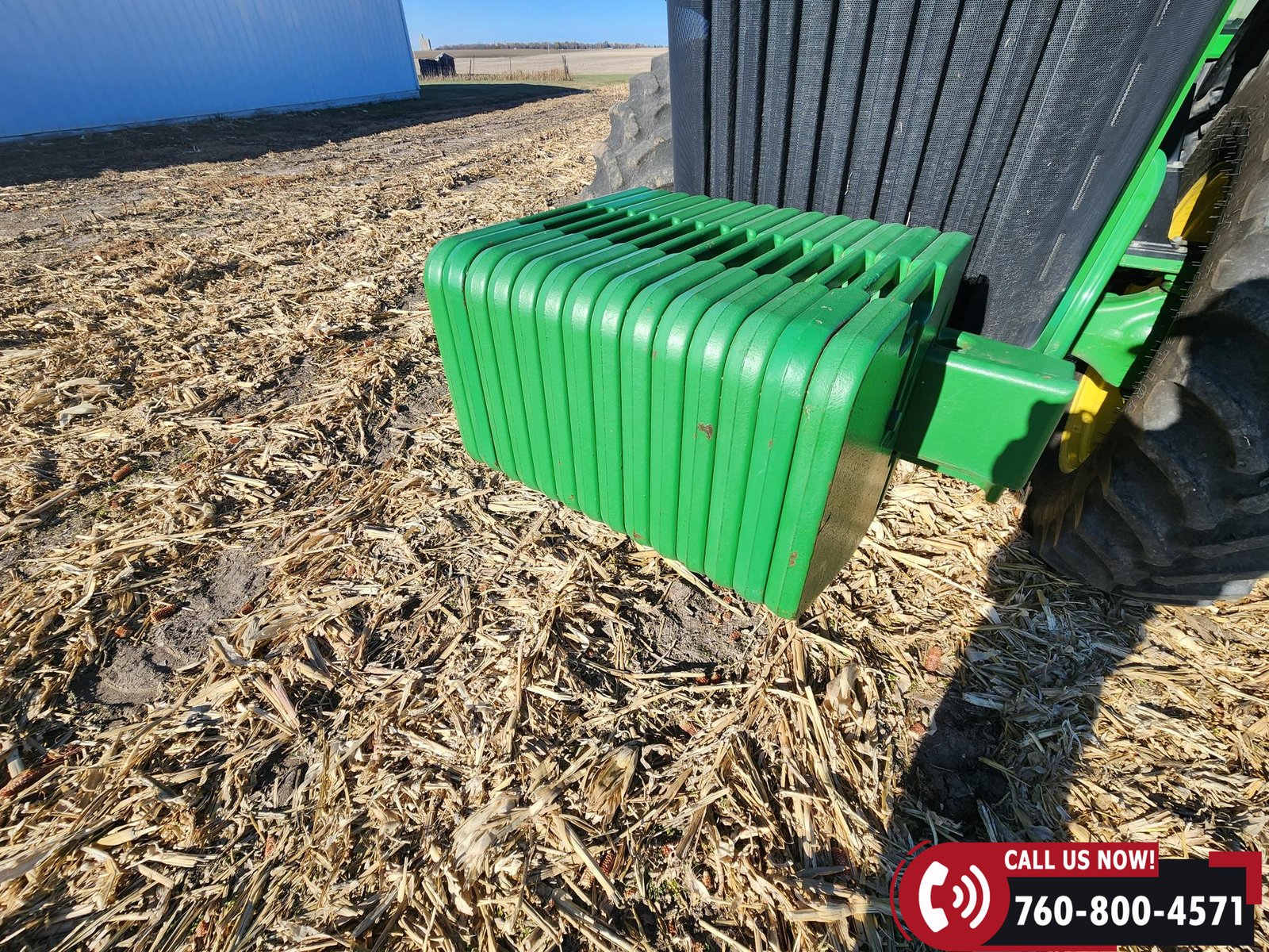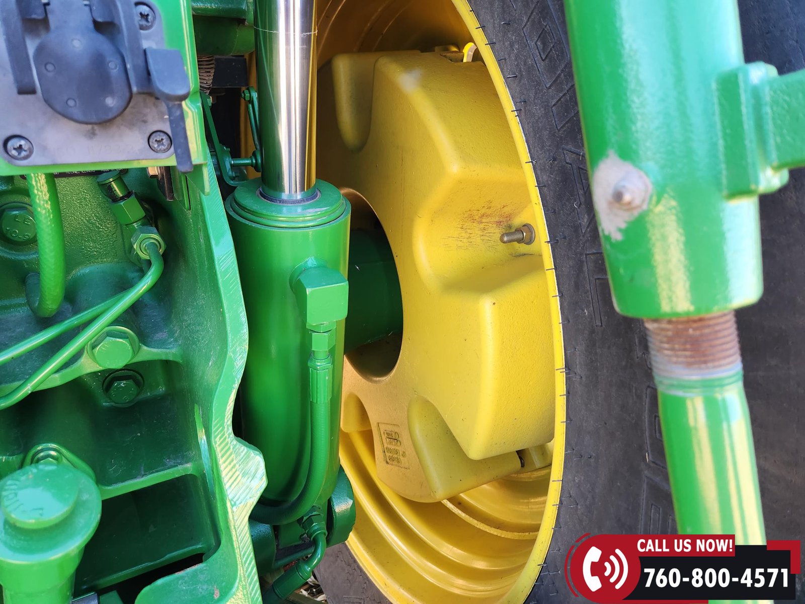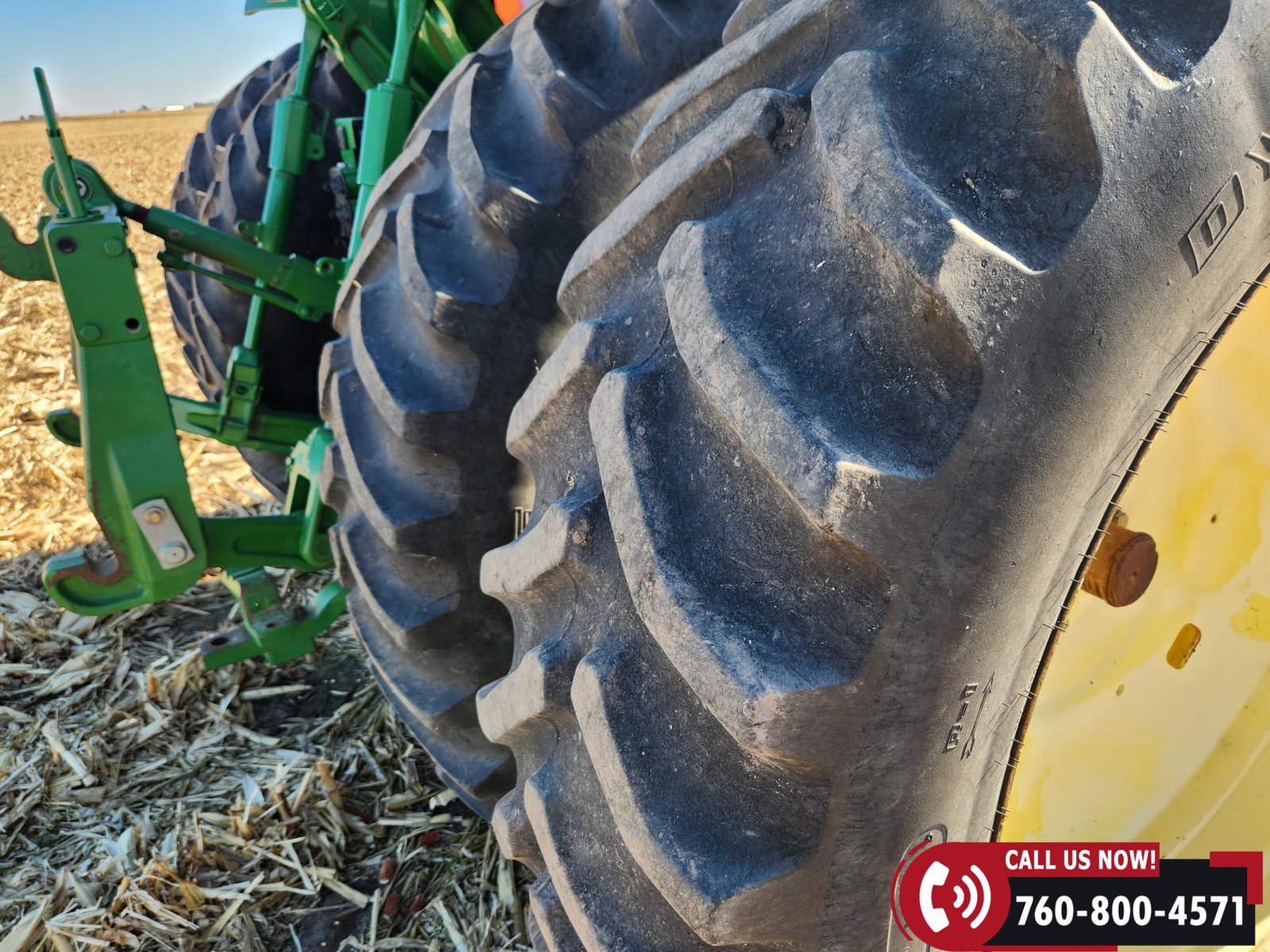 Features include large 1000 PTO, four hydraulic outlets, and a 3-point hitch. Tractor is outfitted with rear duals and inside rear axle weights for added stability and traction.