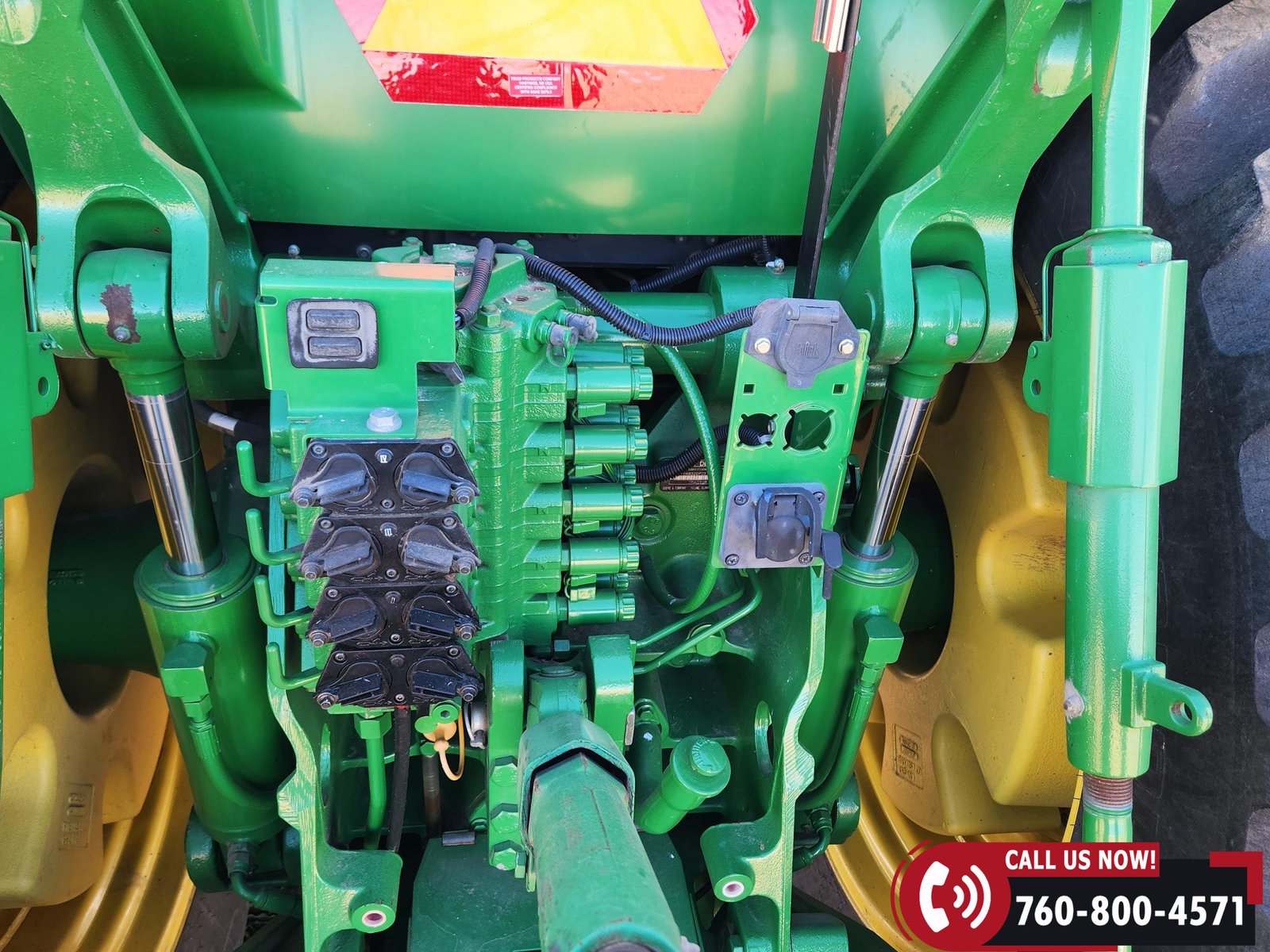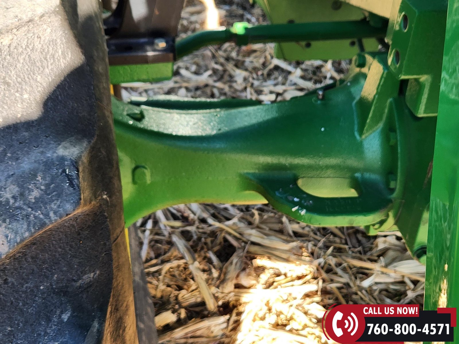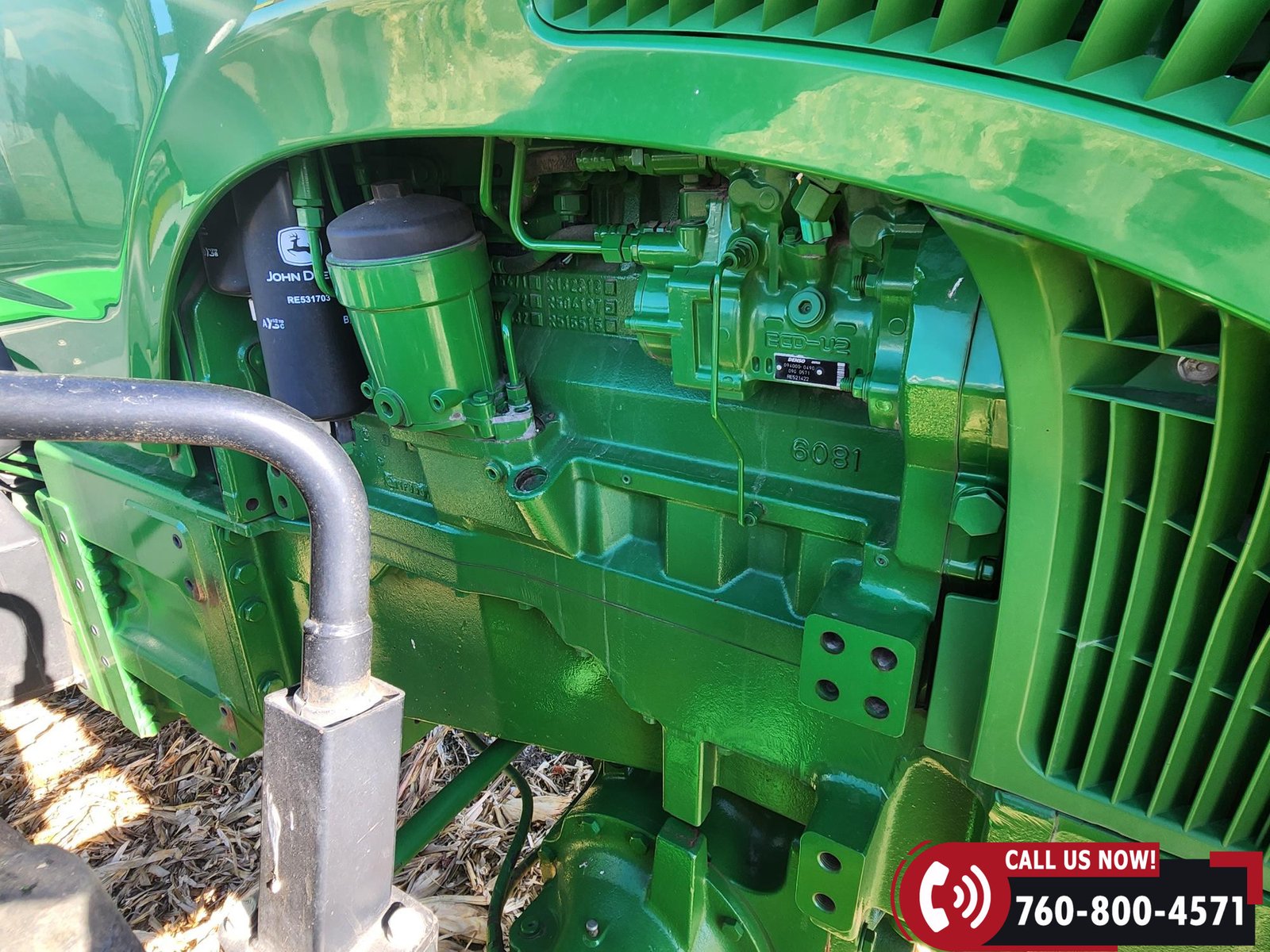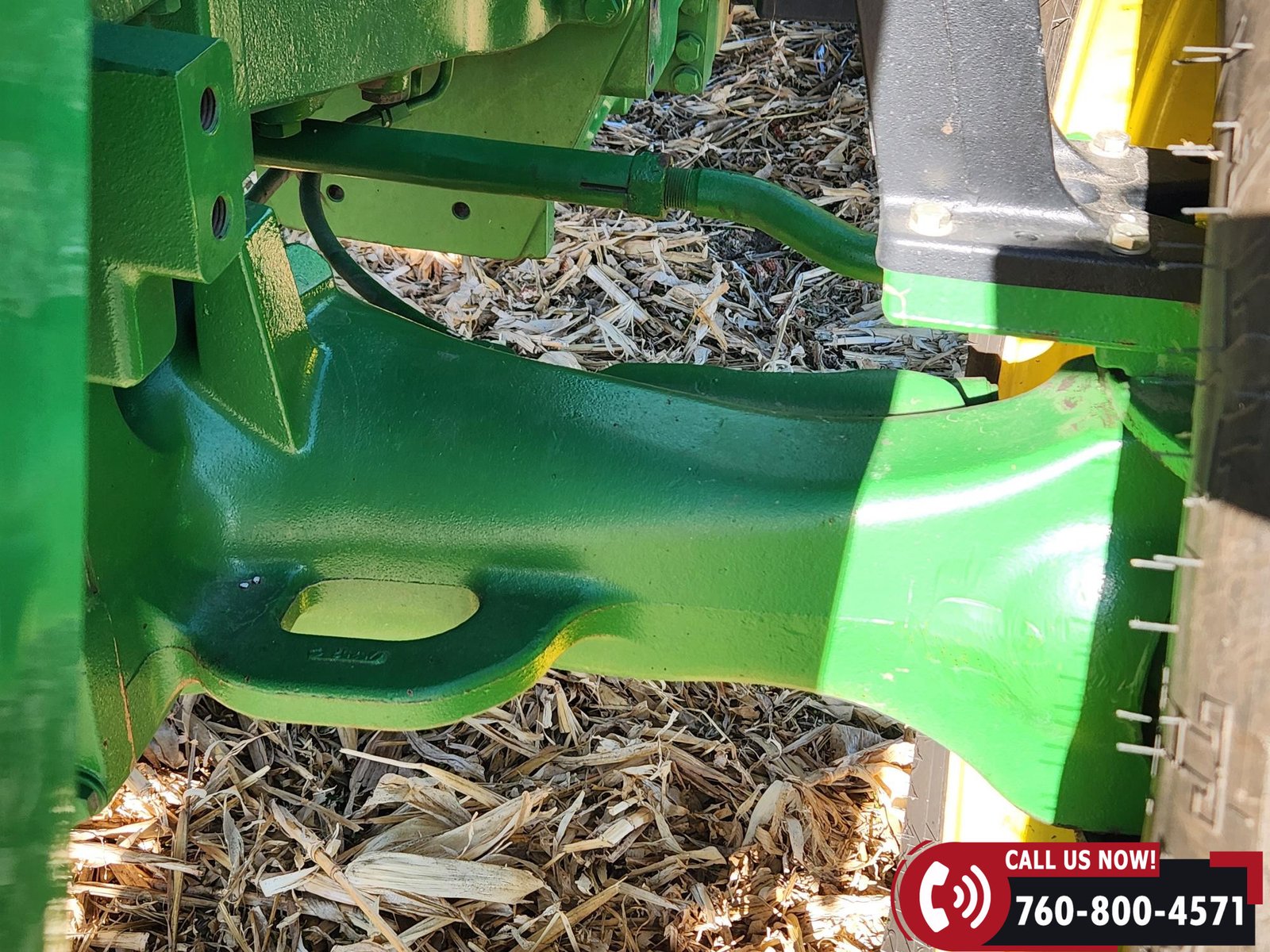 Features include large 1000 PTO, four hydraulic outlets, and a 3-point hitch. Tractor is outfitted with rear duals and inside rear axle weights for added stability and traction.