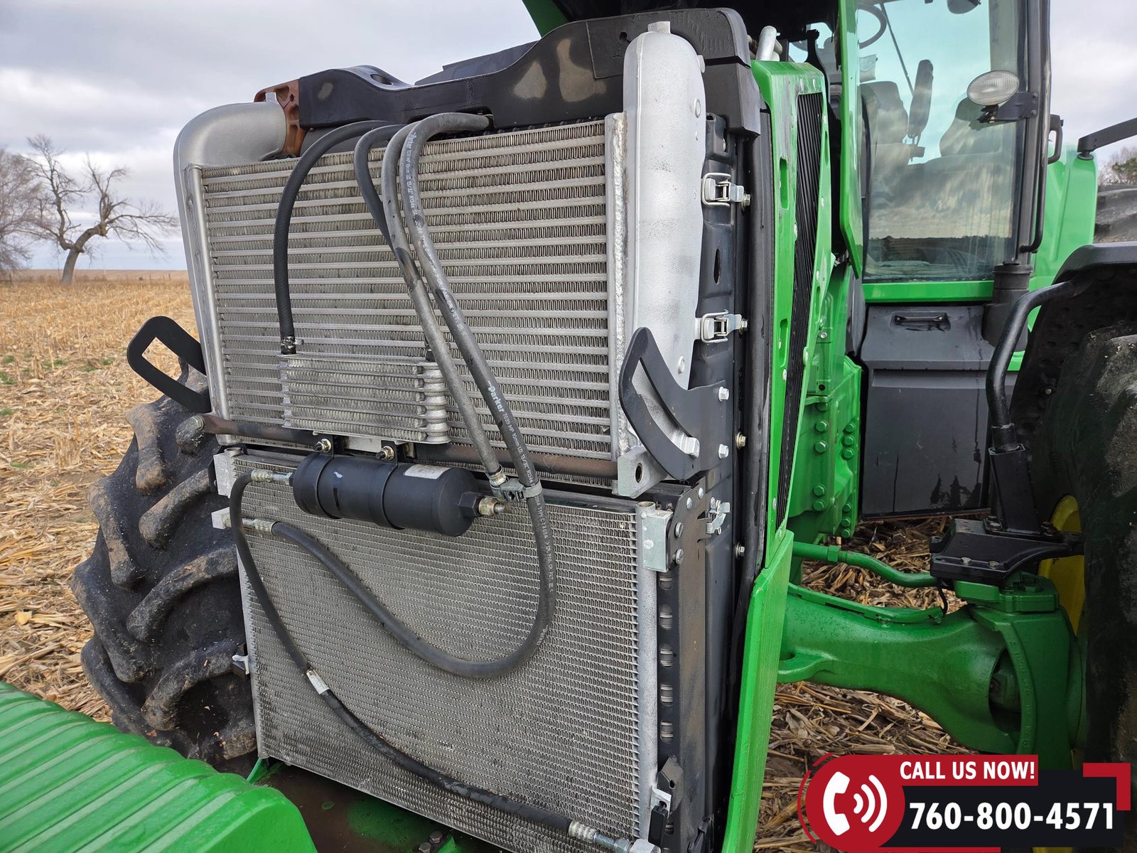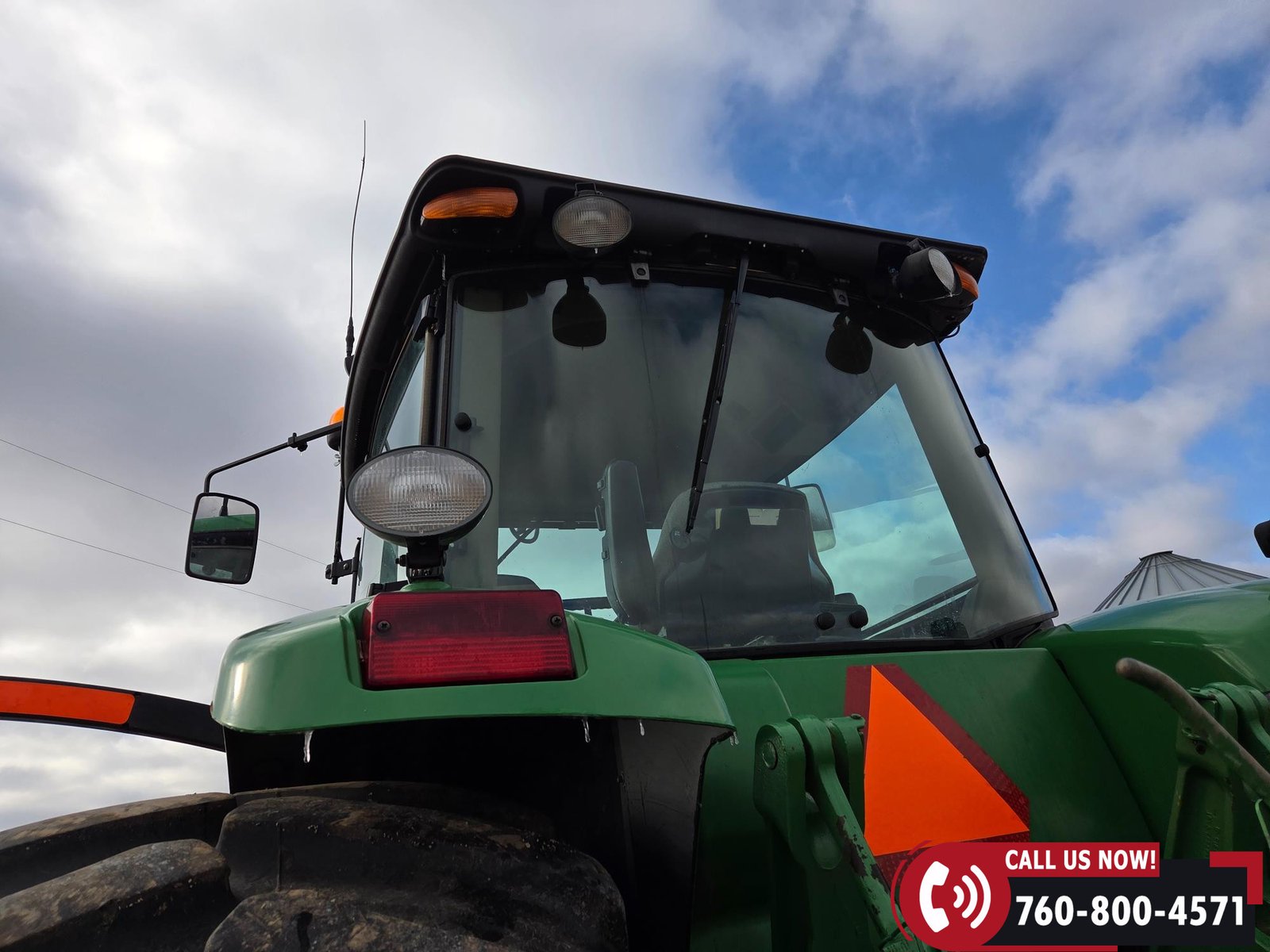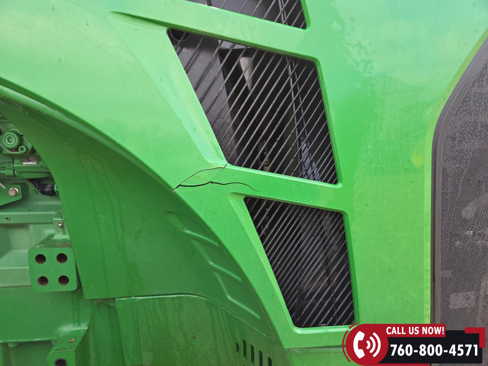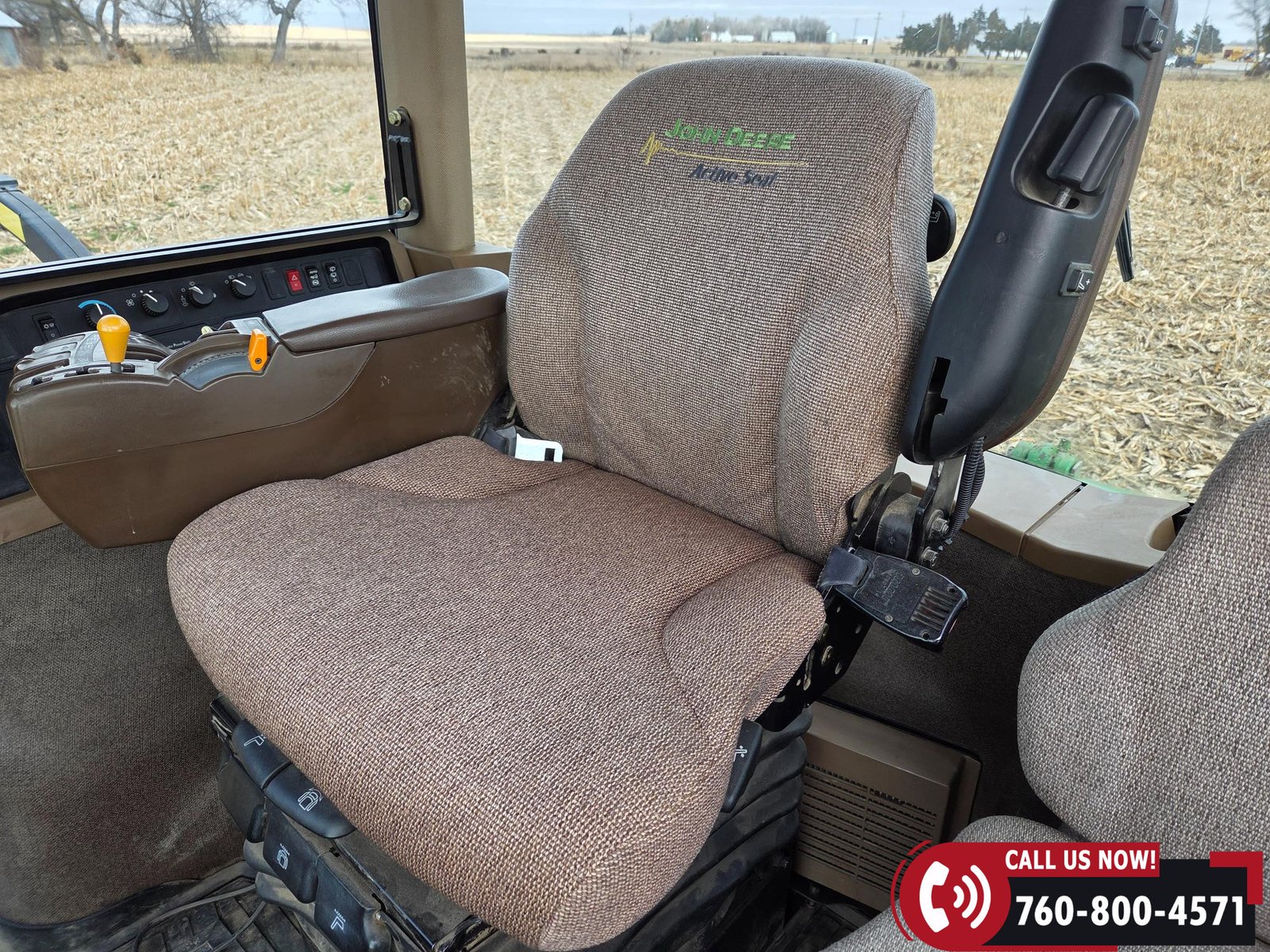 Cab includes a John Deere Active Seat and StarFire 3000 GPS receiver with John Deere display. Note: hood is cracked.
