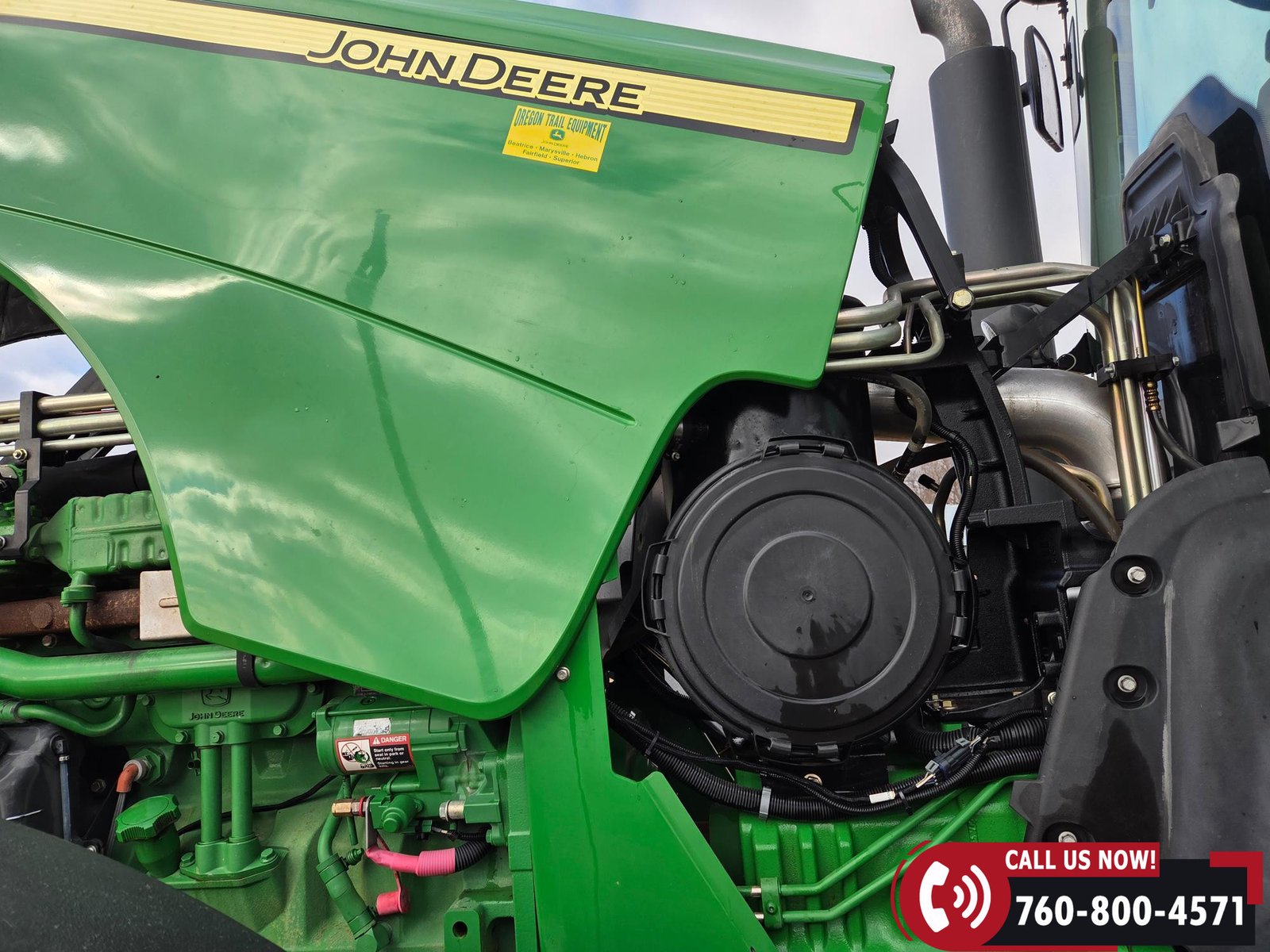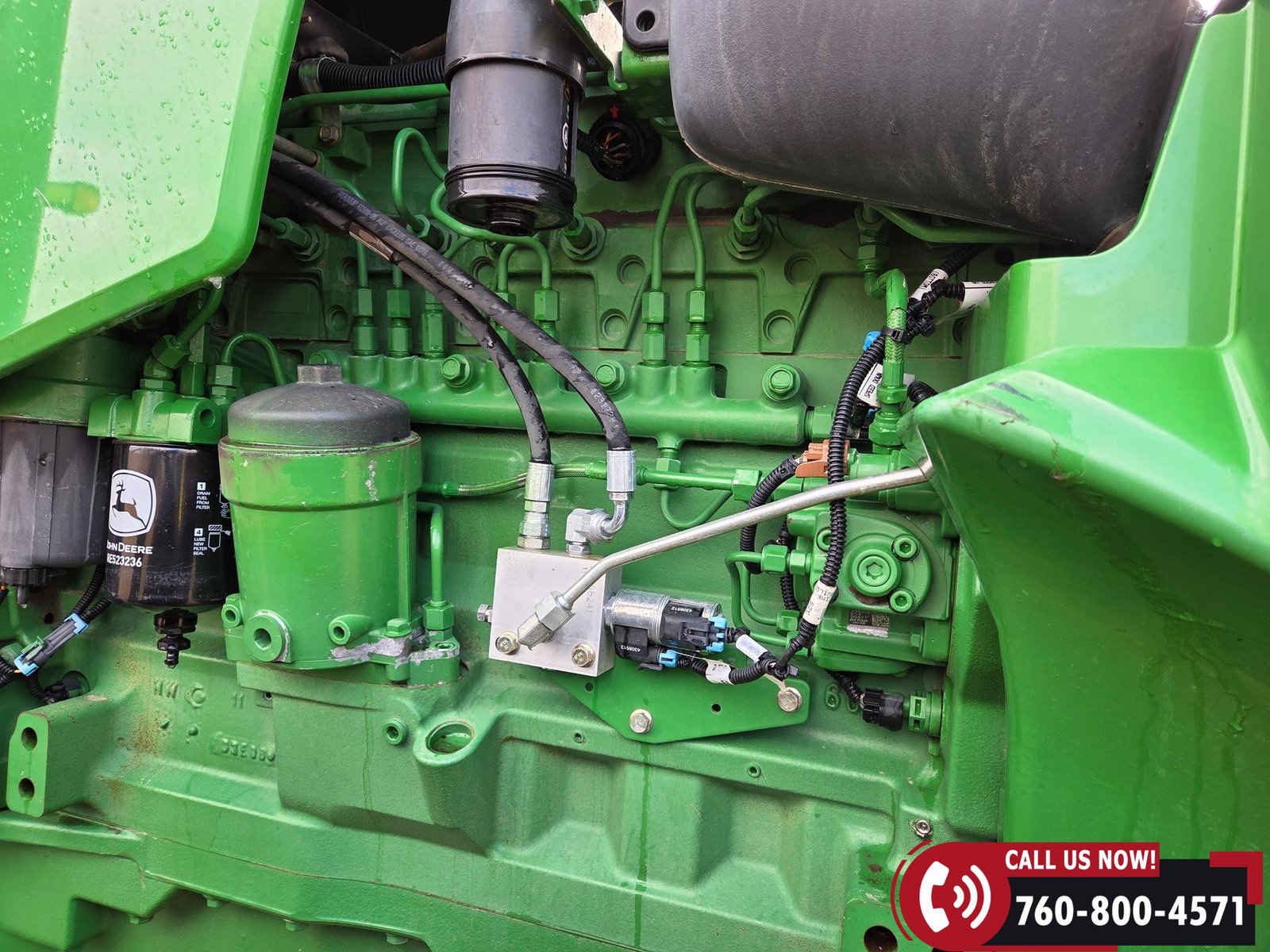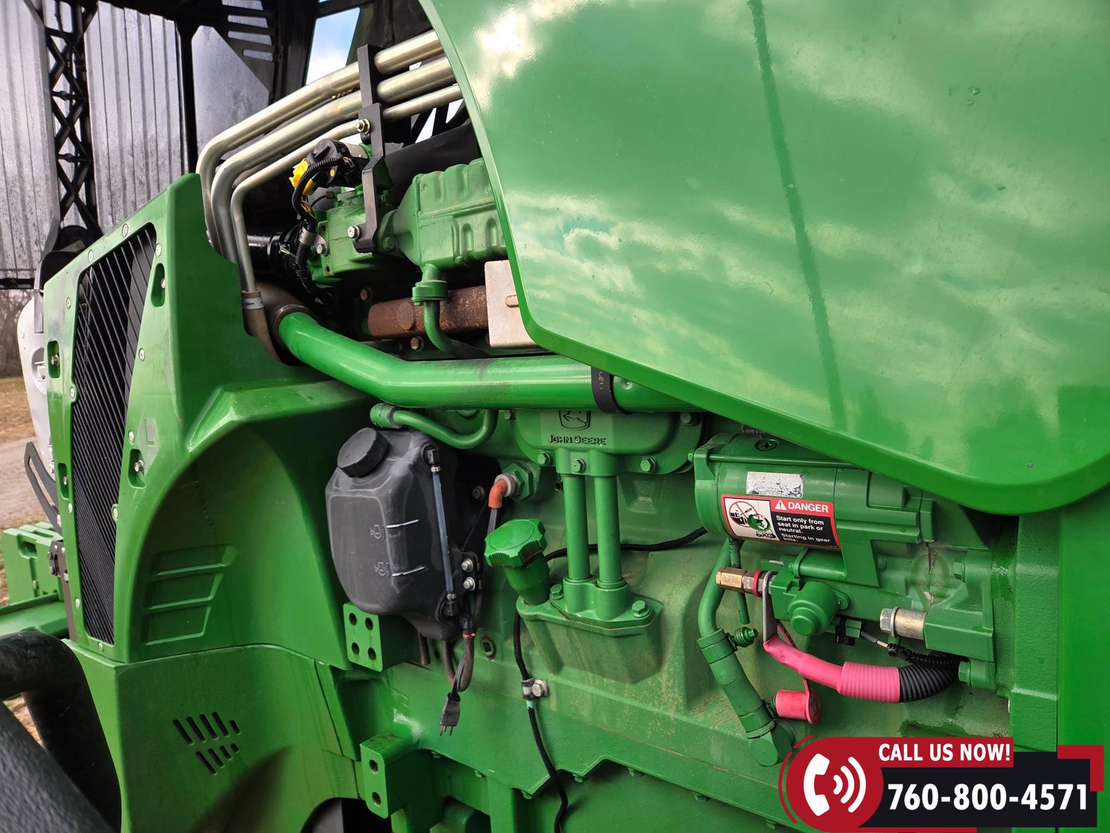 Cab includes a John Deere Active Seat and StarFire 3000 GPS receiver with John Deere display. Note: hood is cracked.