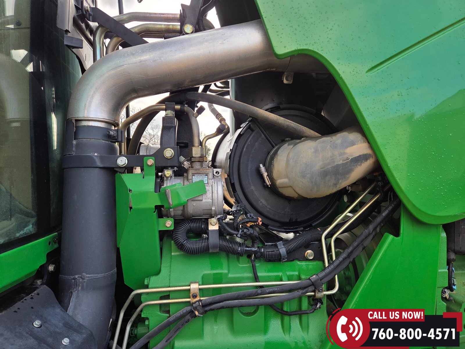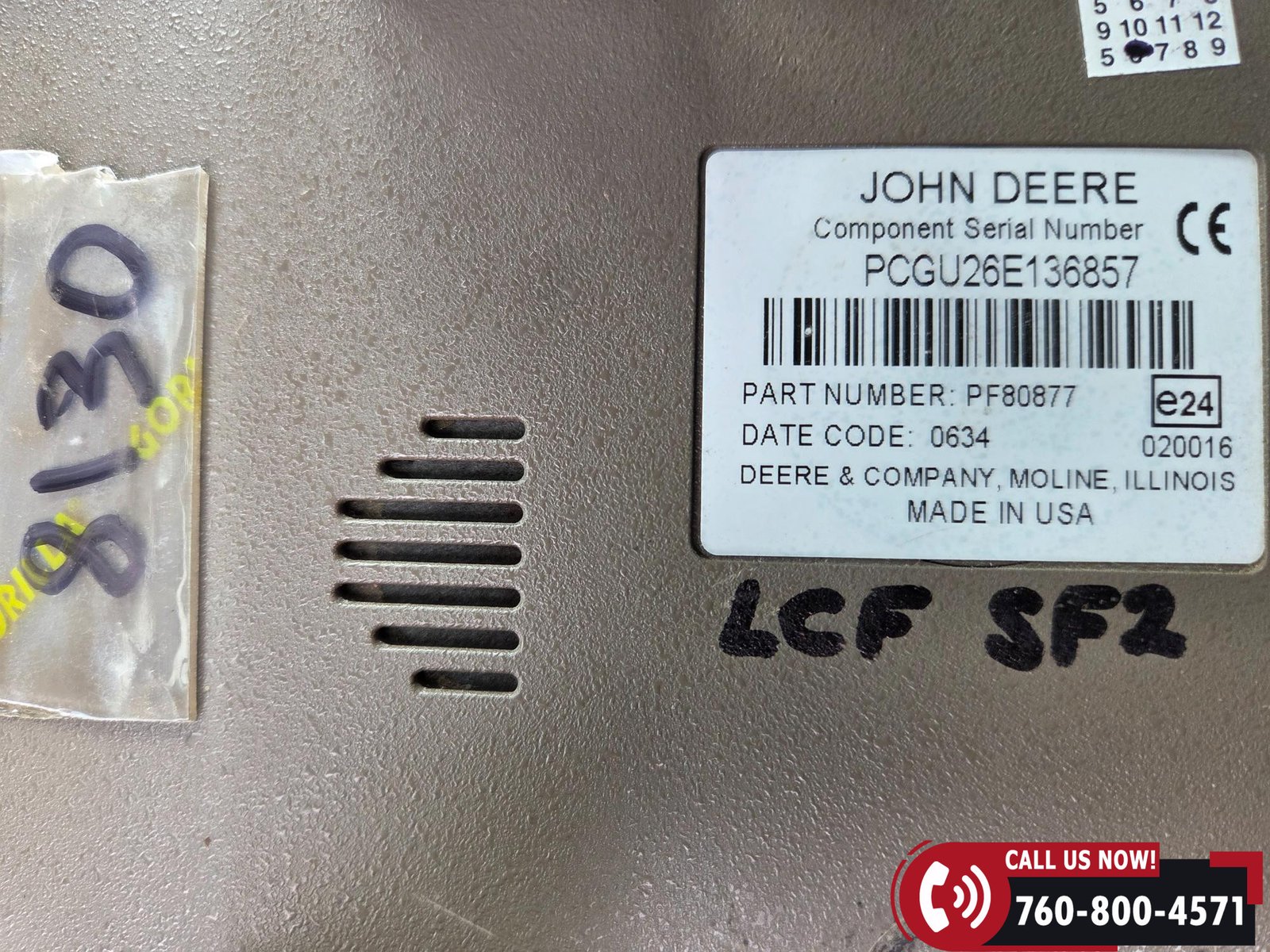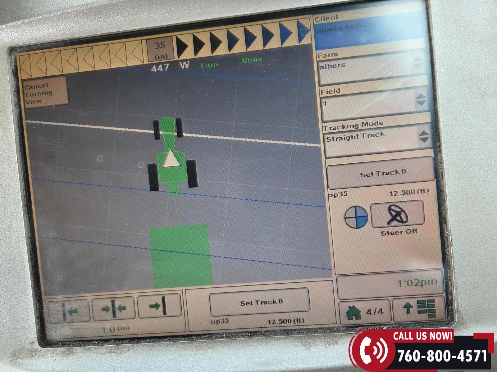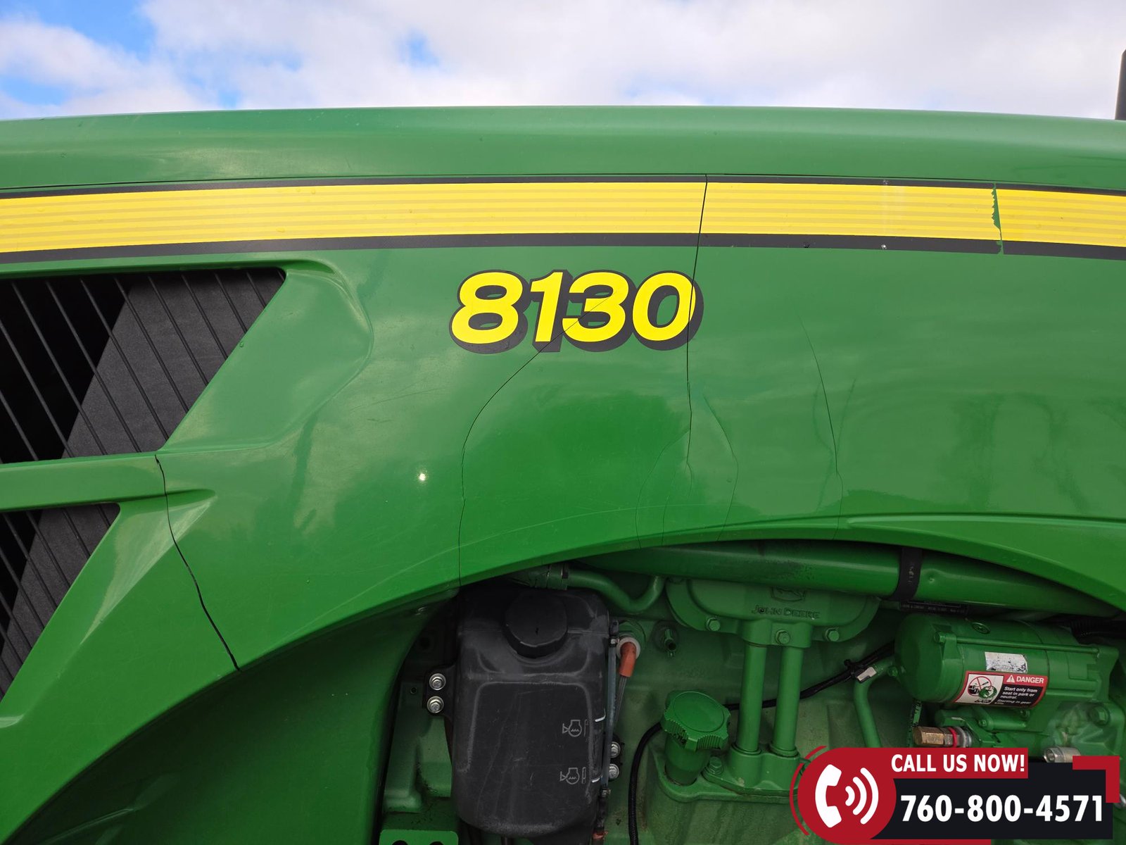 Cab includes a John Deere Active Seat and StarFire 3000 GPS receiver with John Deere display. Note: hood is cracked.