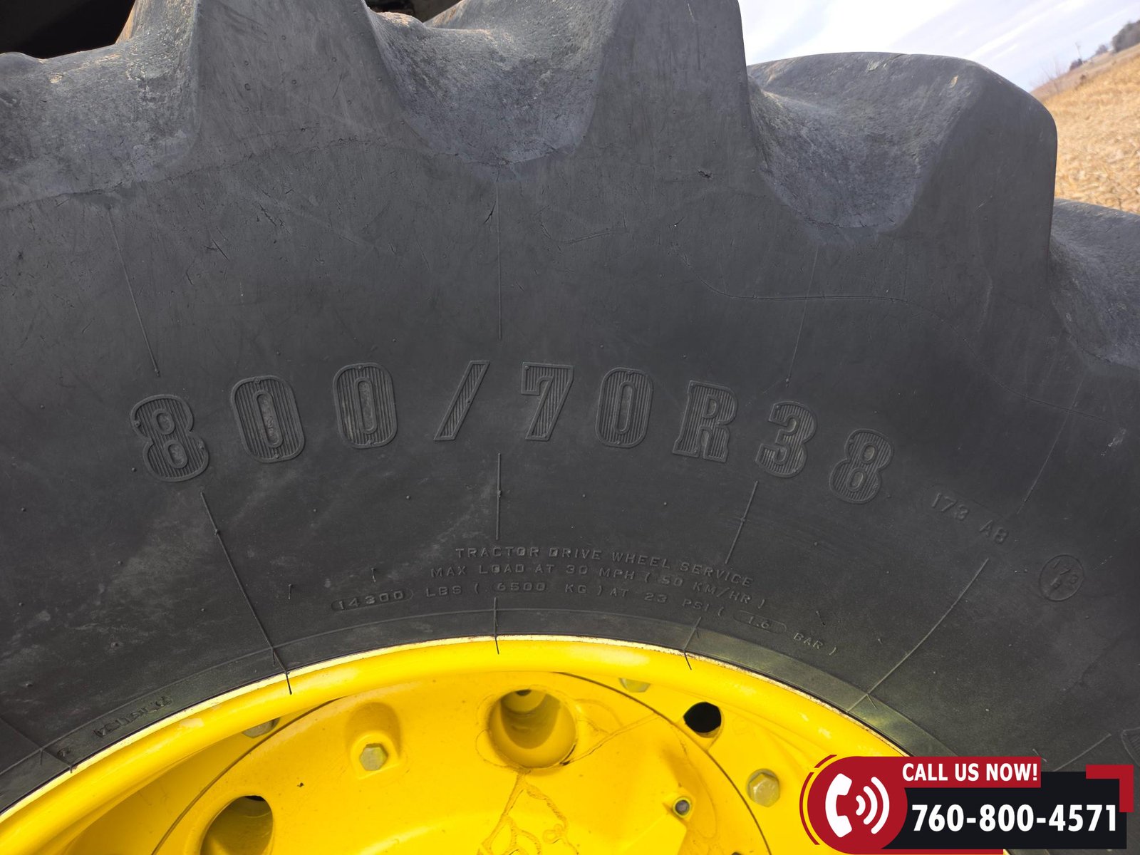 Rides on 600/70R30 front tires and 800/70R38 rear tires.
