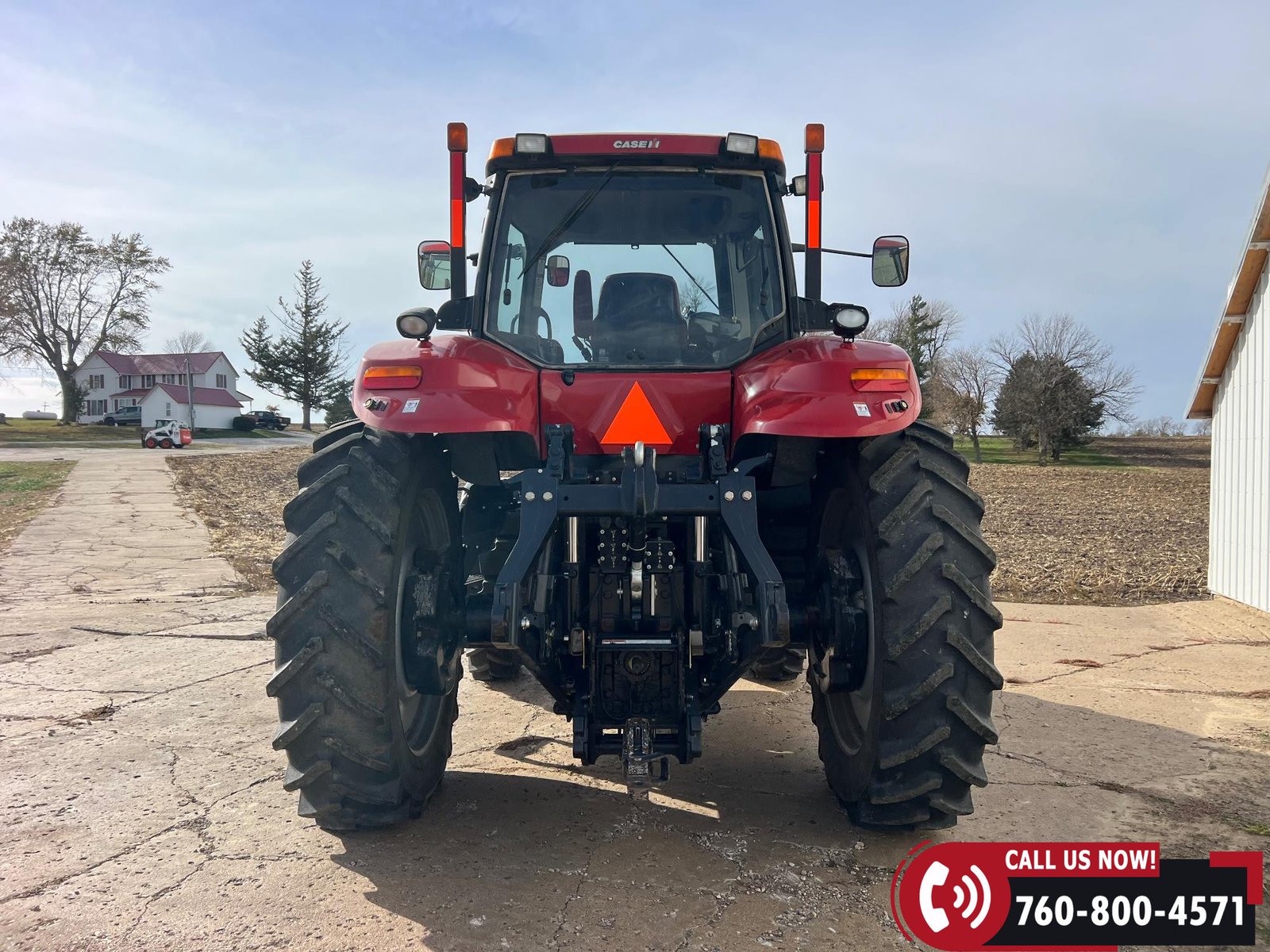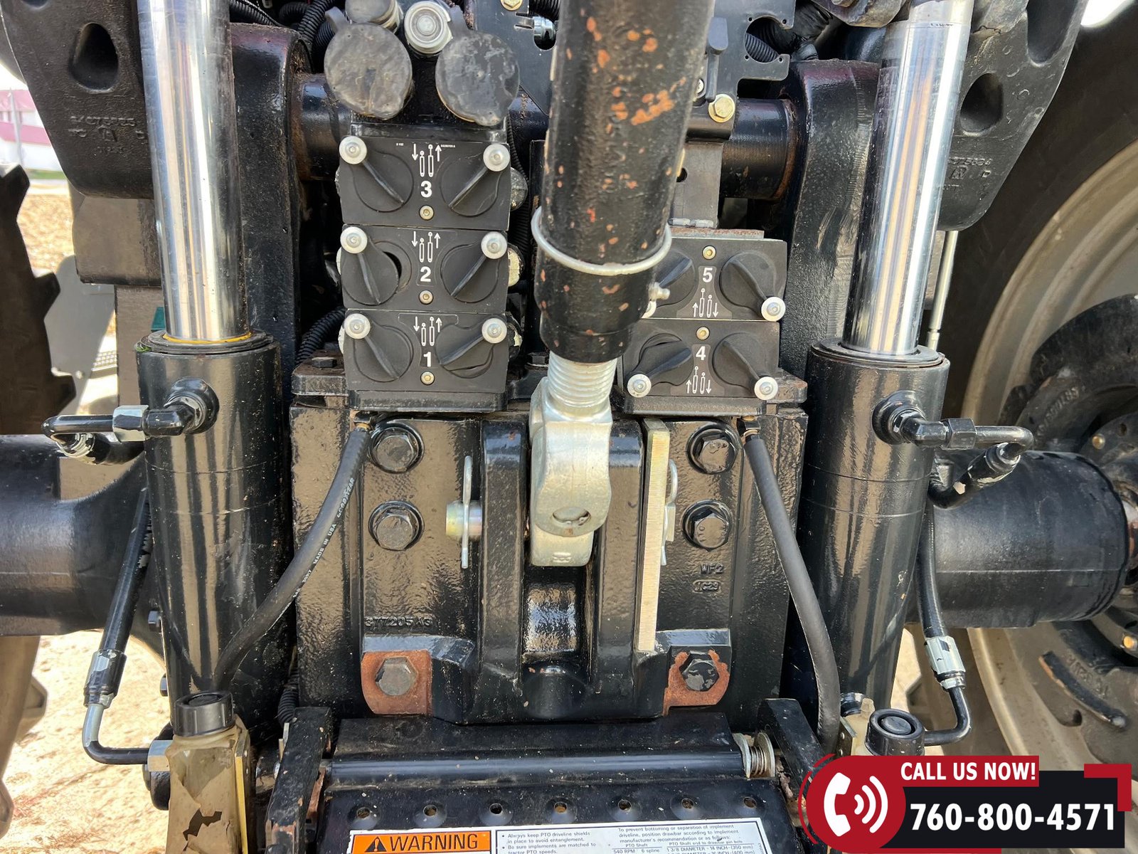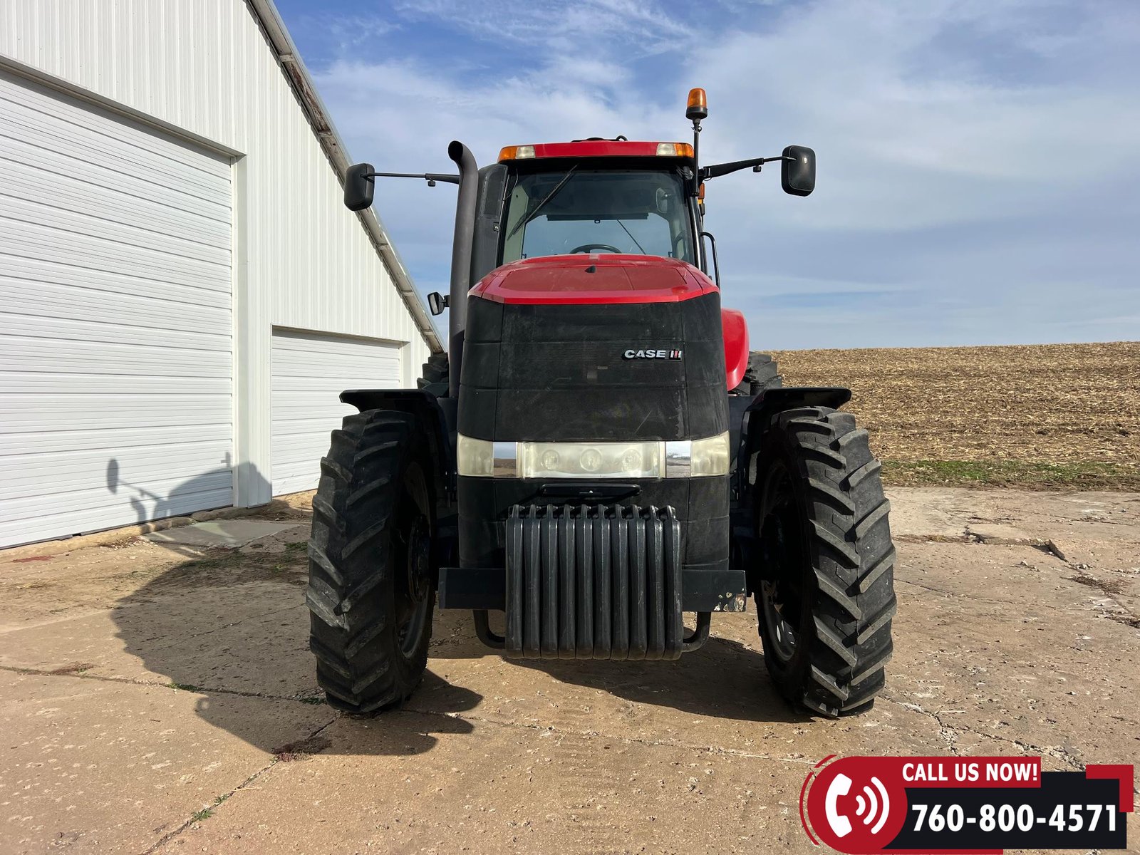 Features include five hydraulic outlets, 1000 PTO, and a 3-point hitch with rear fender PTO and hitch controls. Tractor also has 10 front weights, rear wheel weights, and a 168-gallon fuel capacity.