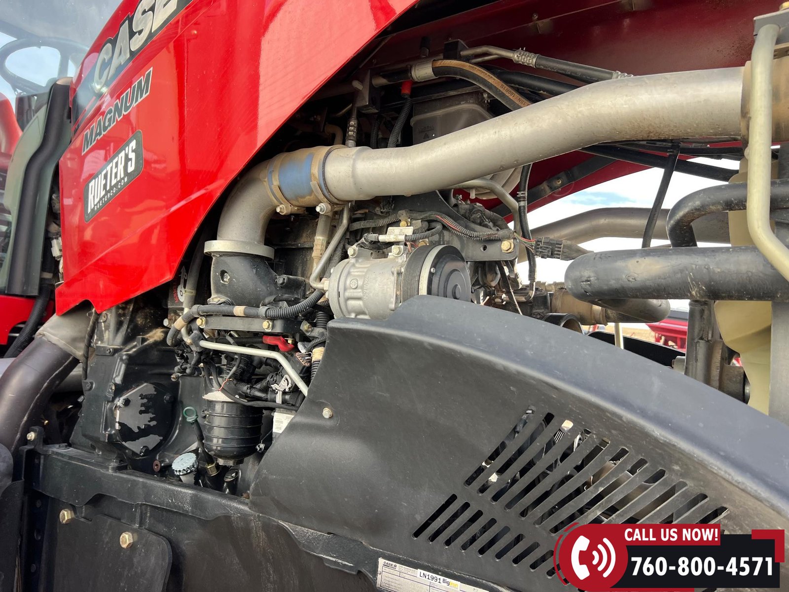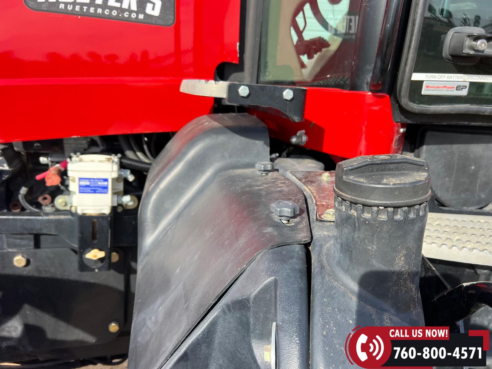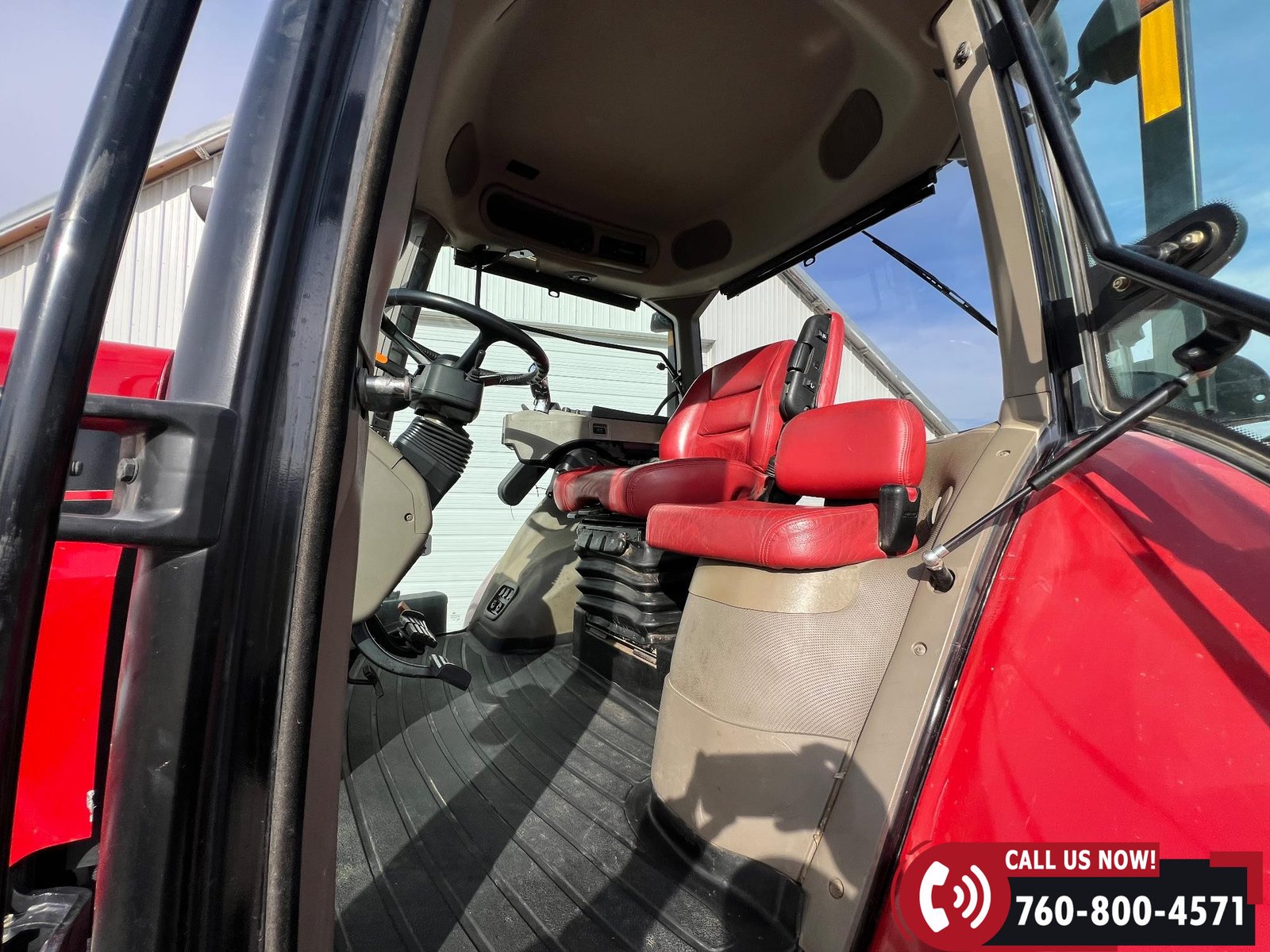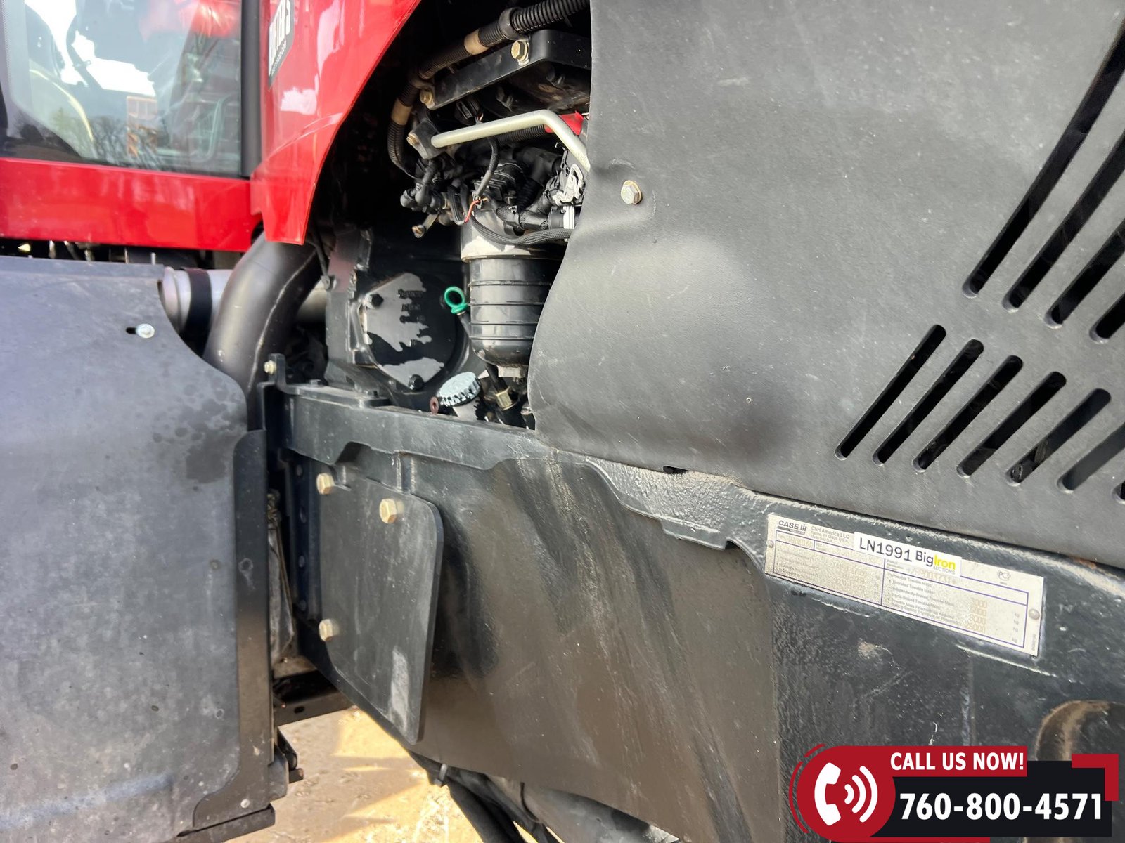 Features include five hydraulic outlets, 1000 PTO, and a 3-point hitch with rear fender PTO and hitch controls. Tractor also has 10 front weights, rear wheel weights, and a 168-gallon fuel capacity.