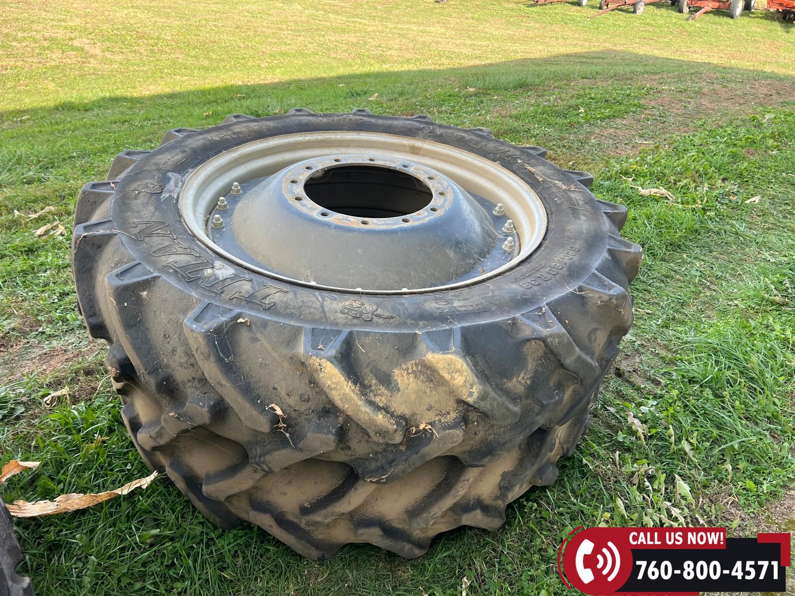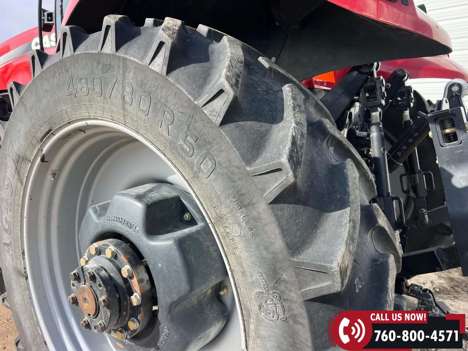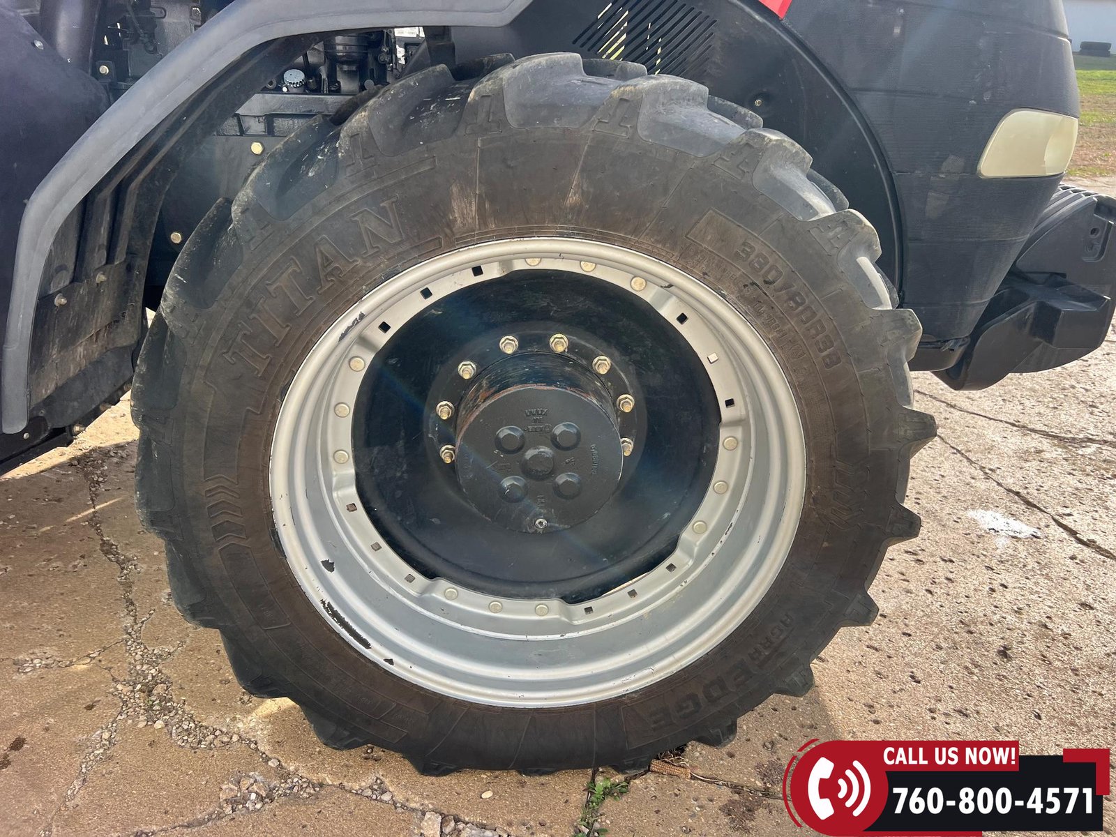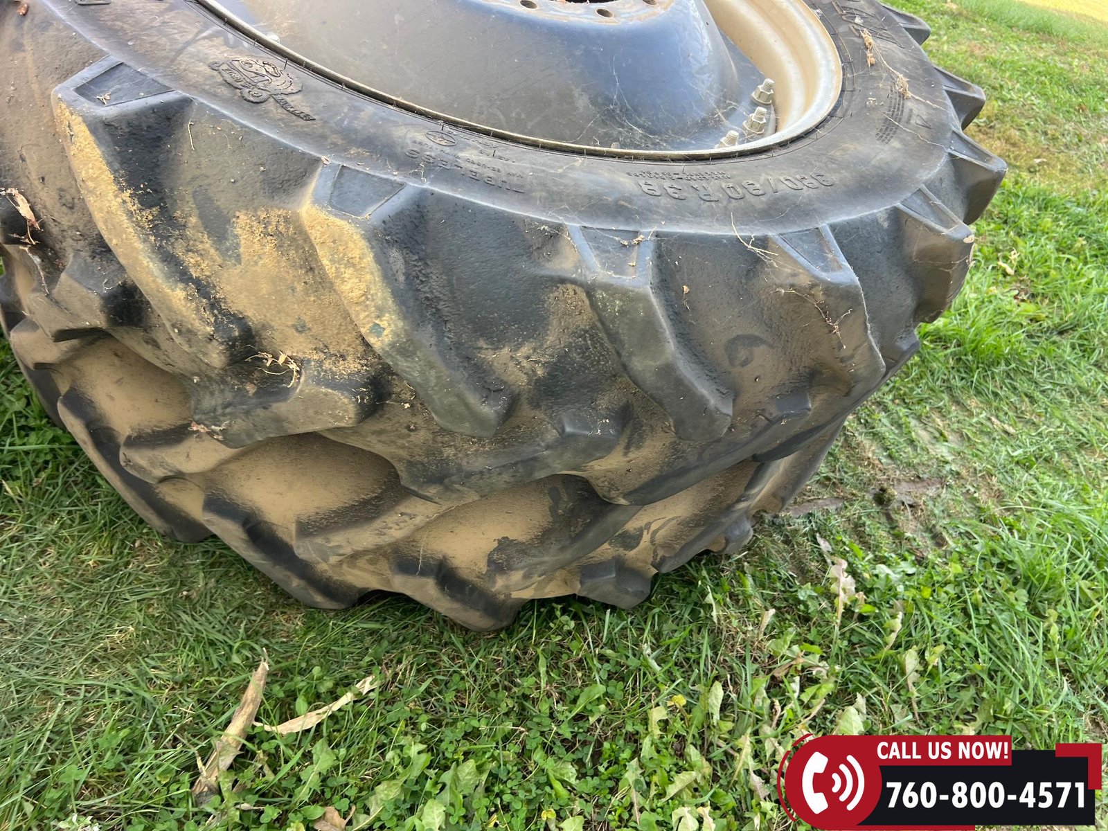 Rides on 380/80R38 front tires and 480/80R38 rear tires with duals.