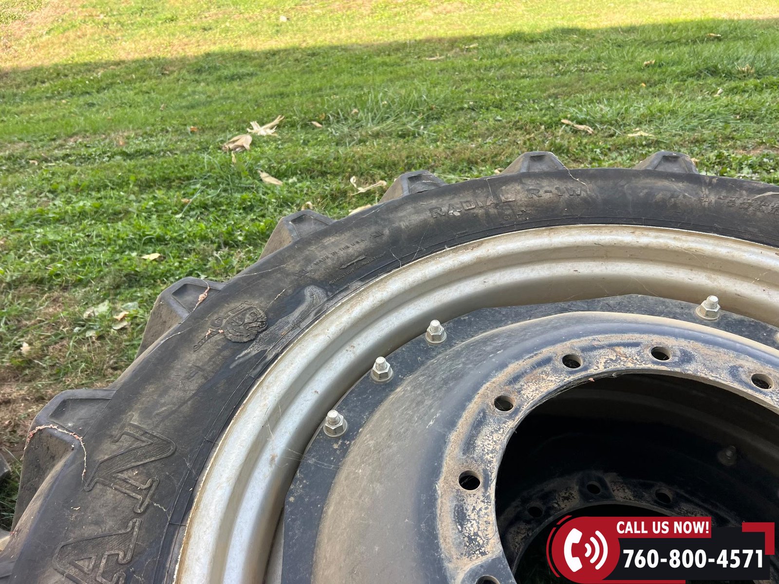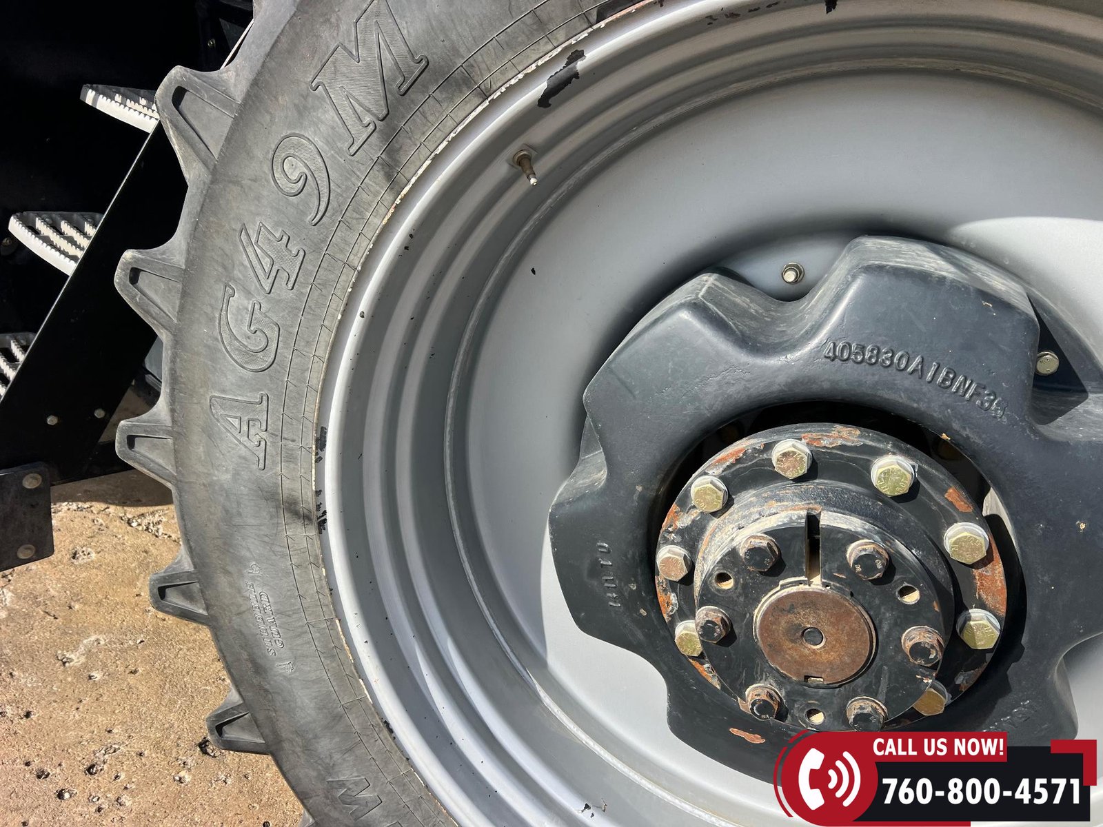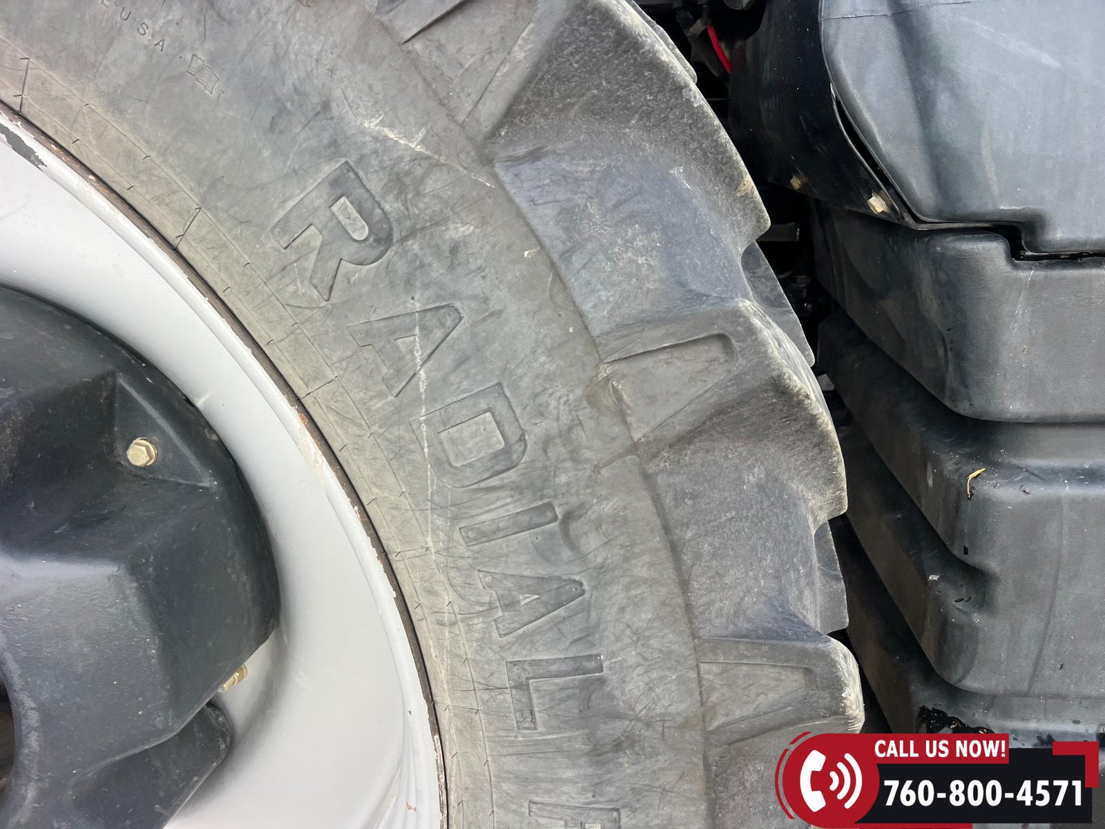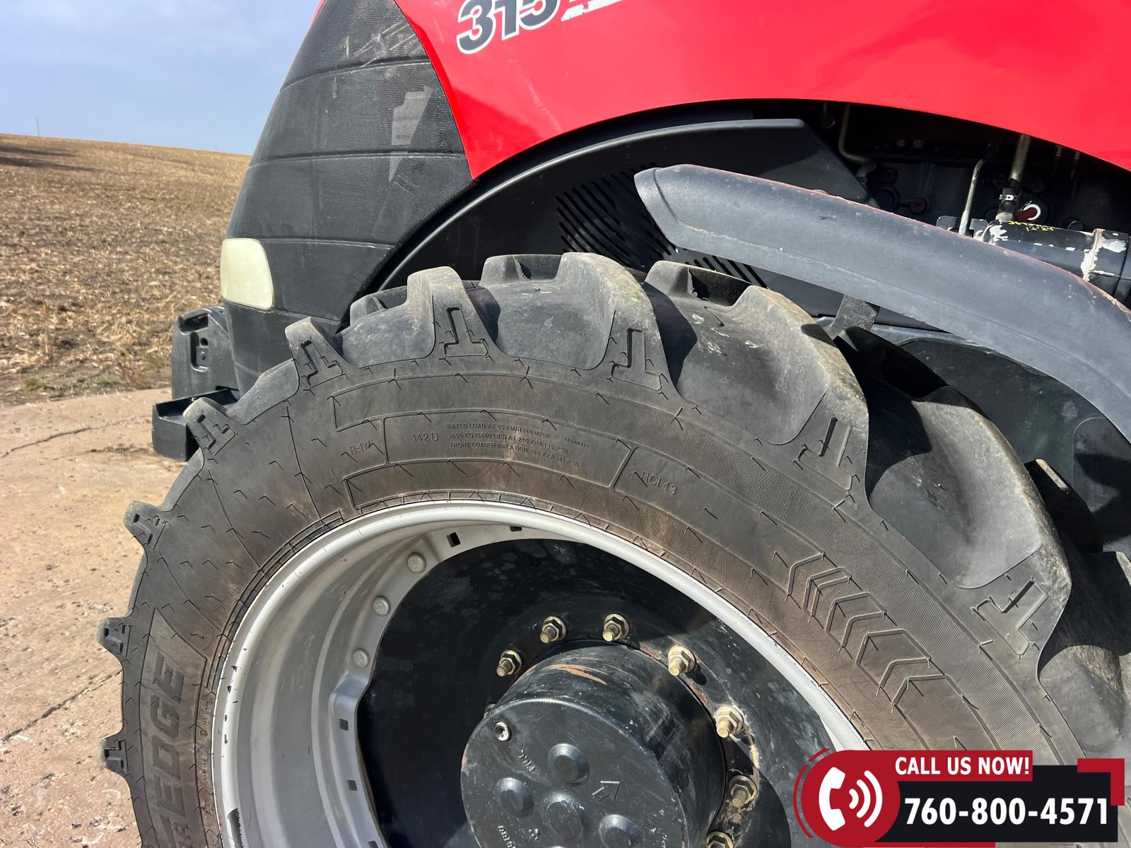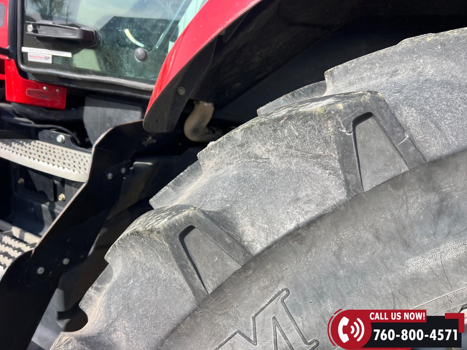 Rides on 380/80R38 front tires and 480/80R38 rear tires with duals.