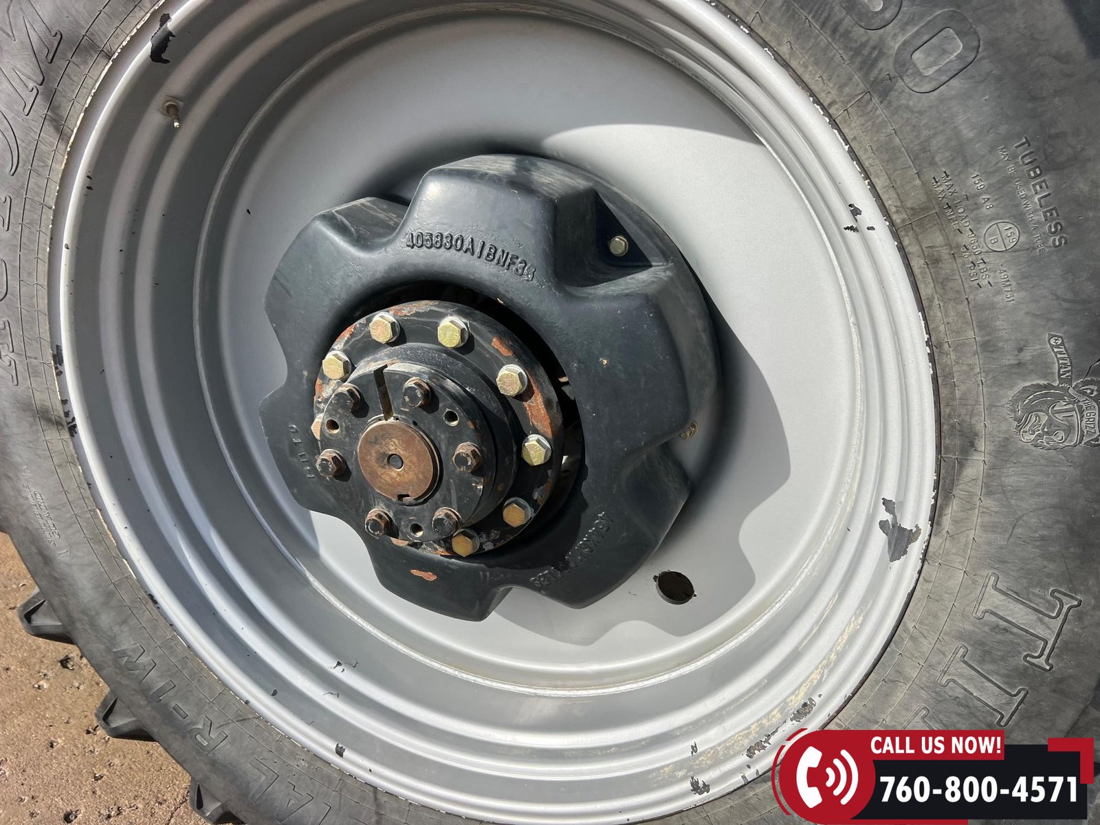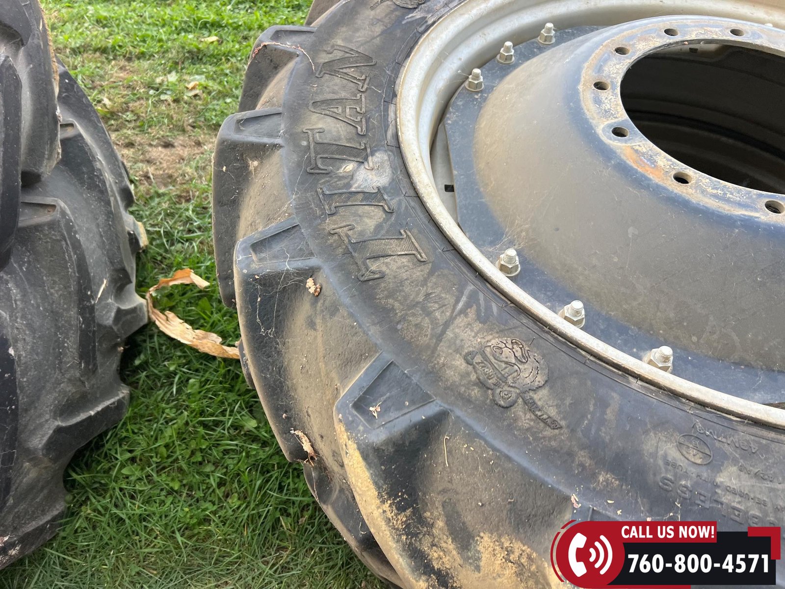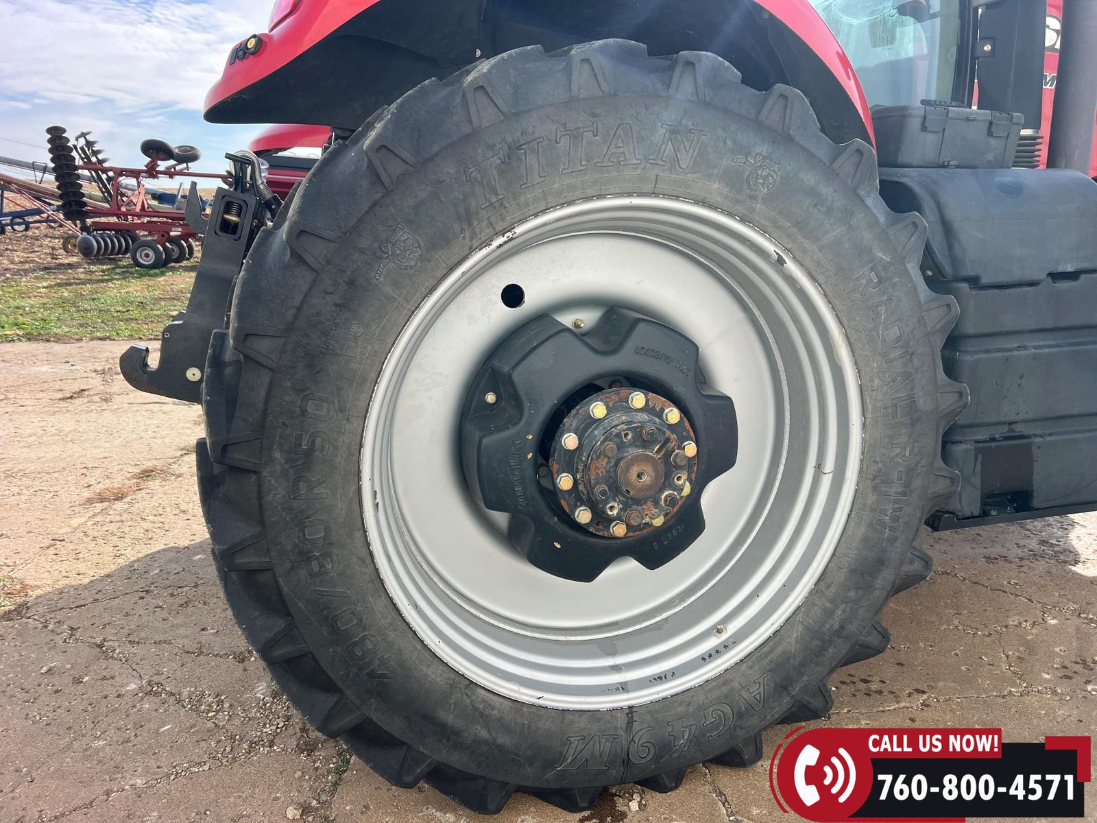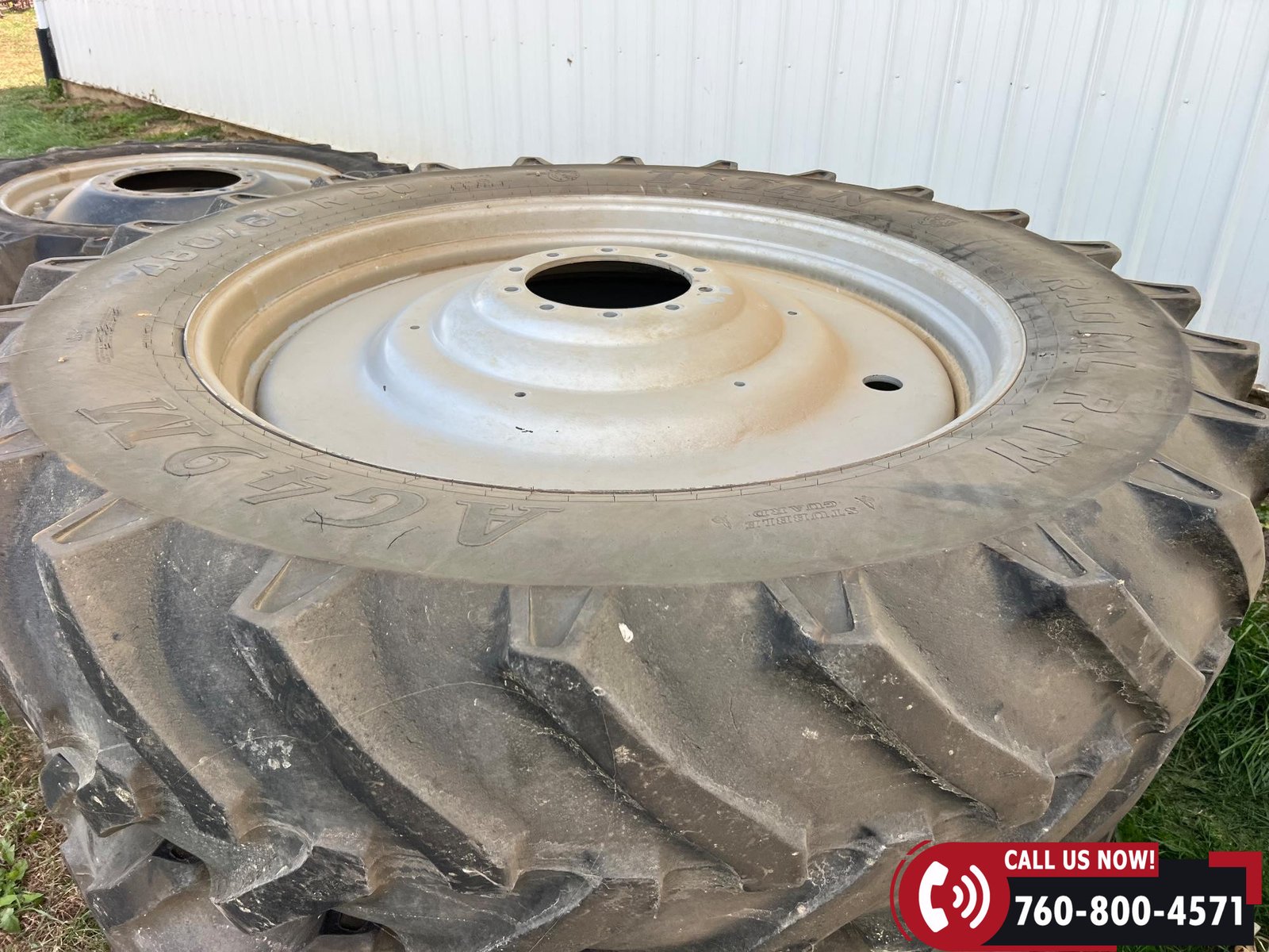 Rides on 380/80R38 front tires and 480/80R38 rear tires with duals.