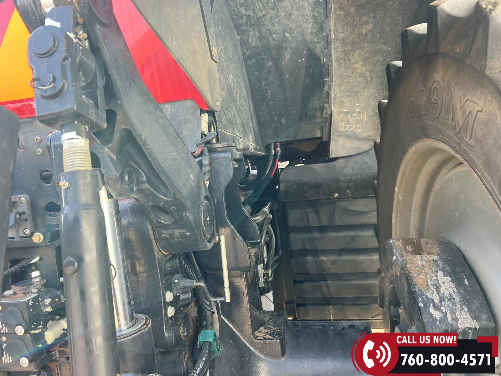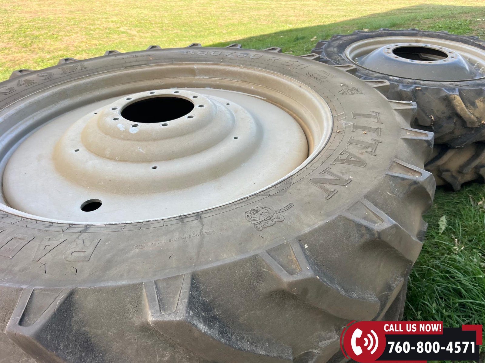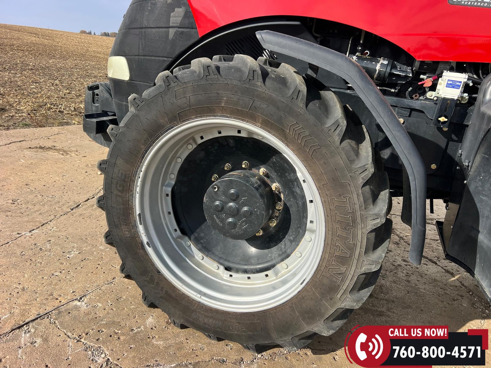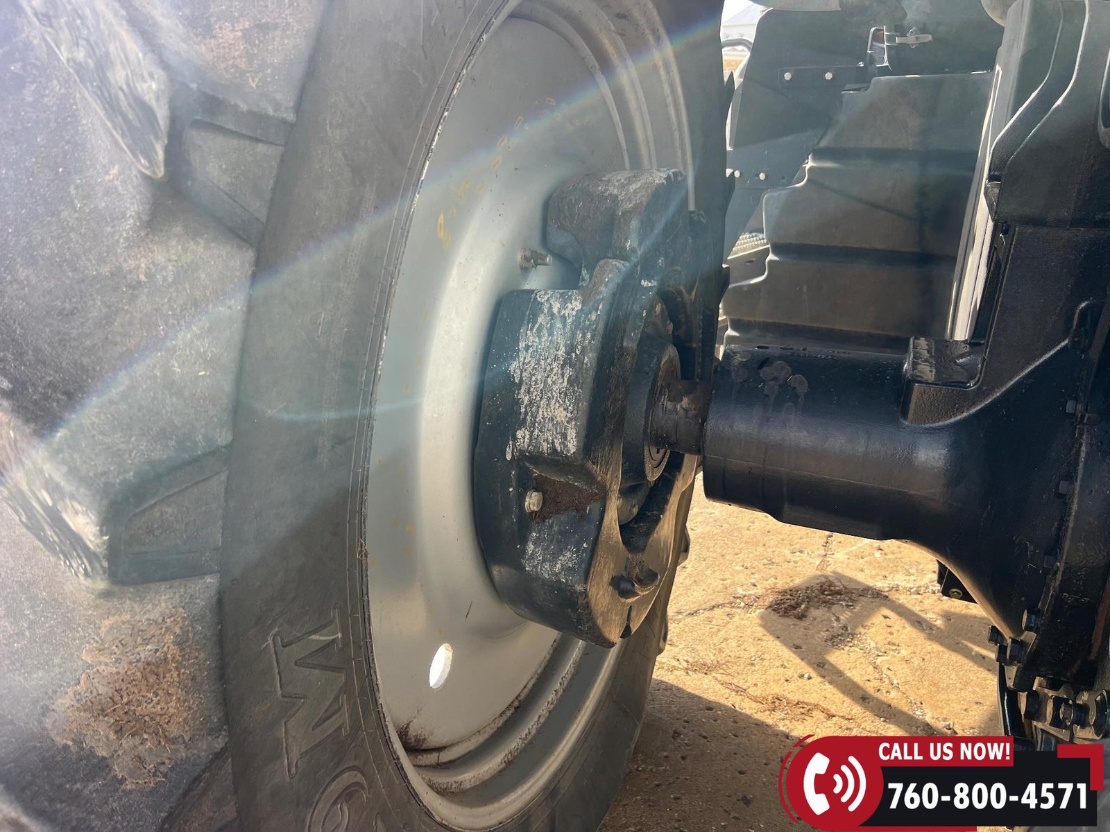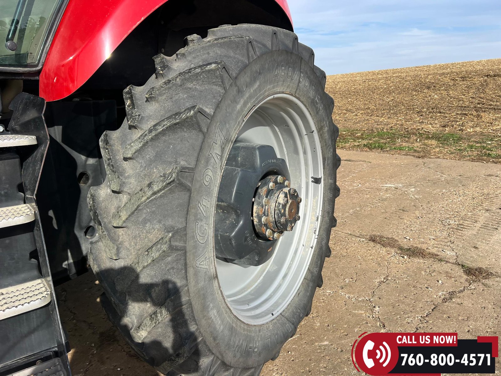 Rides on 380/80R38 front tires and 480/80R38 rear tires with duals.