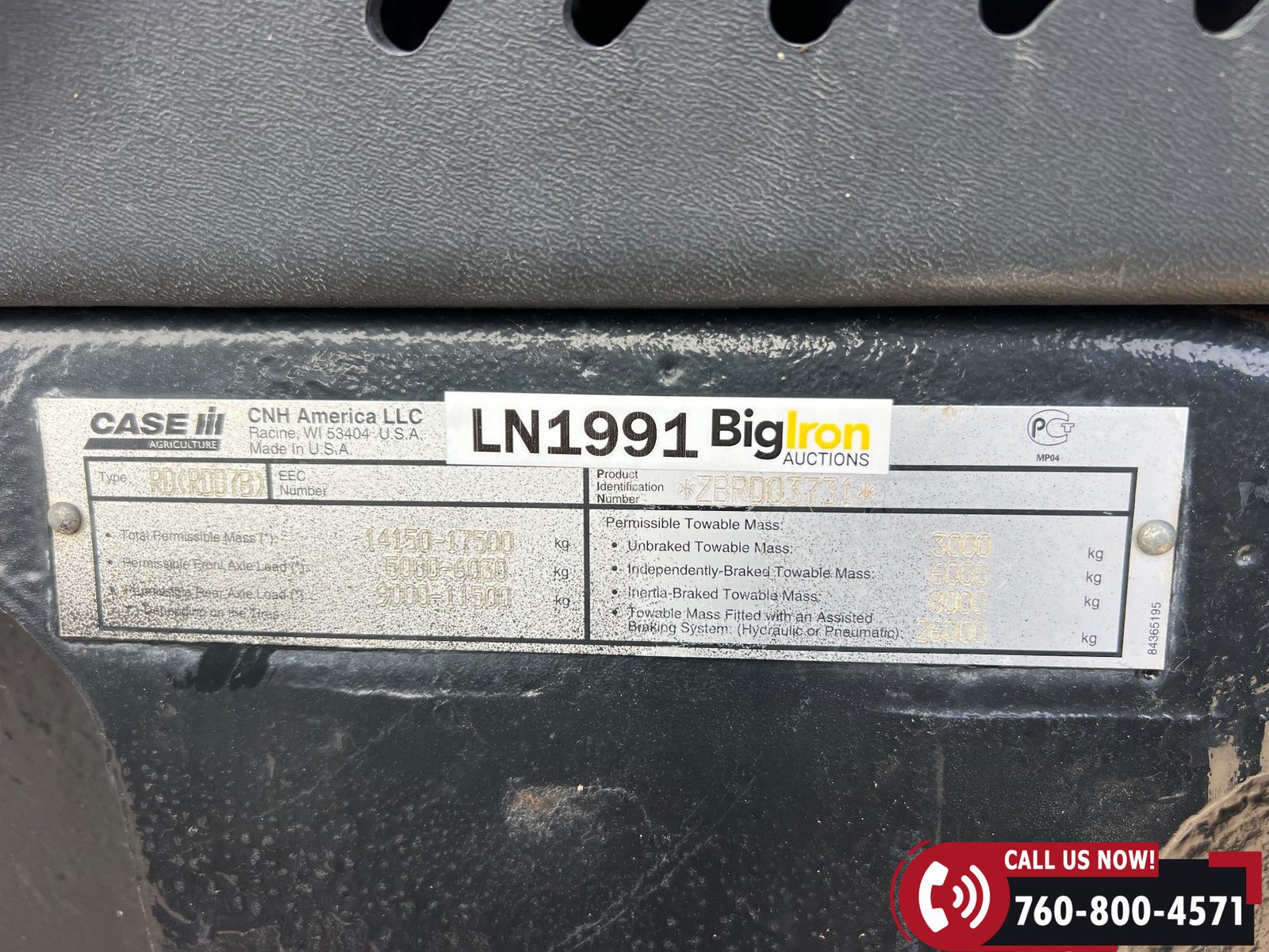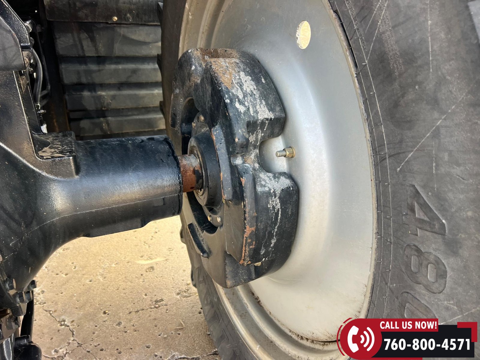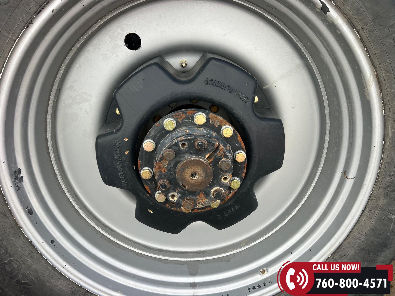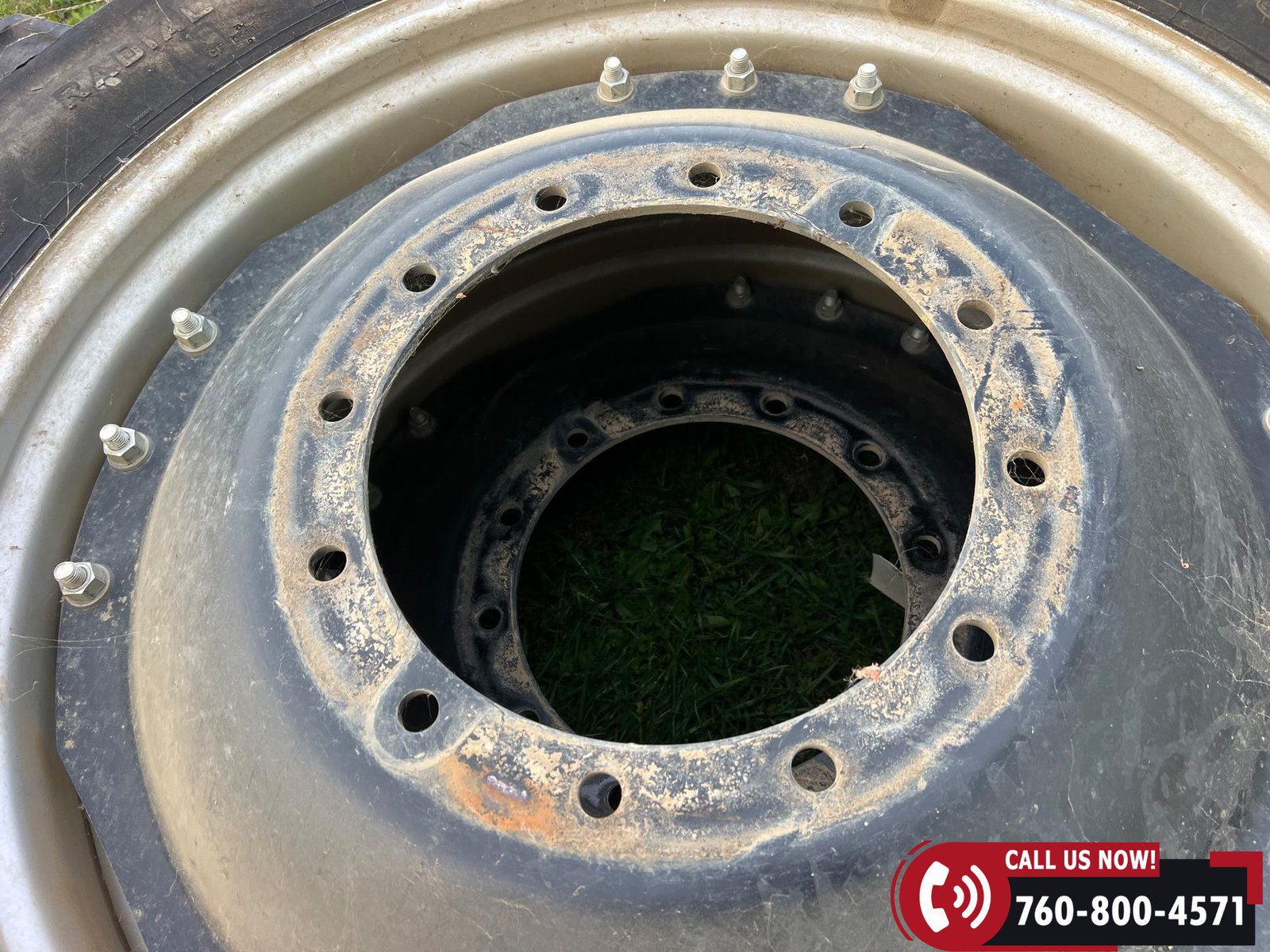 Rides on 380/80R38 front tires and 480/80R38 rear tires with duals.