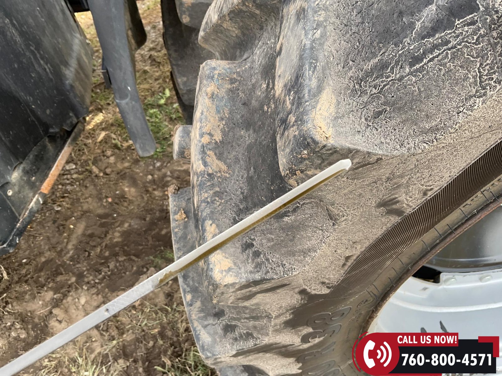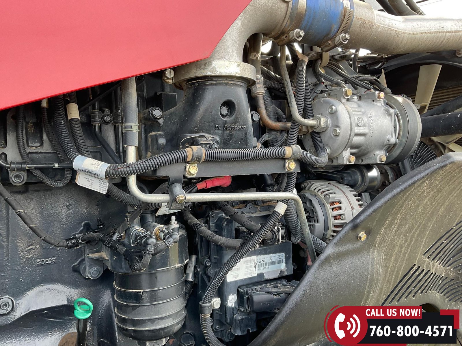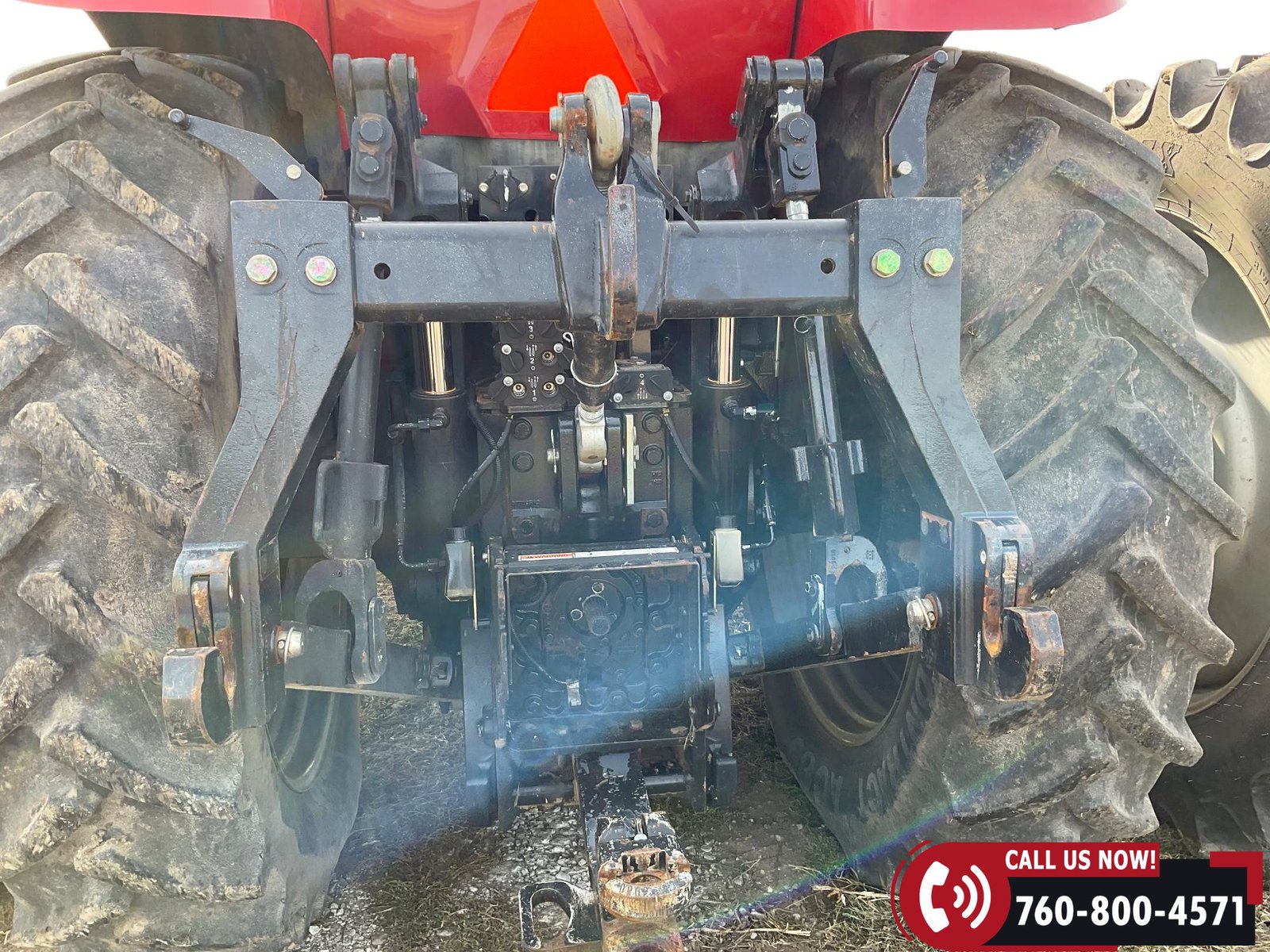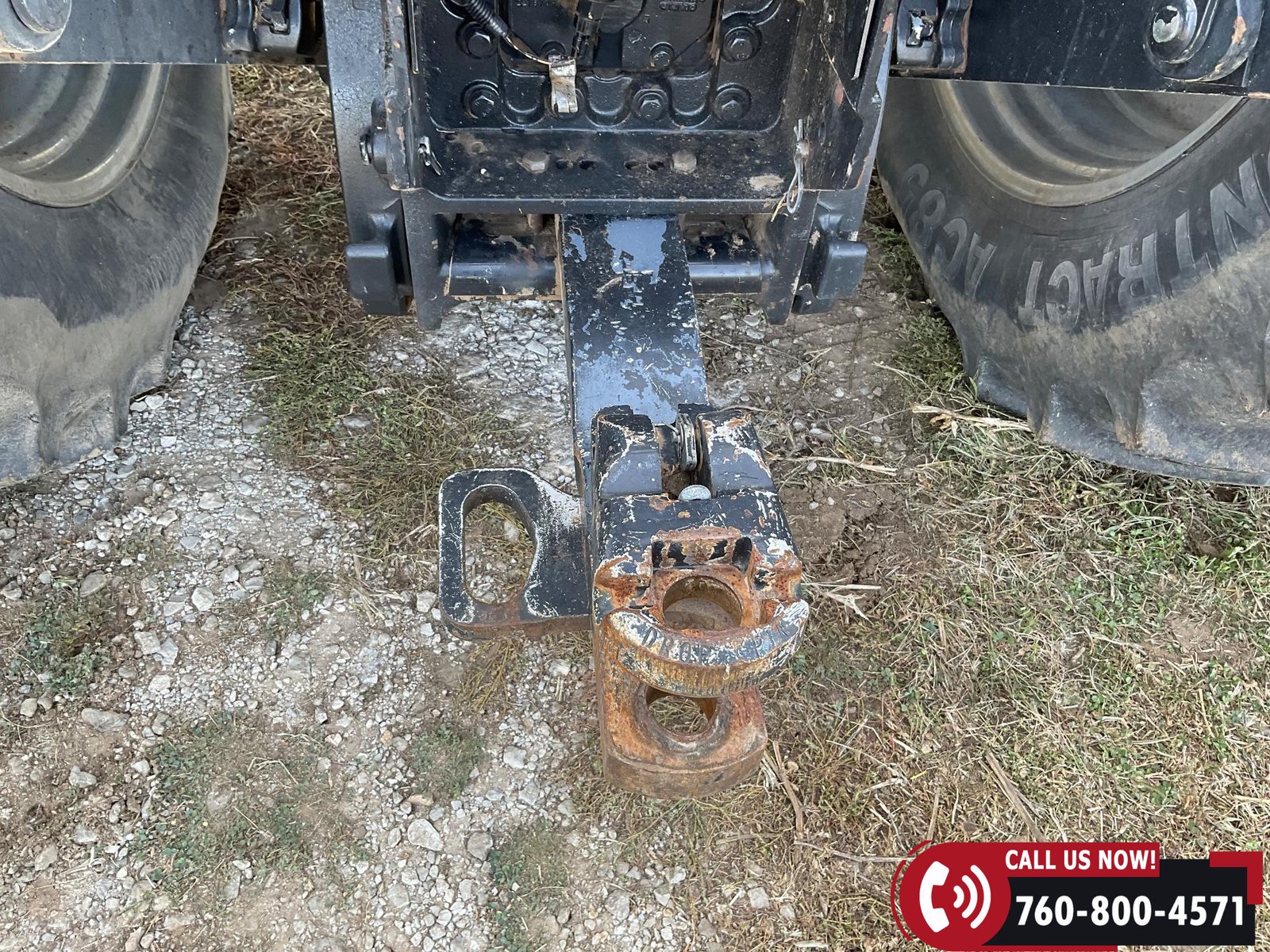 Features include 540/small 1000/large 1000 PTO, rear PTO, four hydraulic outlets, case drain, and a 3-point hitch with quick hitch. Tractor is equipped with front and rear duals, front and rear fenders, eight front weights, and two rear axle weights.