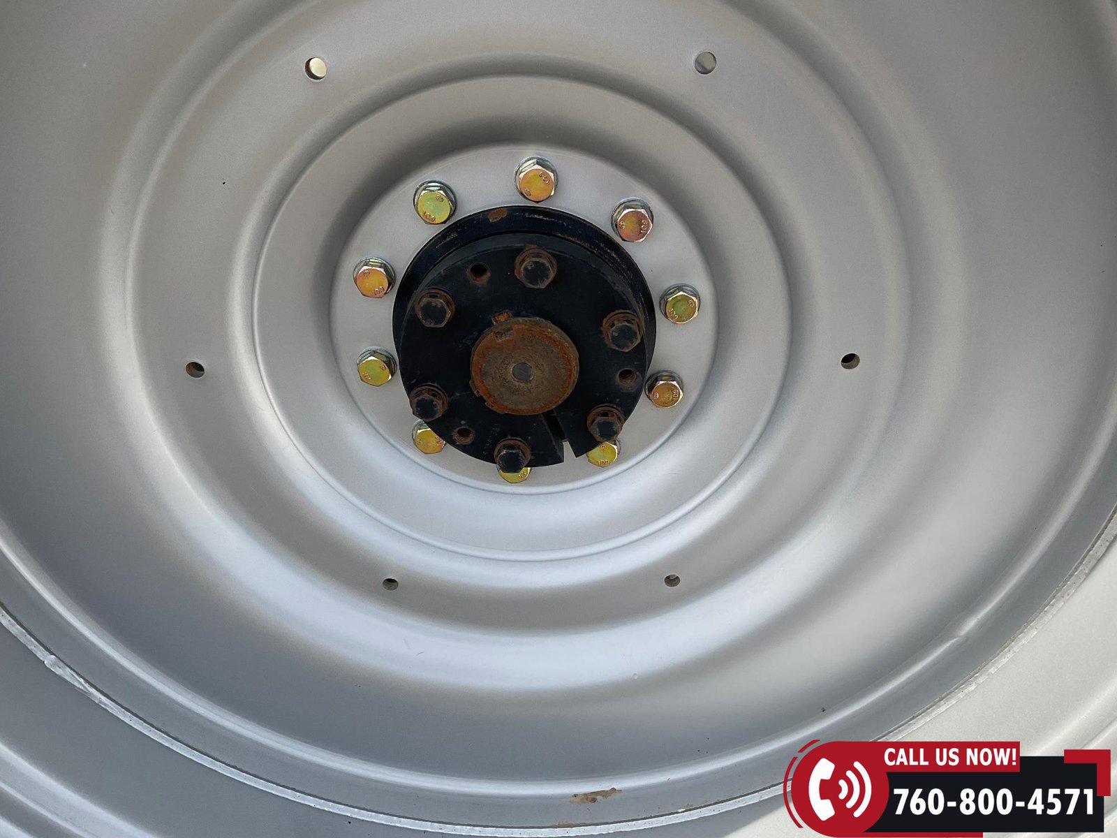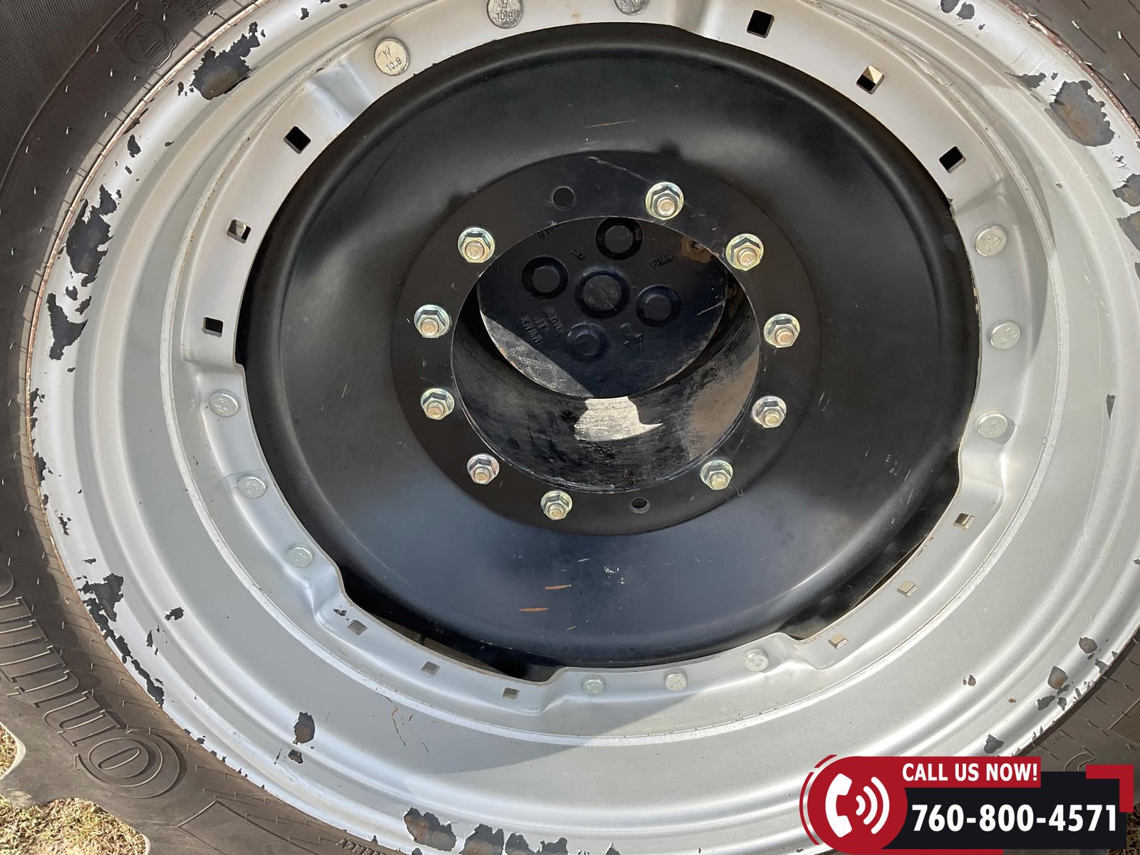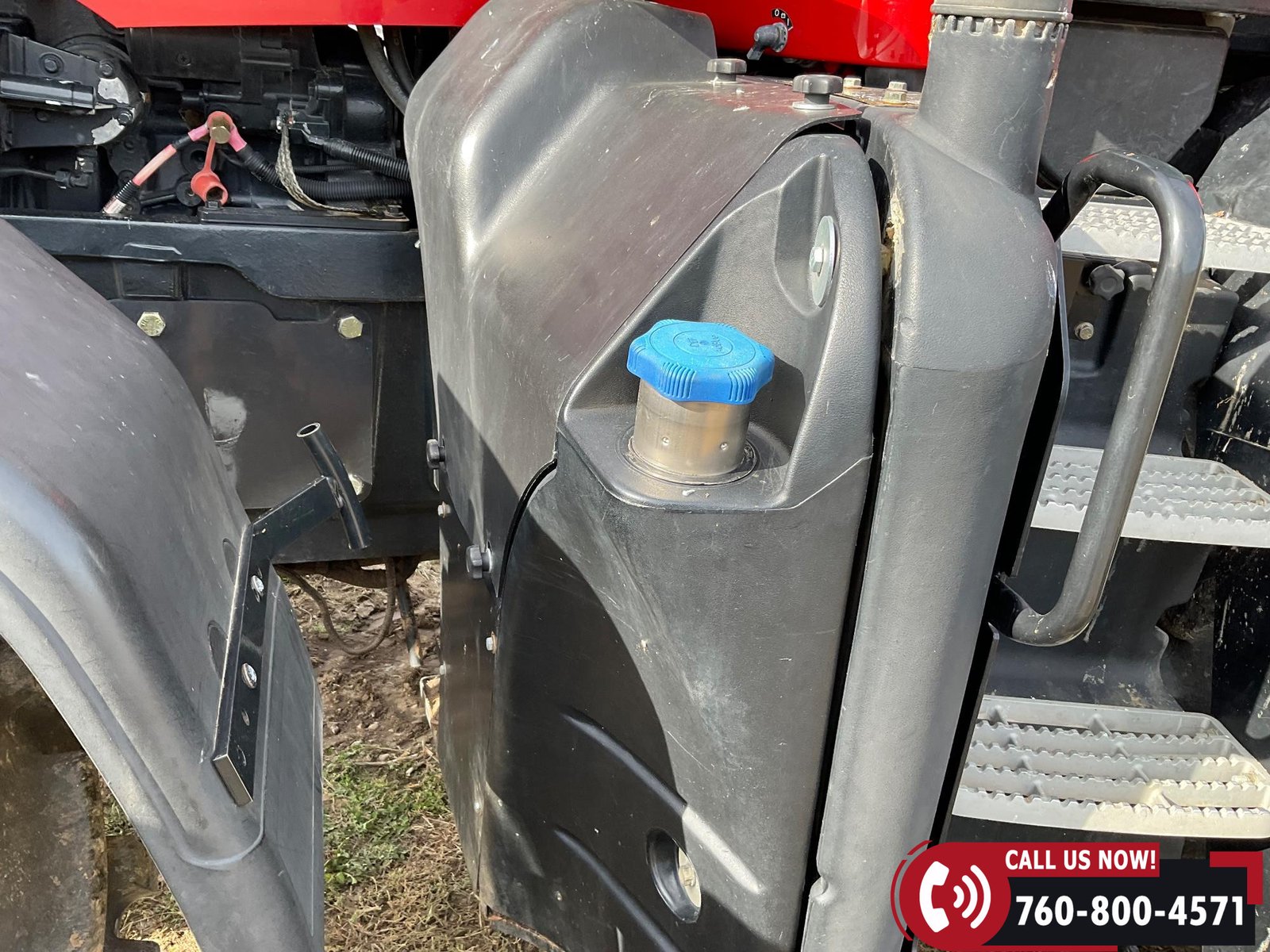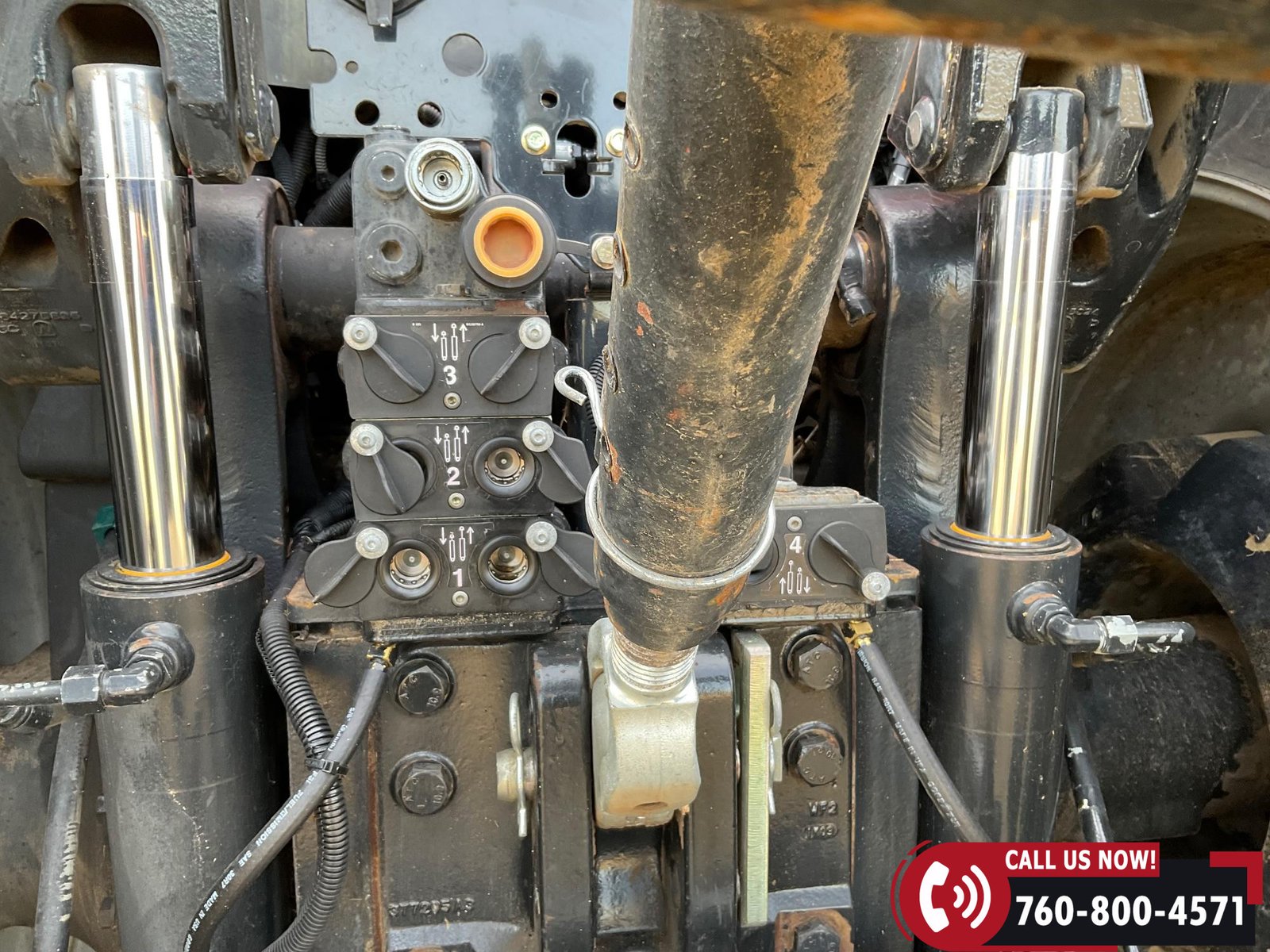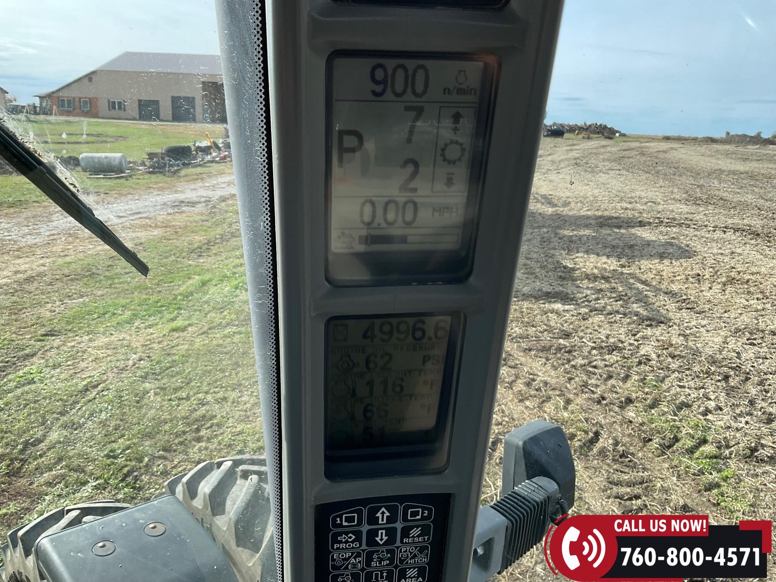 Features include 540/small 1000/large 1000 PTO, rear PTO, four hydraulic outlets, case drain, and a 3-point hitch with quick hitch. Tractor is equipped with front and rear duals, front and rear fenders, eight front weights, and two rear axle weights.