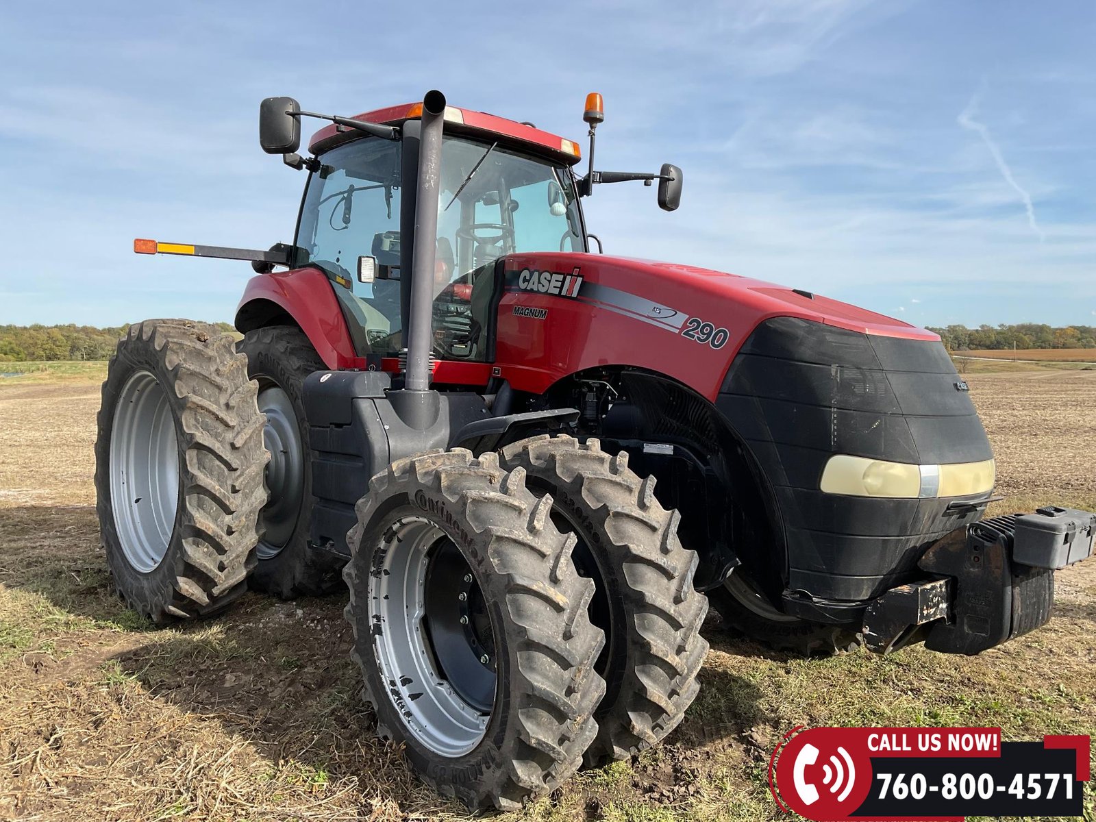 2012 Case IH Magnum 290 MFWD Tractor with 4,996 hours showing. Powered by a 290 HP FPT 8.7L turbo diesel engine and equipped with a full PowerShift transmission featuring 18 forward and 2 reverse speeds.