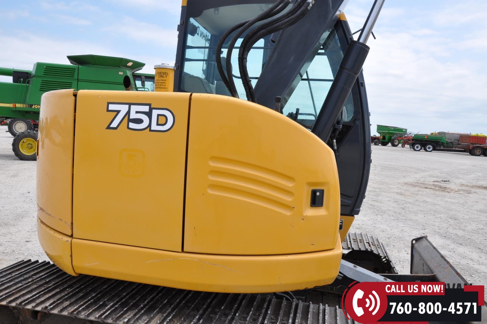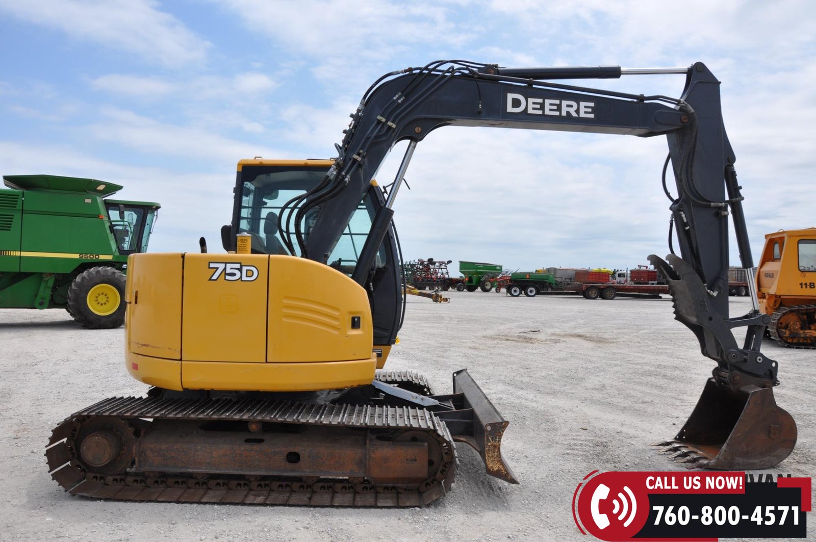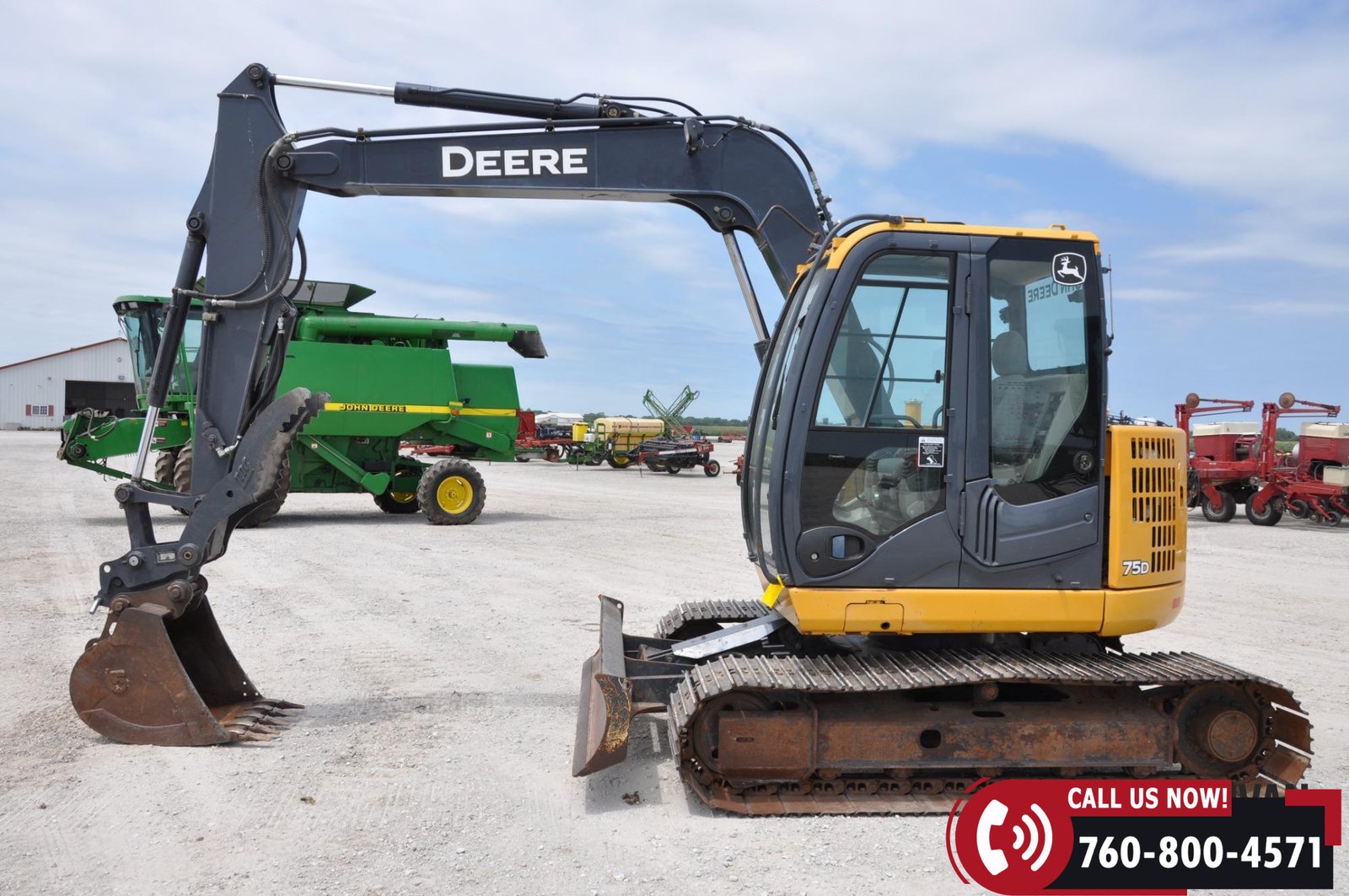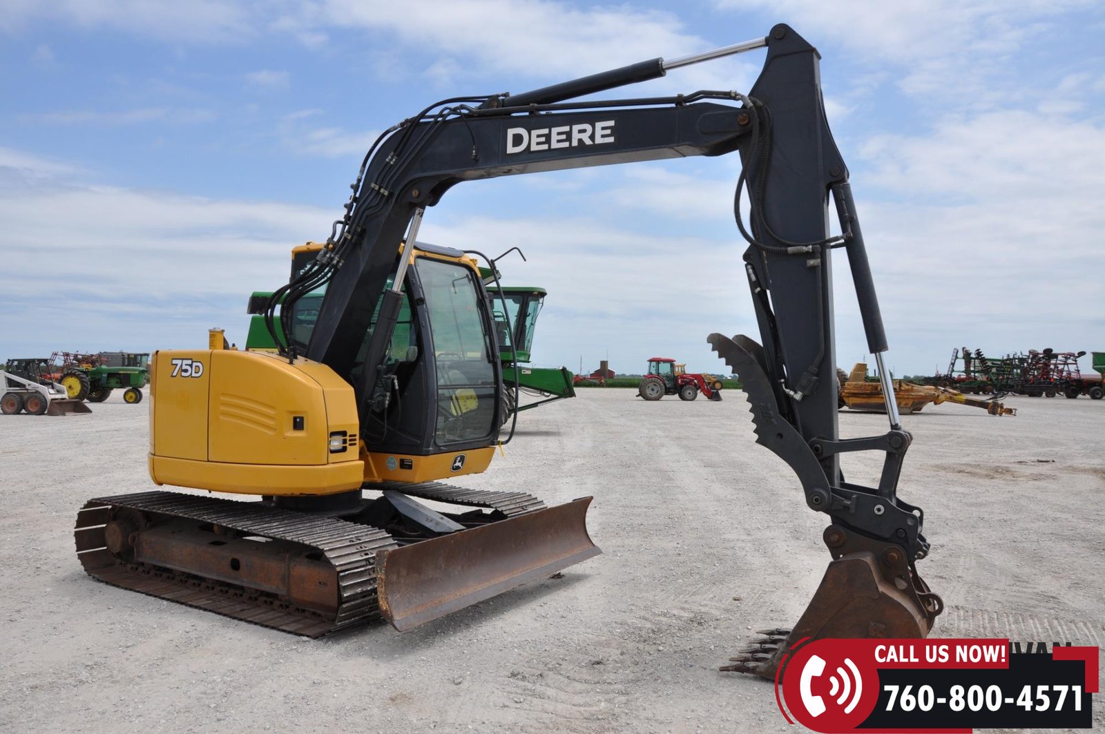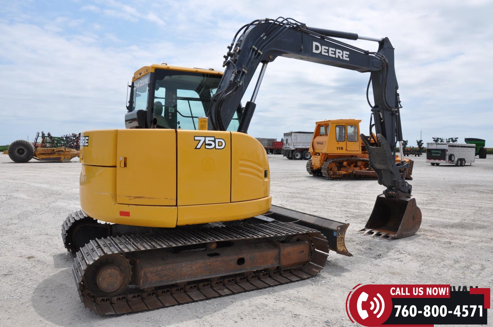 2012 John Deere 75D Midi Excavator with 5,570 hours showing. Equipped with an enclosed cab with heat and A/C for operator comfort. Features include a 96″ backfill blade, 30″ bucket, and hydraulic thumb for versatile digging and material handling. Rides on 24″ steel tracks. A solid, dependable machine ready for construction or utility work.