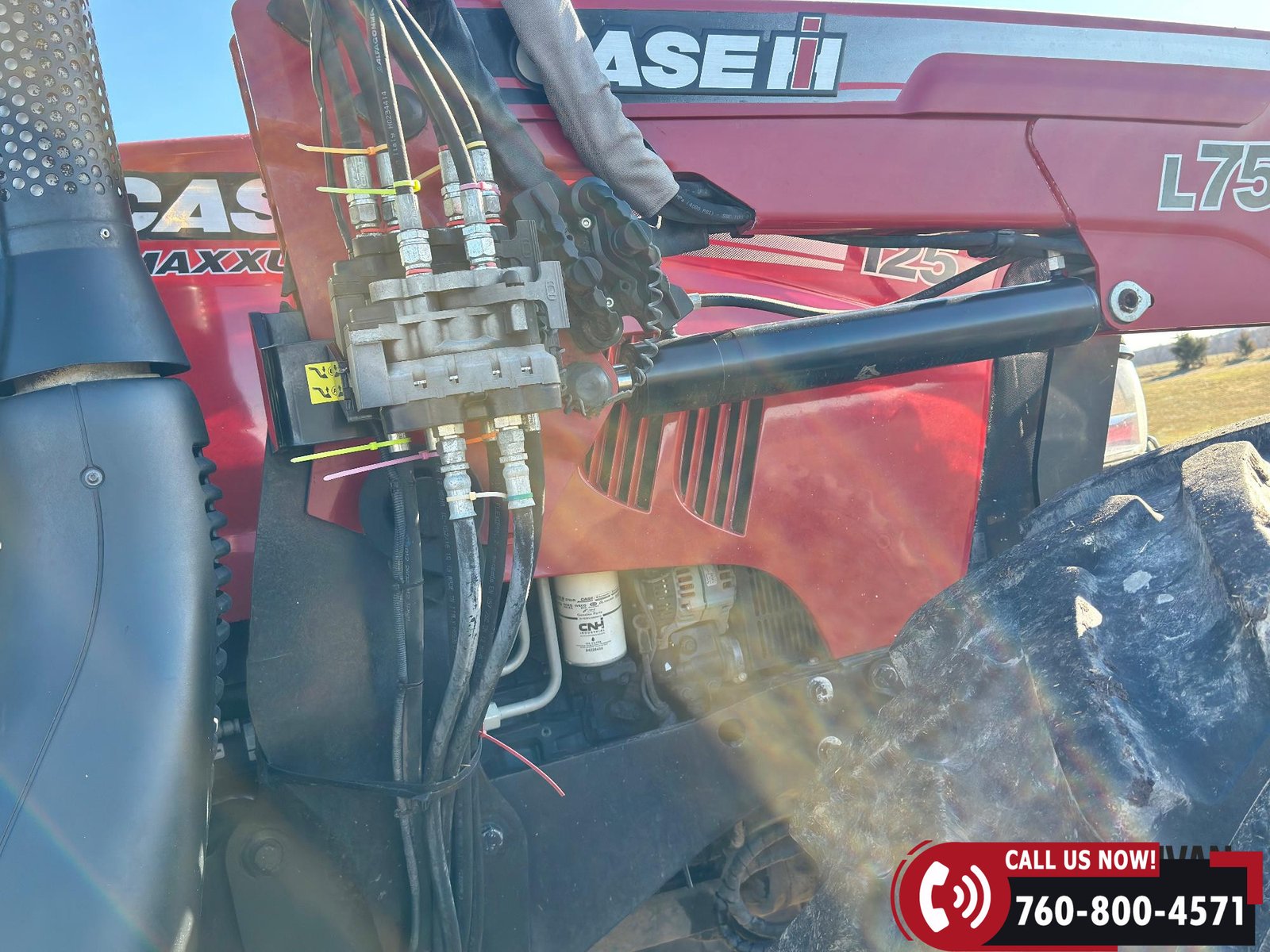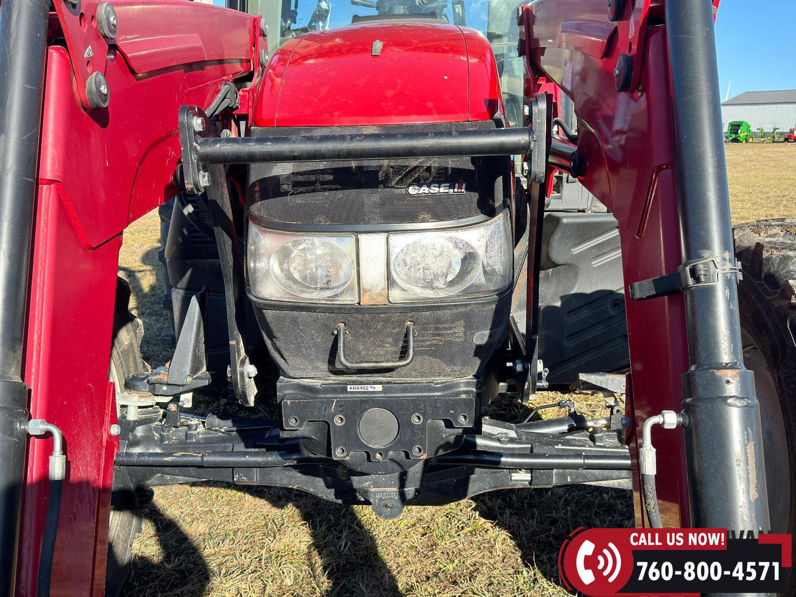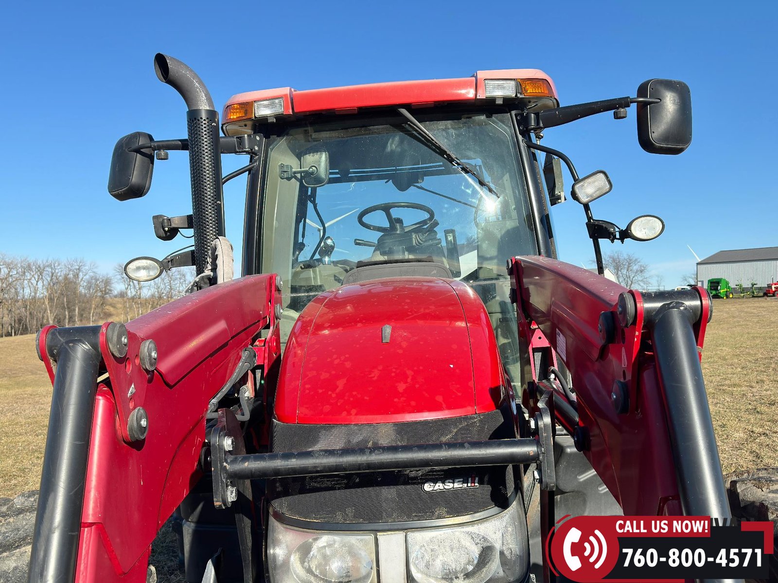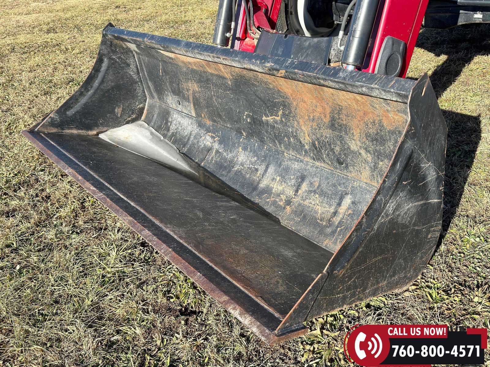 Includes a Case IH L755 loader with mid couplers, joystick control, and a 91″ material bucket with global hookup.