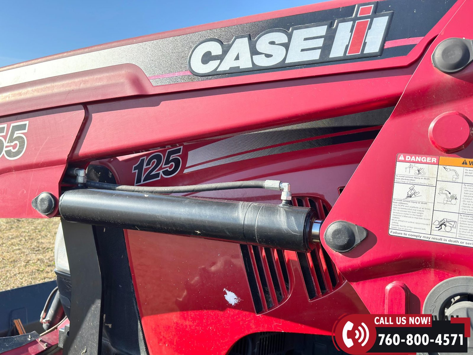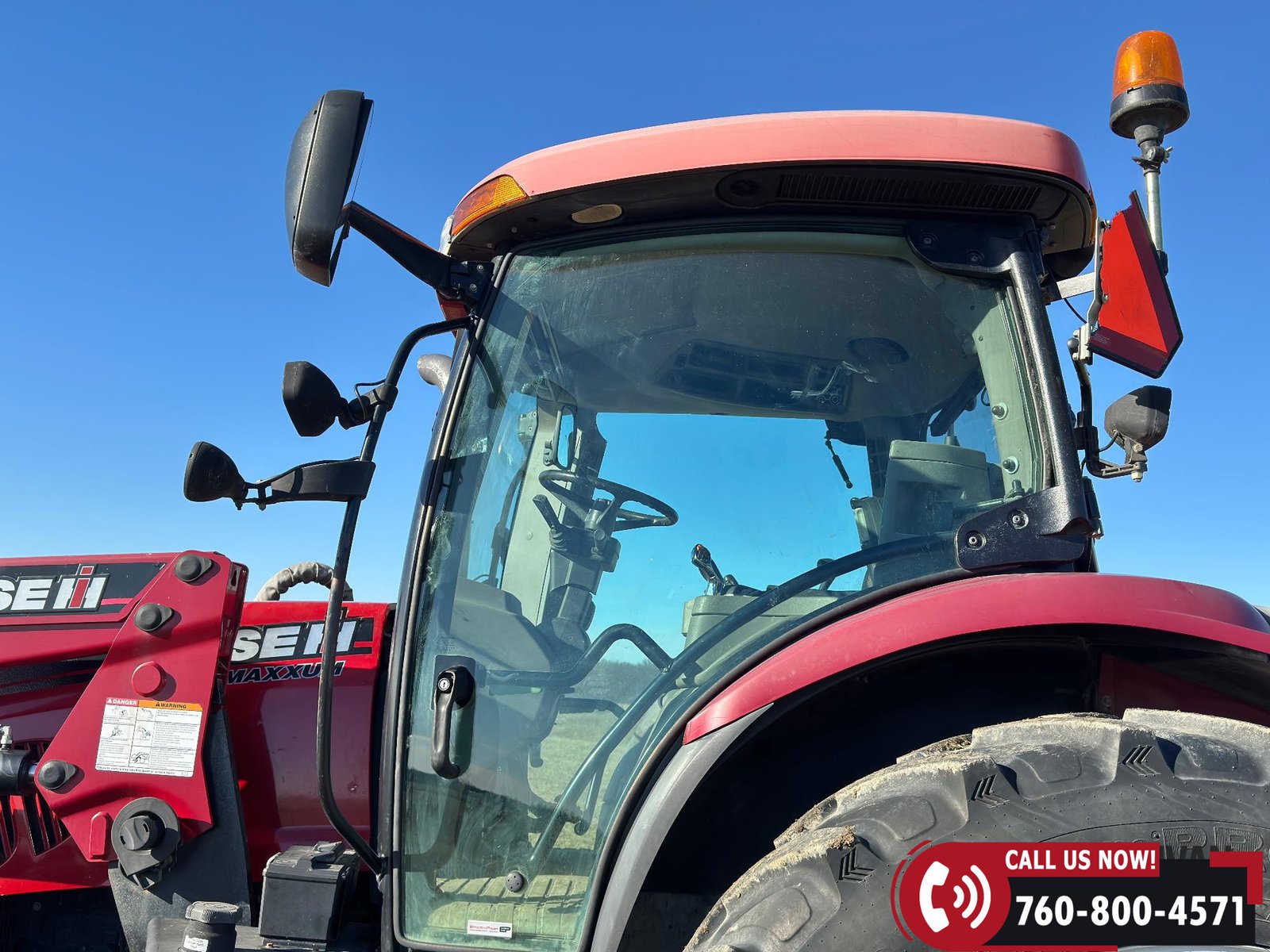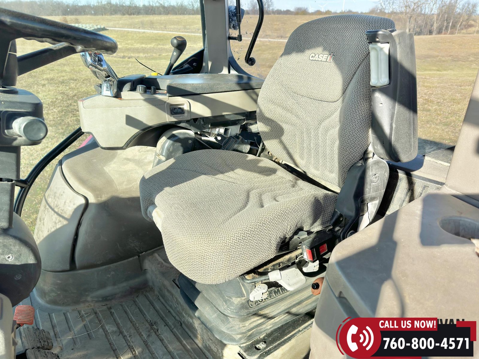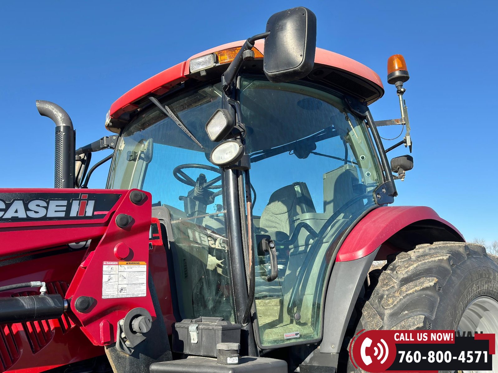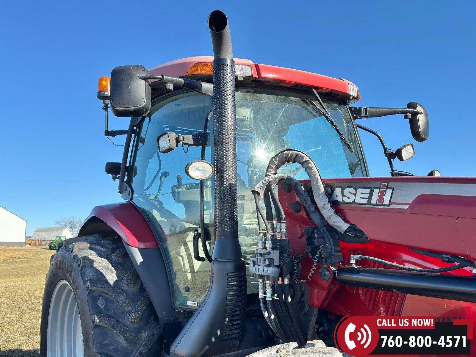 Includes a Case IH L755 loader with mid couplers, joystick control, and a 91″ material bucket with global hookup.
