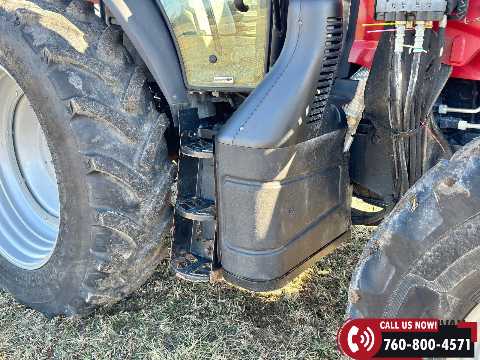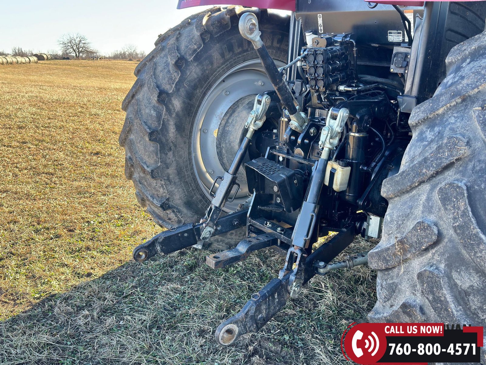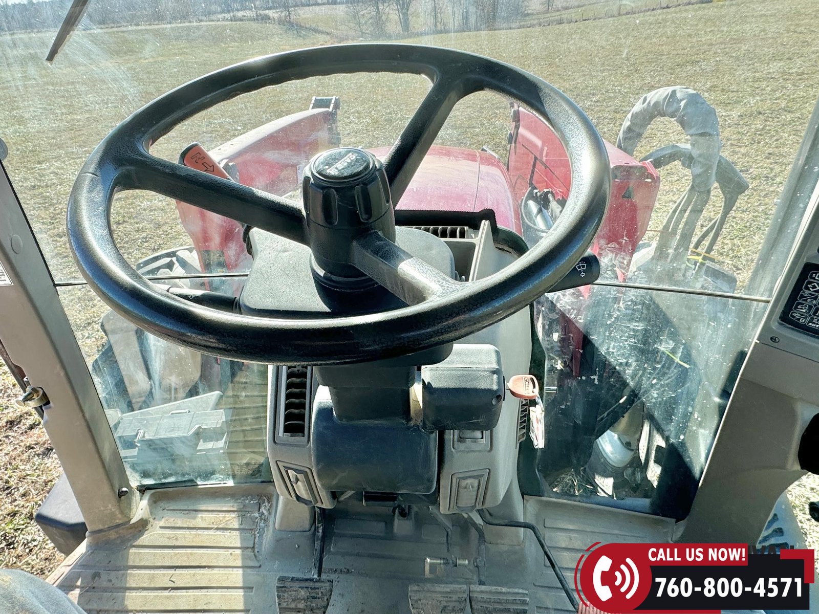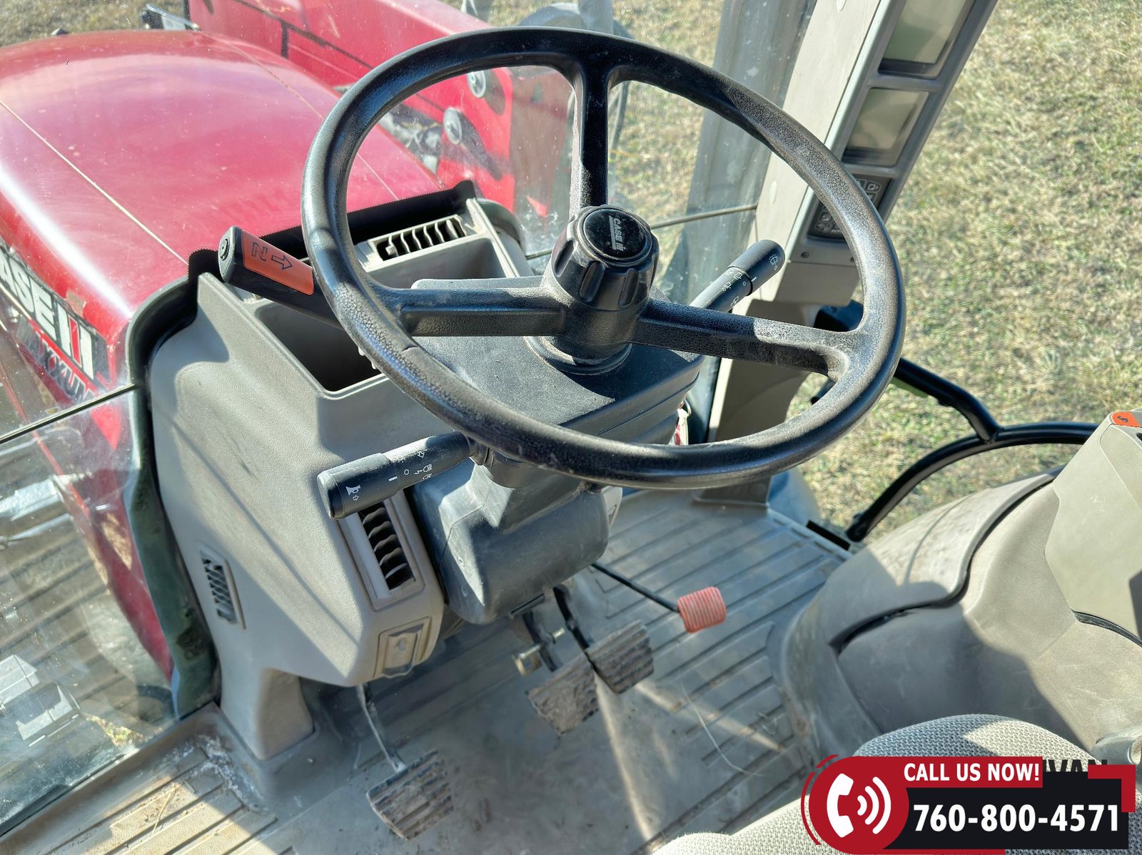 Includes a Case IH L755 loader with mid couplers, joystick control, and a 91″ material bucket with global hookup.
