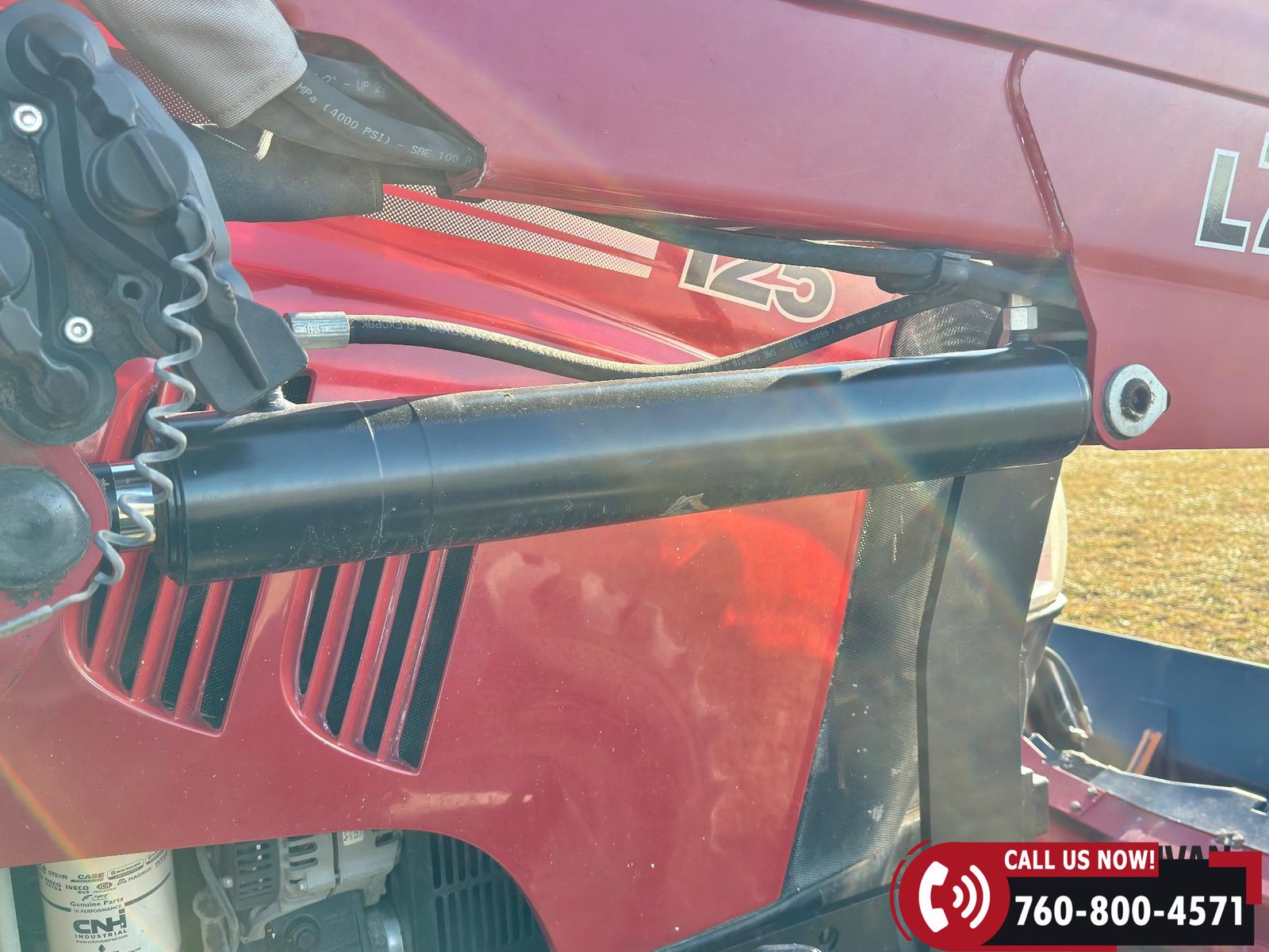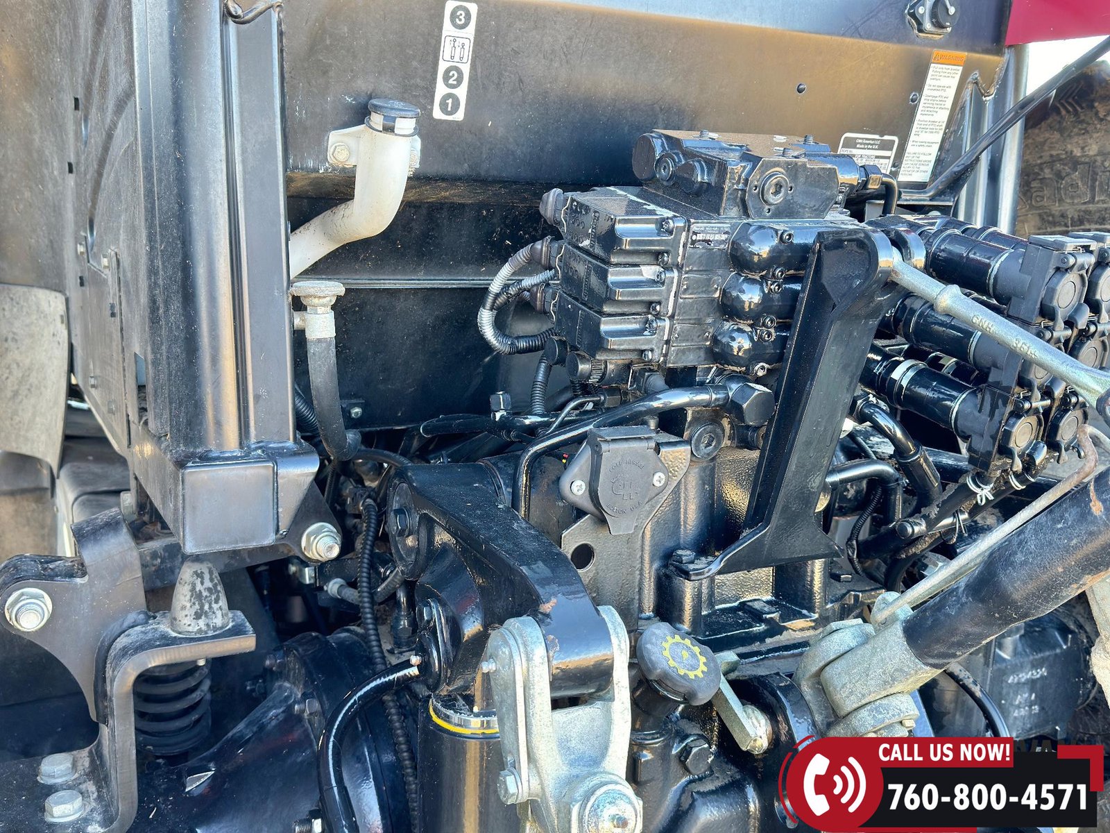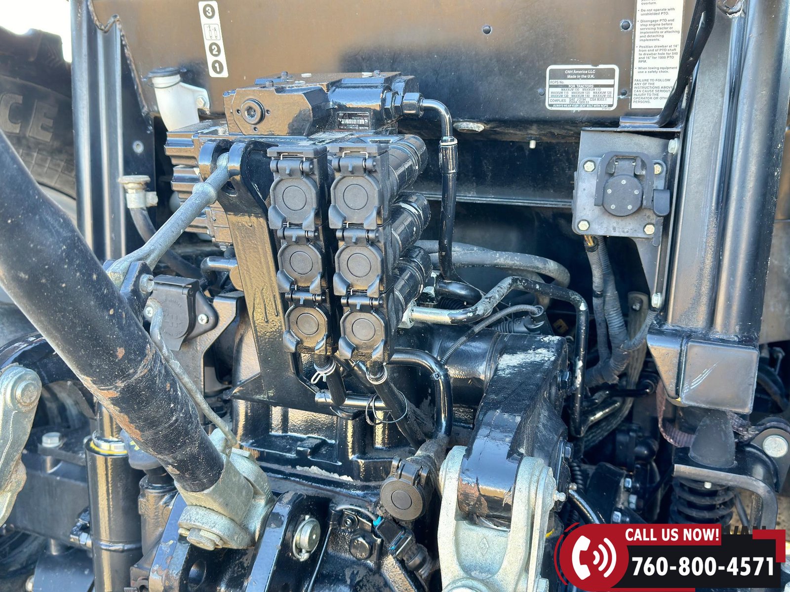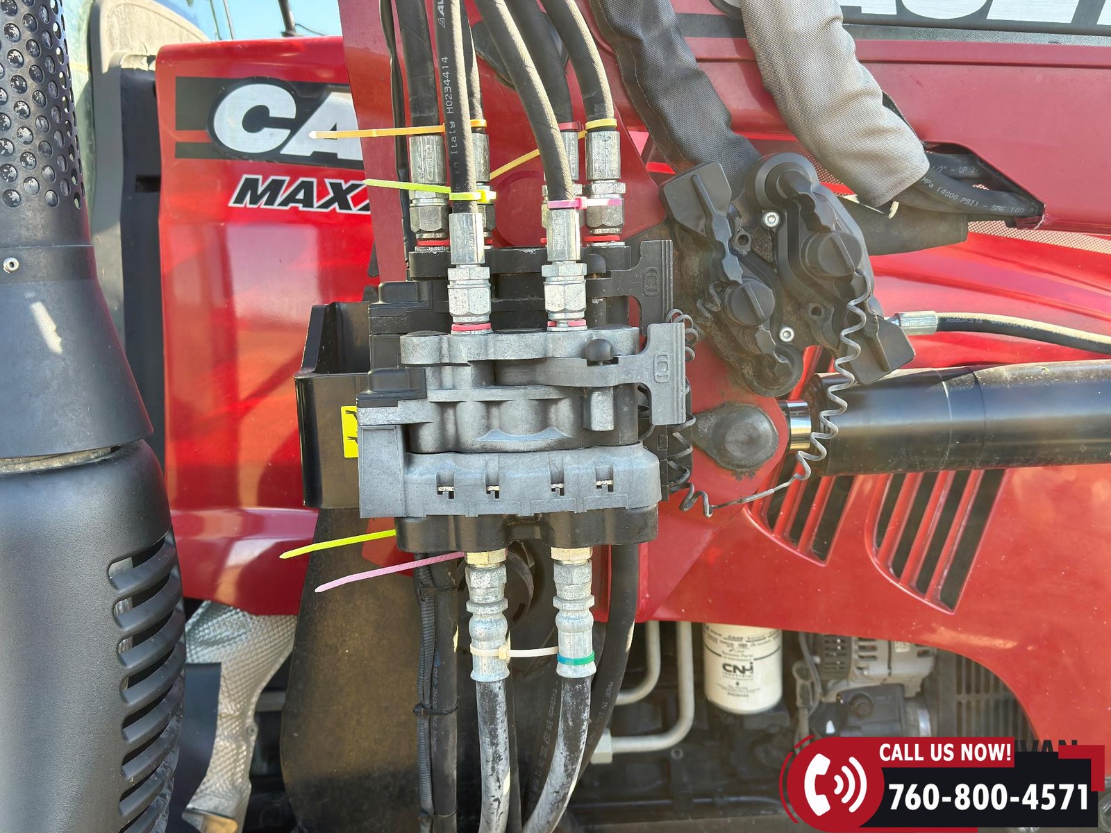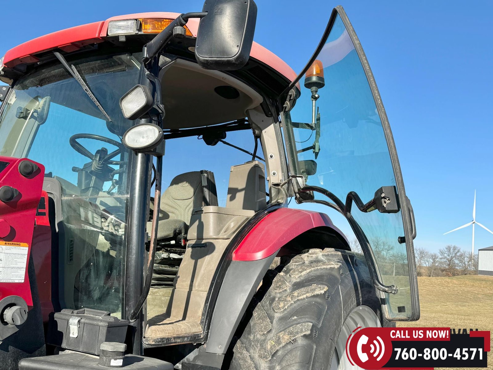Includes a Case IH L755 loader with mid couplers, joystick control, and a 91″ material bucket with global hookup.