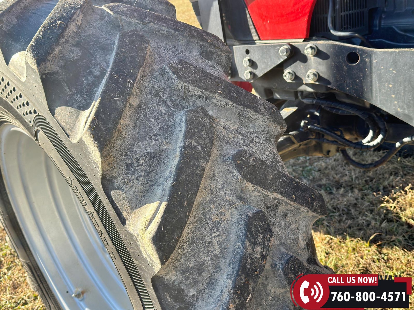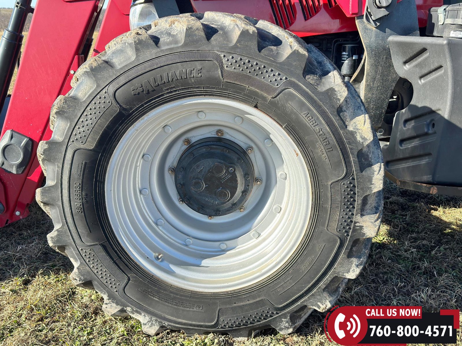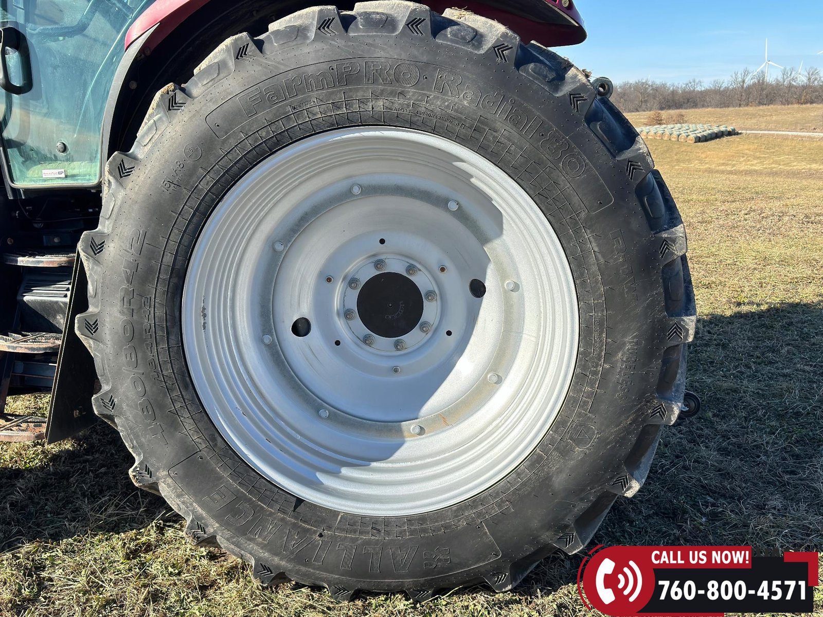 Rides on 380/85R30 front tires and 480/80R42 rear tires.