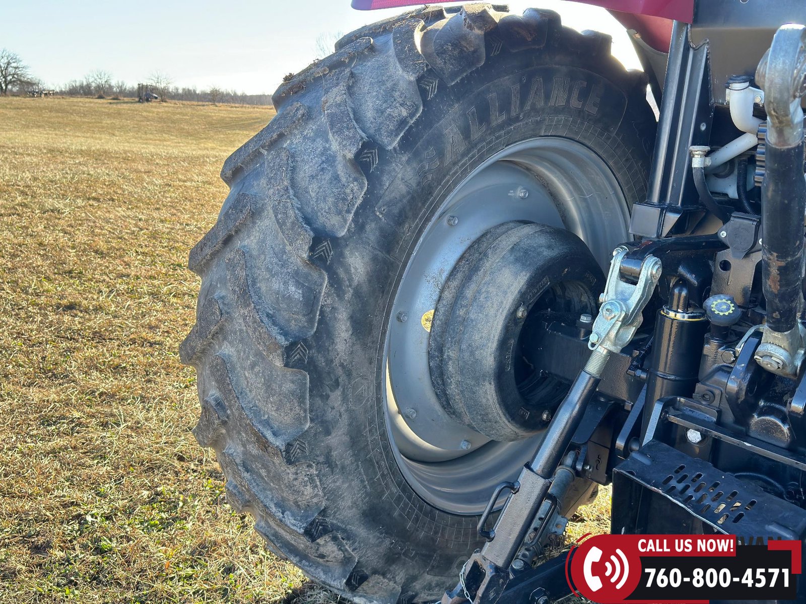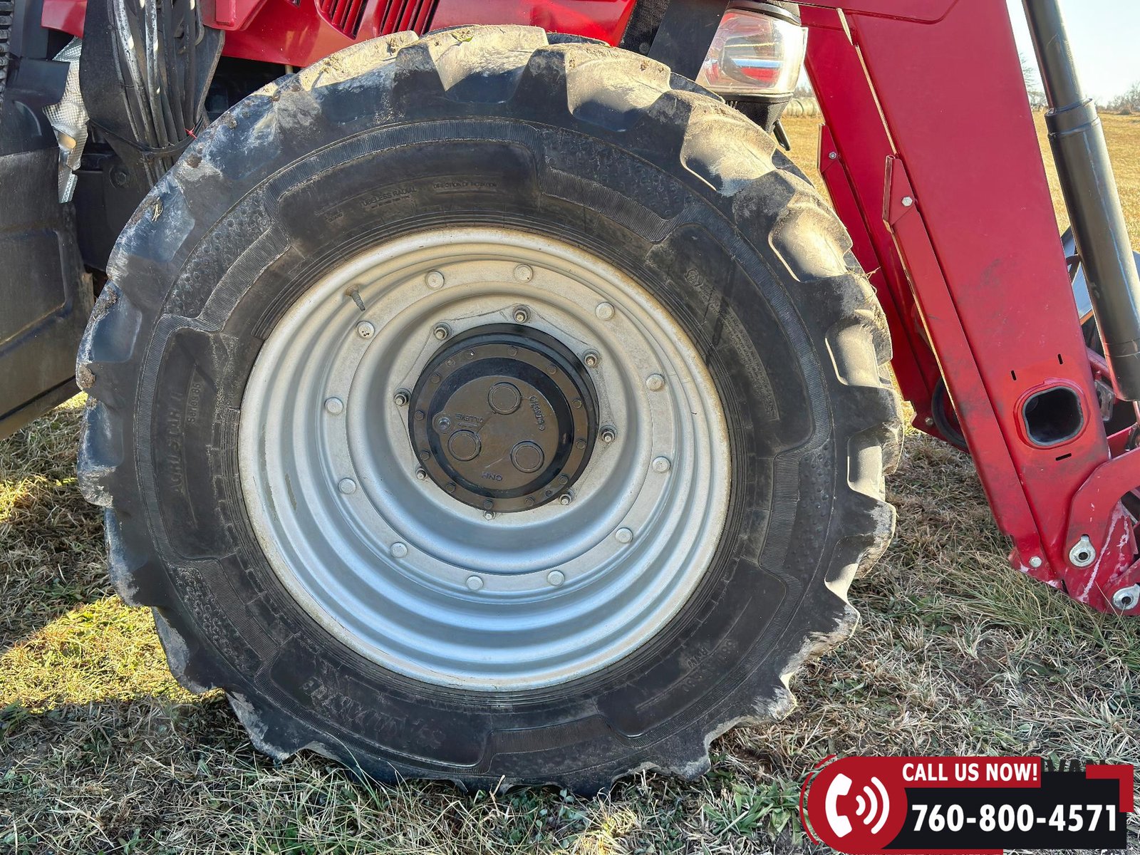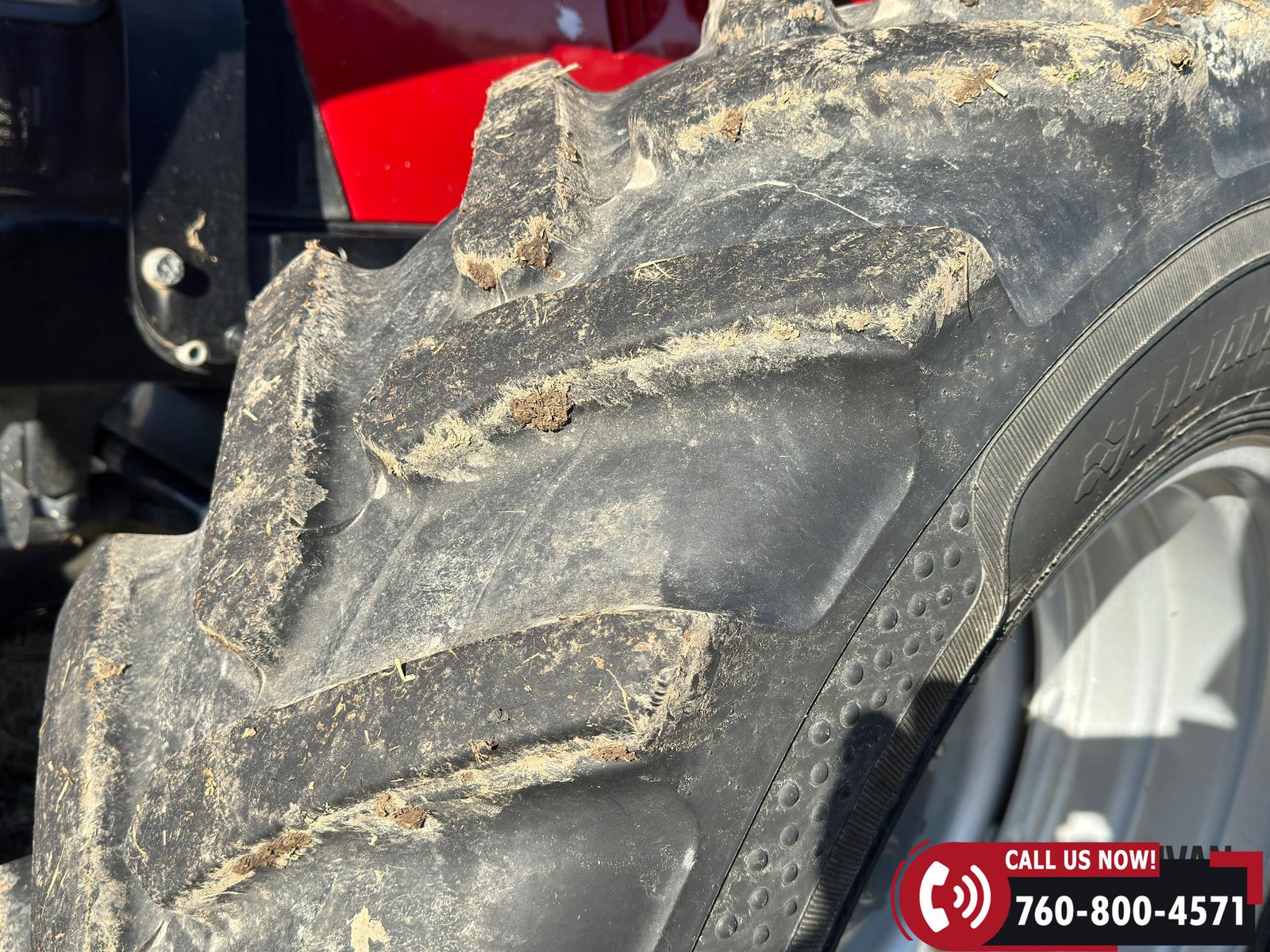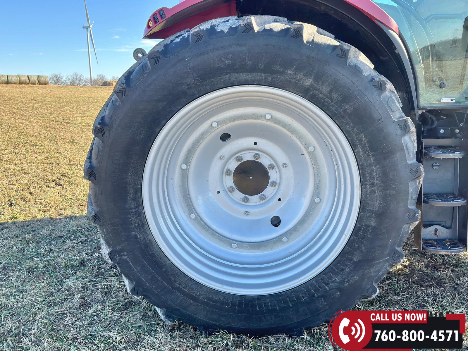 Rides on 380/85R30 front tires and 480/80R42 rear tires.