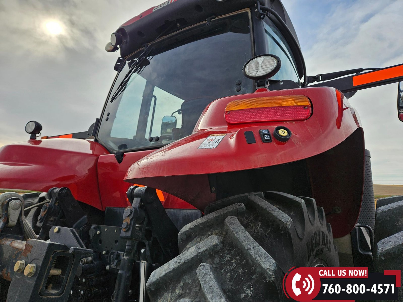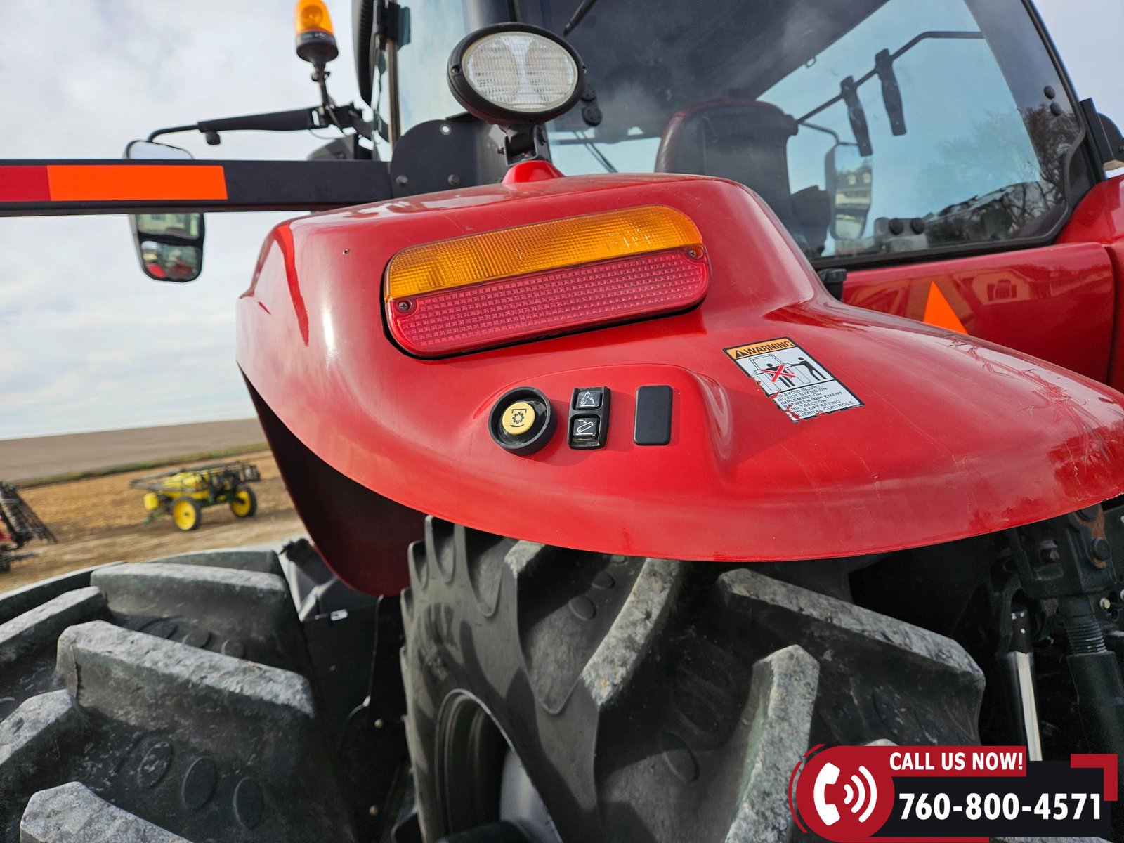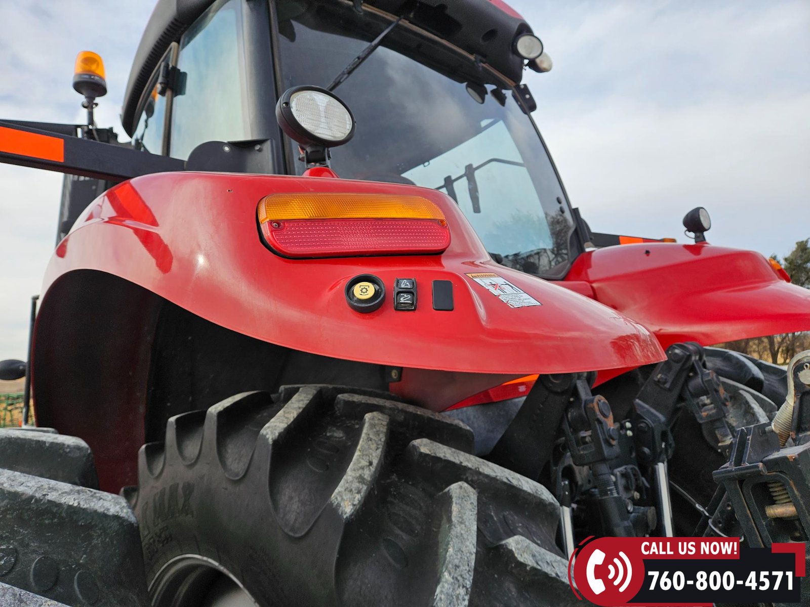 Features include 540/small 1000/large 1000 PTO, four hydraulic outlets, power beyond return valve, and a 3-point hitch with quick hitch and rear fender hitch controls. Also equipped with a hammer strap pin hitch, differential lock, (6) front suitcase weights, and rear inner wheel weights.