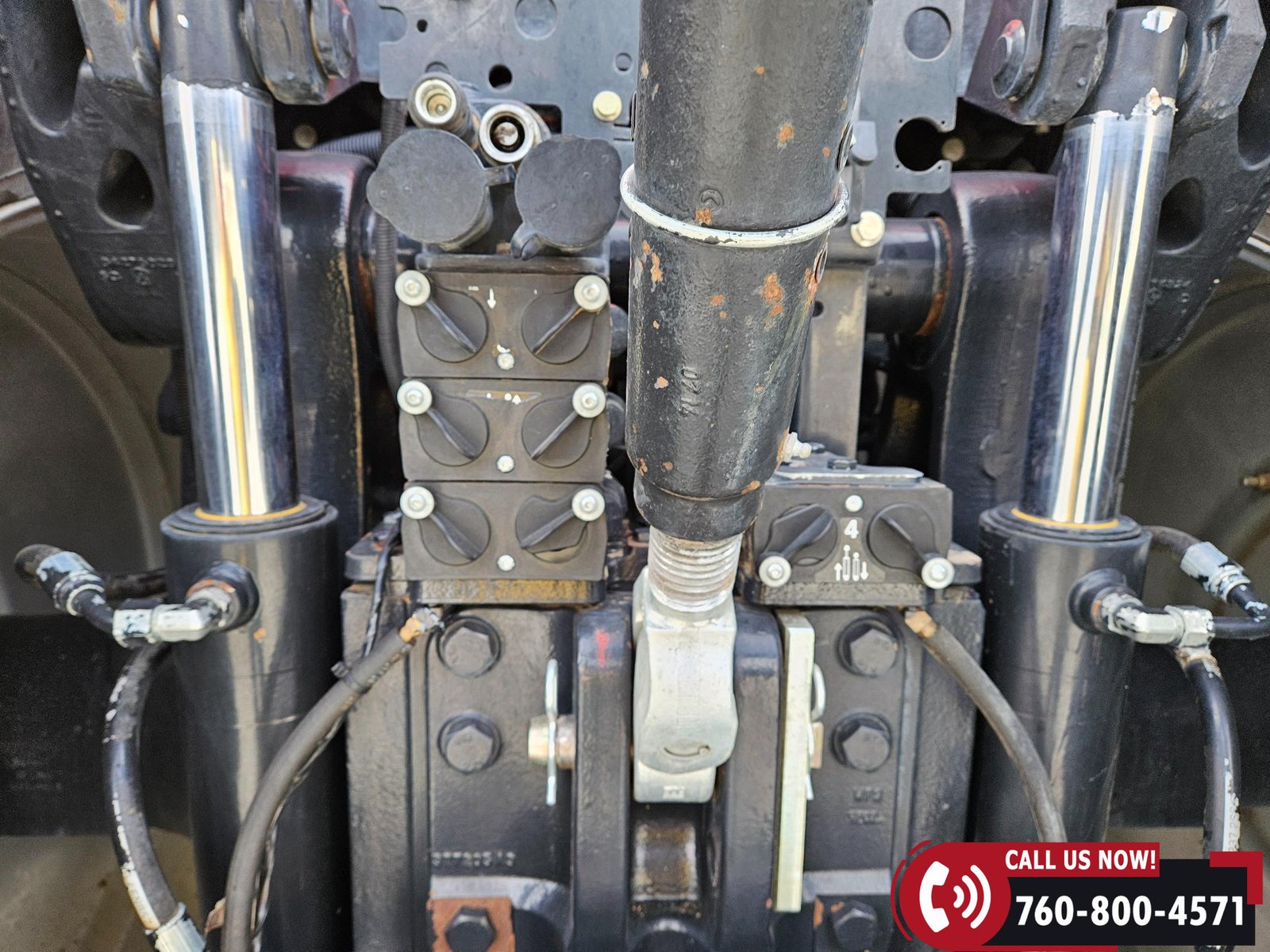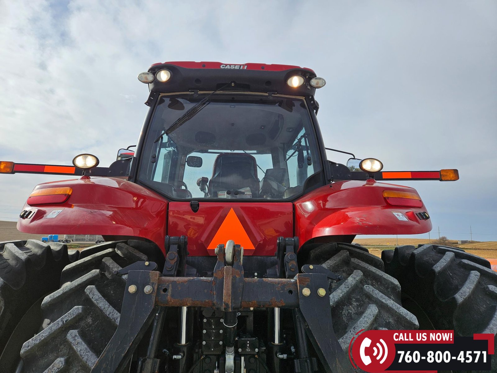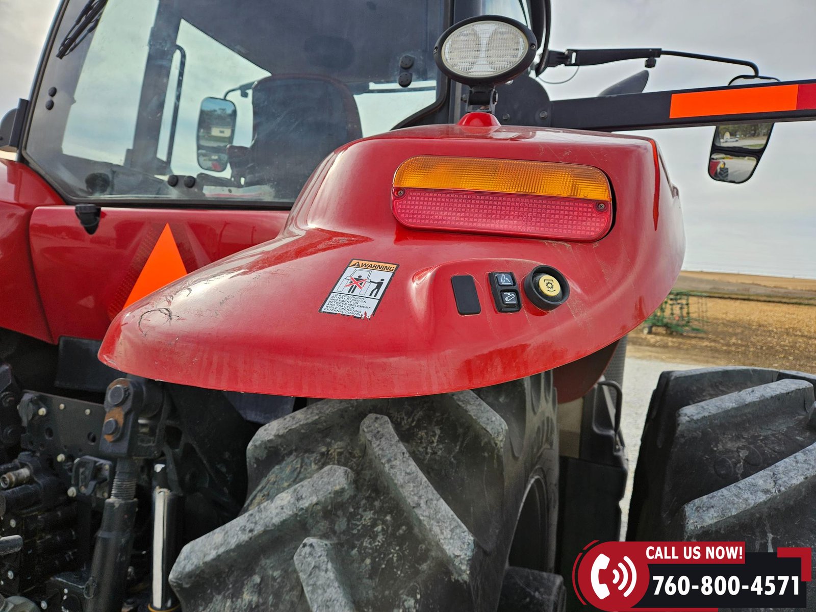 Features include 540/small 1000/large 1000 PTO, four hydraulic outlets, power beyond return valve, and a 3-point hitch with quick hitch and rear fender hitch controls. Also equipped with a hammer strap pin hitch, differential lock, (6) front suitcase weights, and rear inner wheel weights.