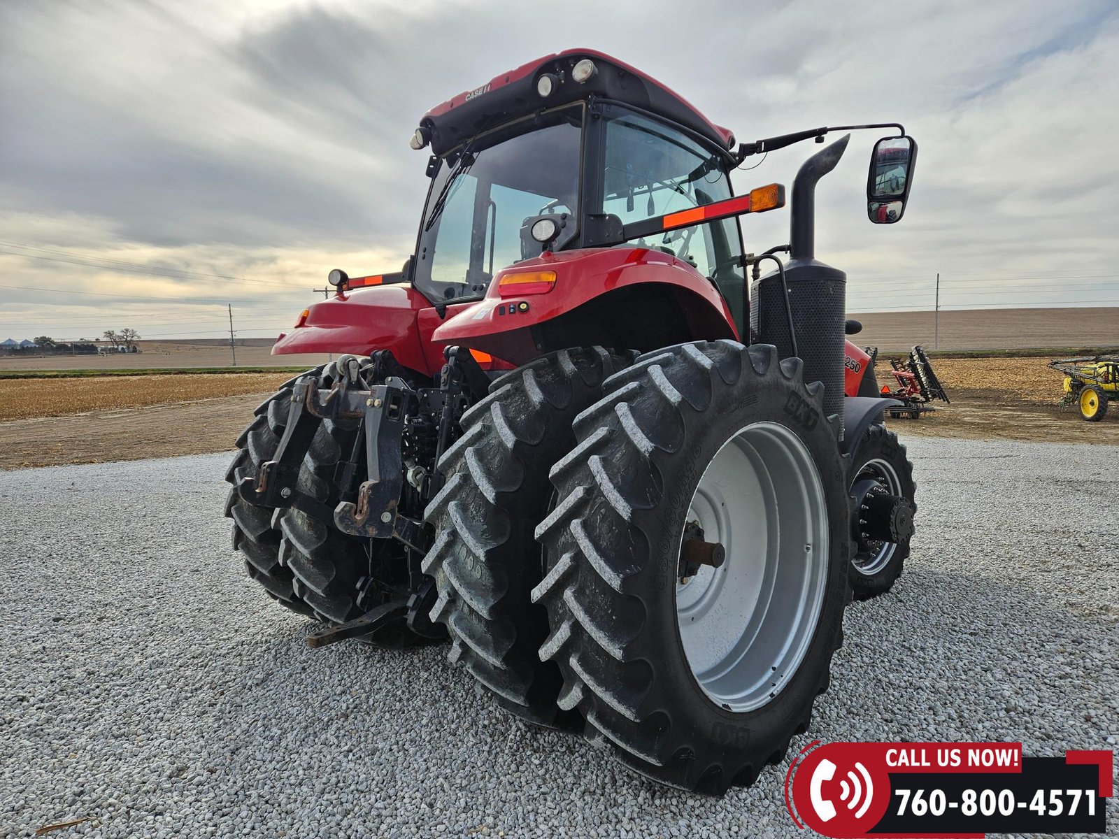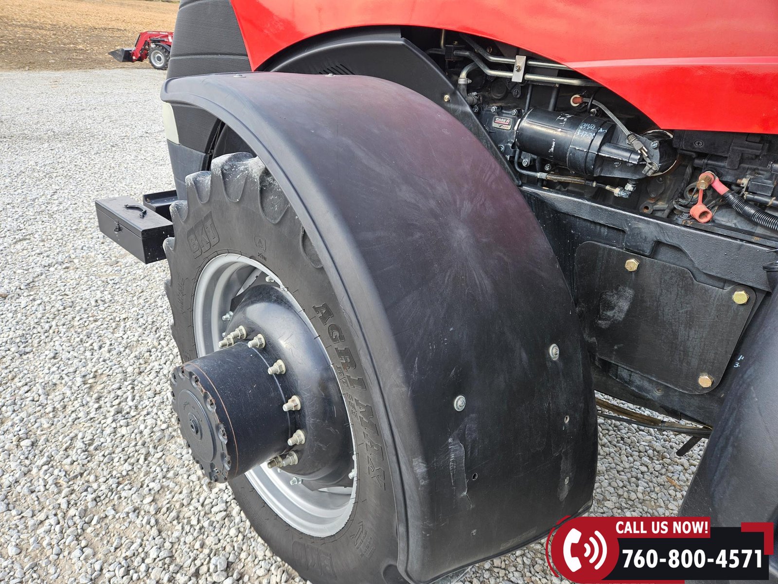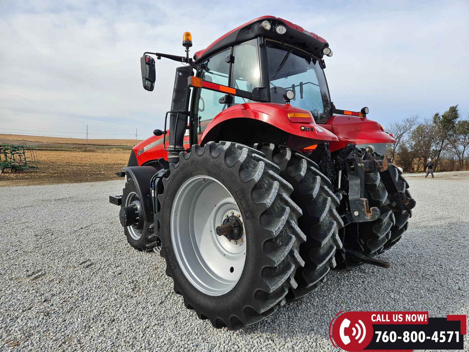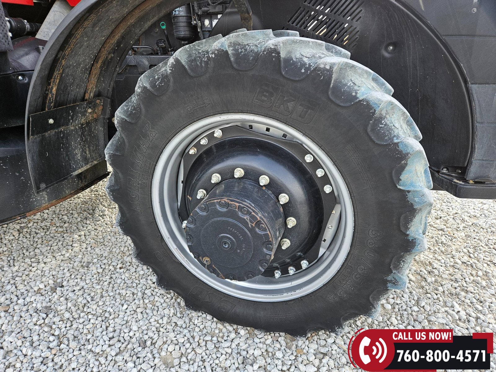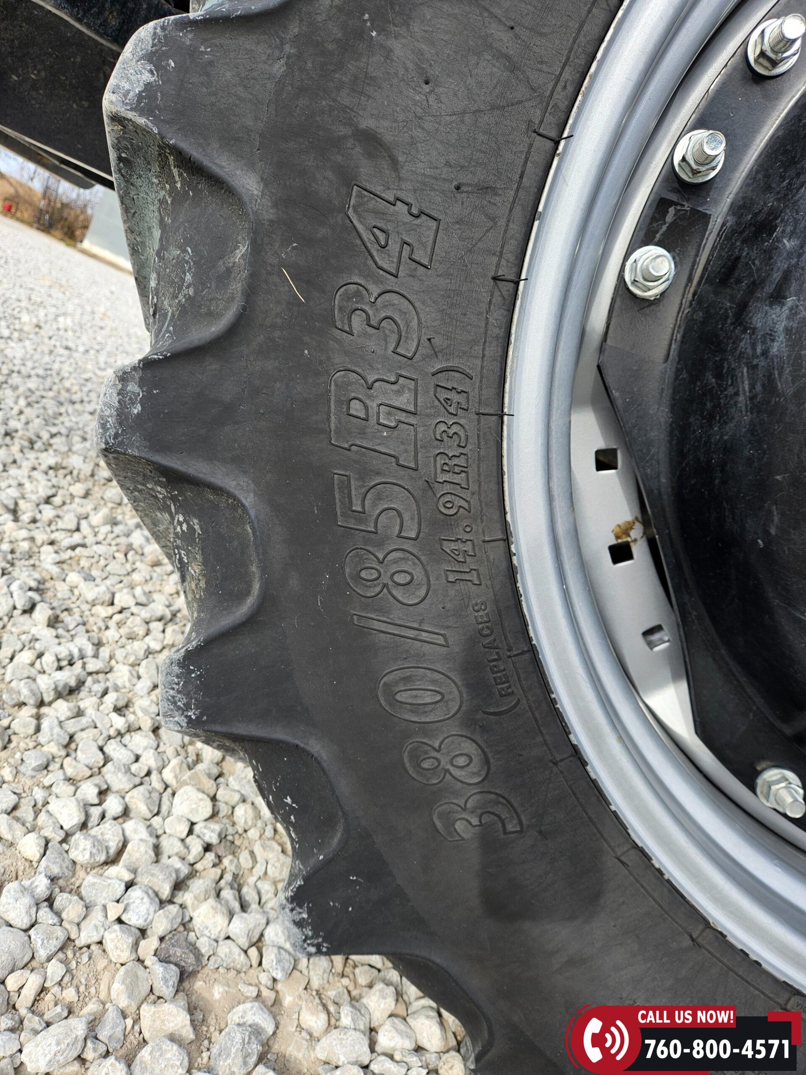 Rides on 380/85R34 front tires and 480/80R46 rear tires with rear duals, set on 30″ row spacing.