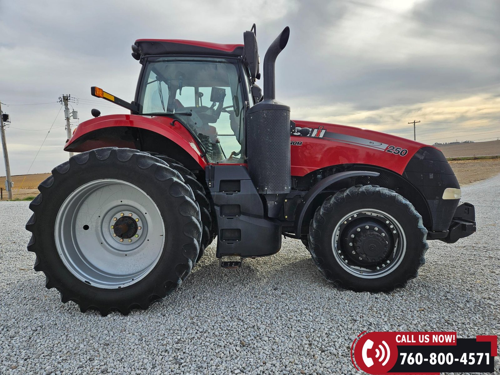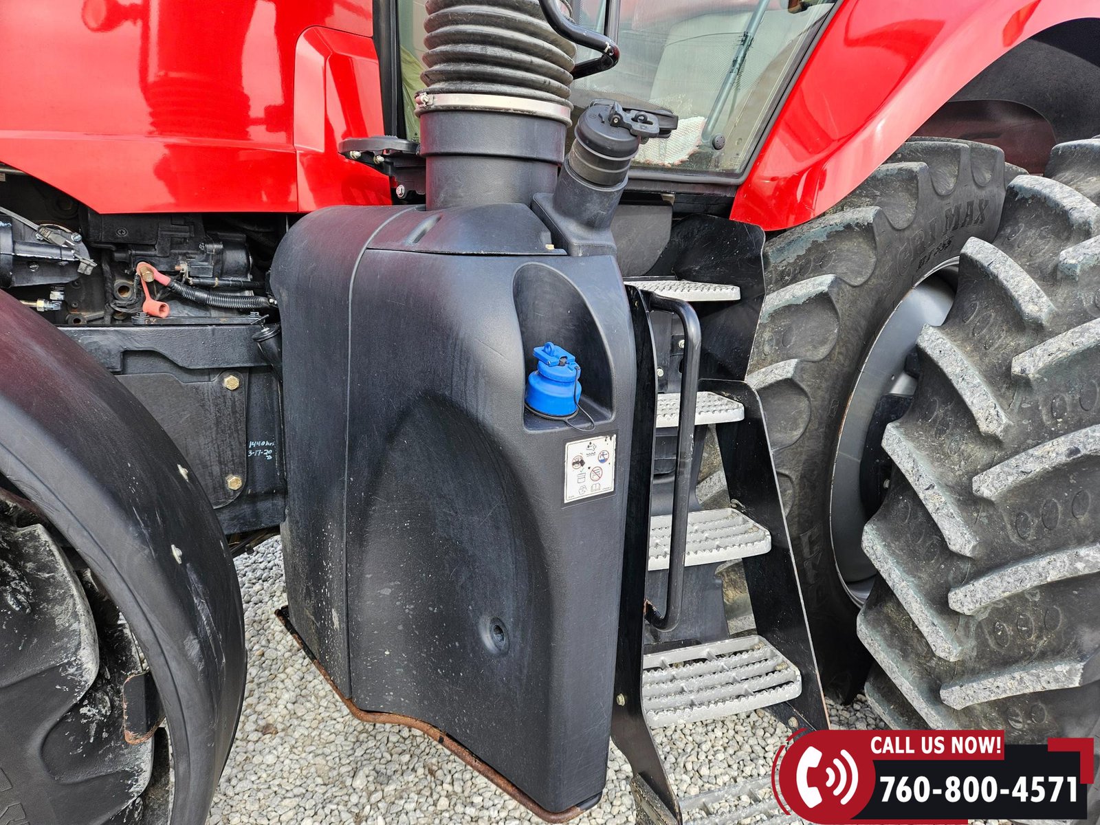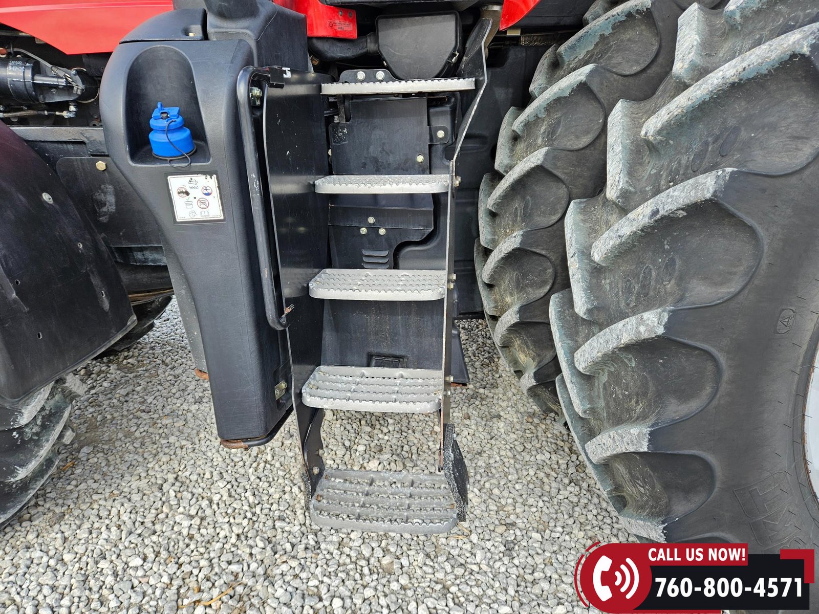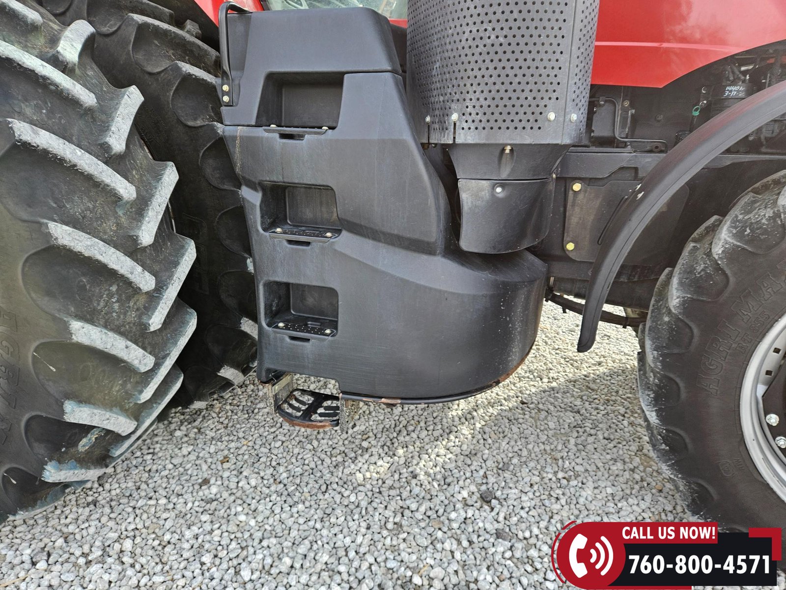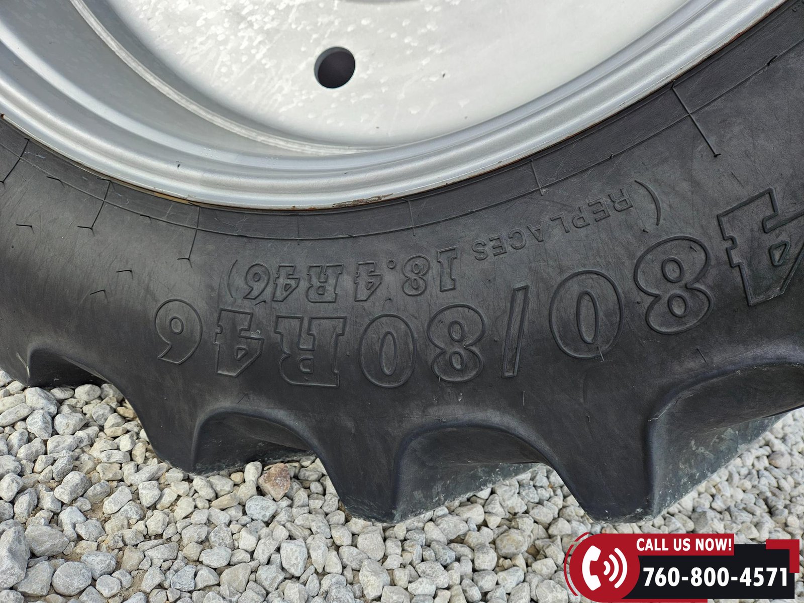 Rides on 380/85R34 front tires and 480/80R46 rear tires with rear duals, set on 30″ row spacing.