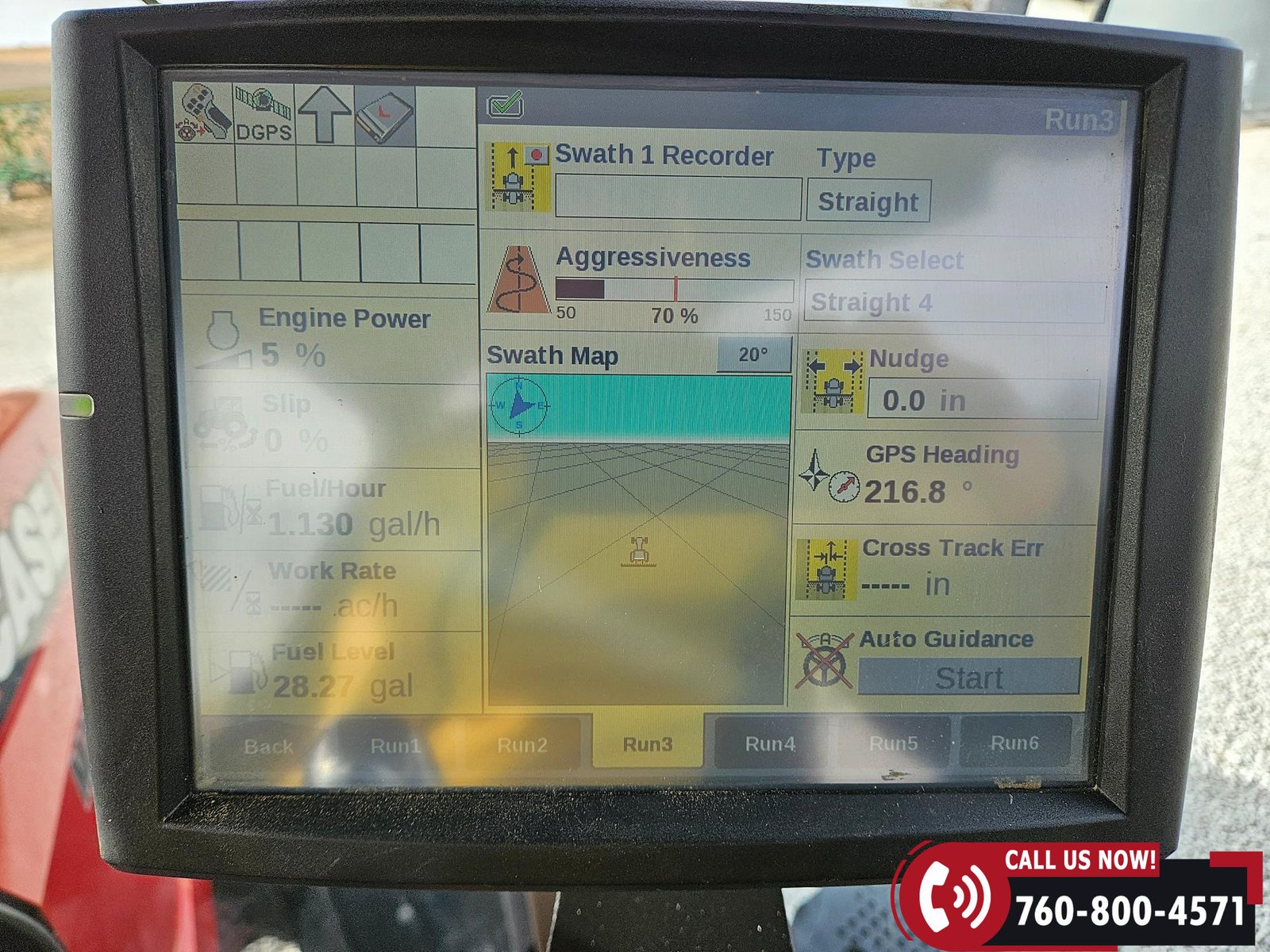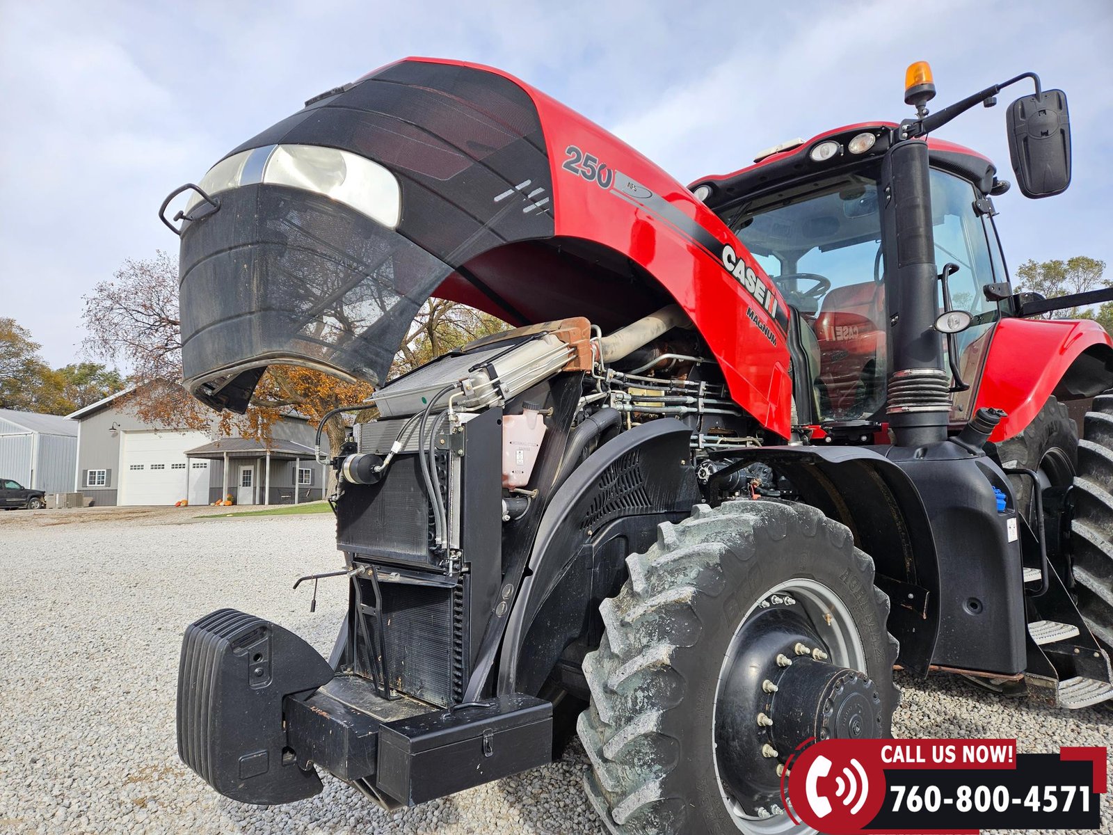 Cab features include a leather air ride seat, buddy seat, beacon light, electric adjustable mirrors, pull-down window screens/sun shades, and includes the operator’s manual. Technology package includes a Case IH AFS 700 display, Case IH 372 receiver, and ISOBUS compatibility.
