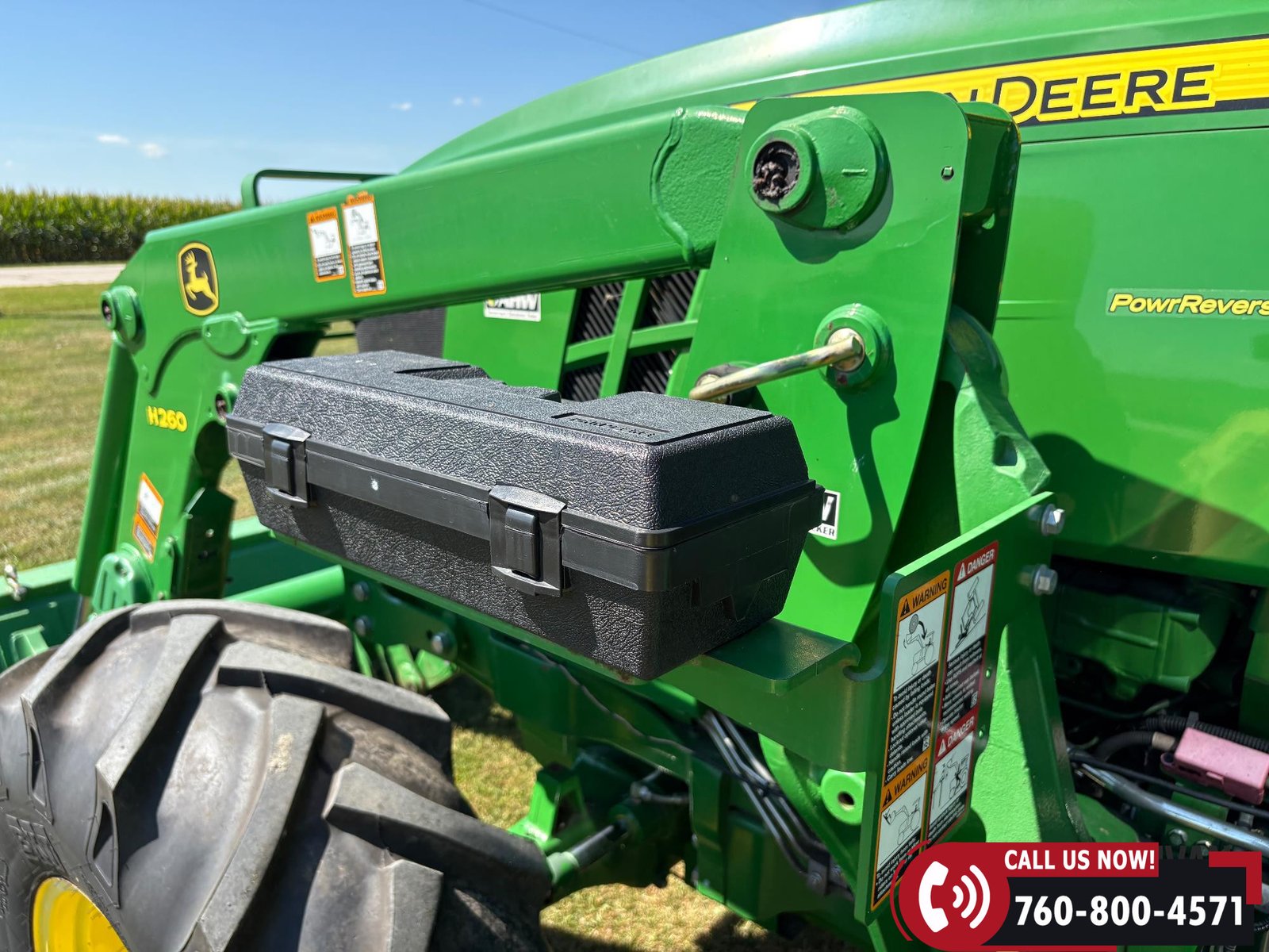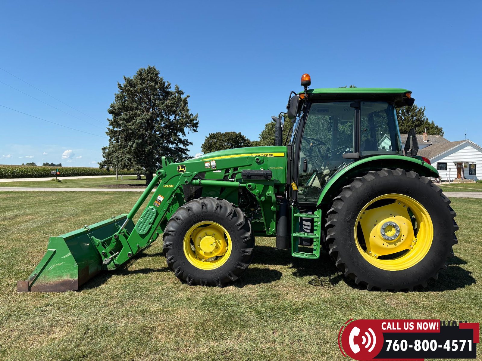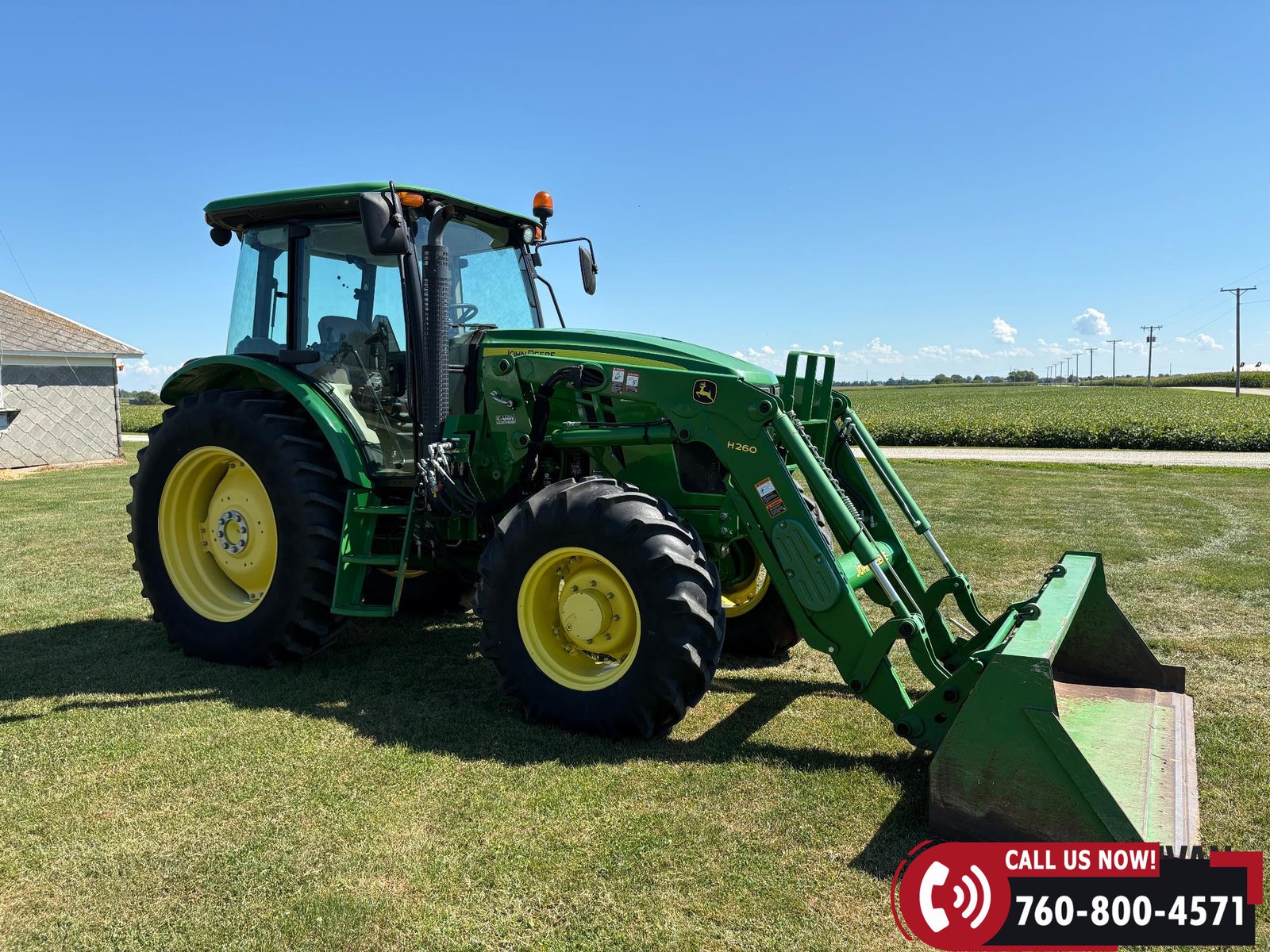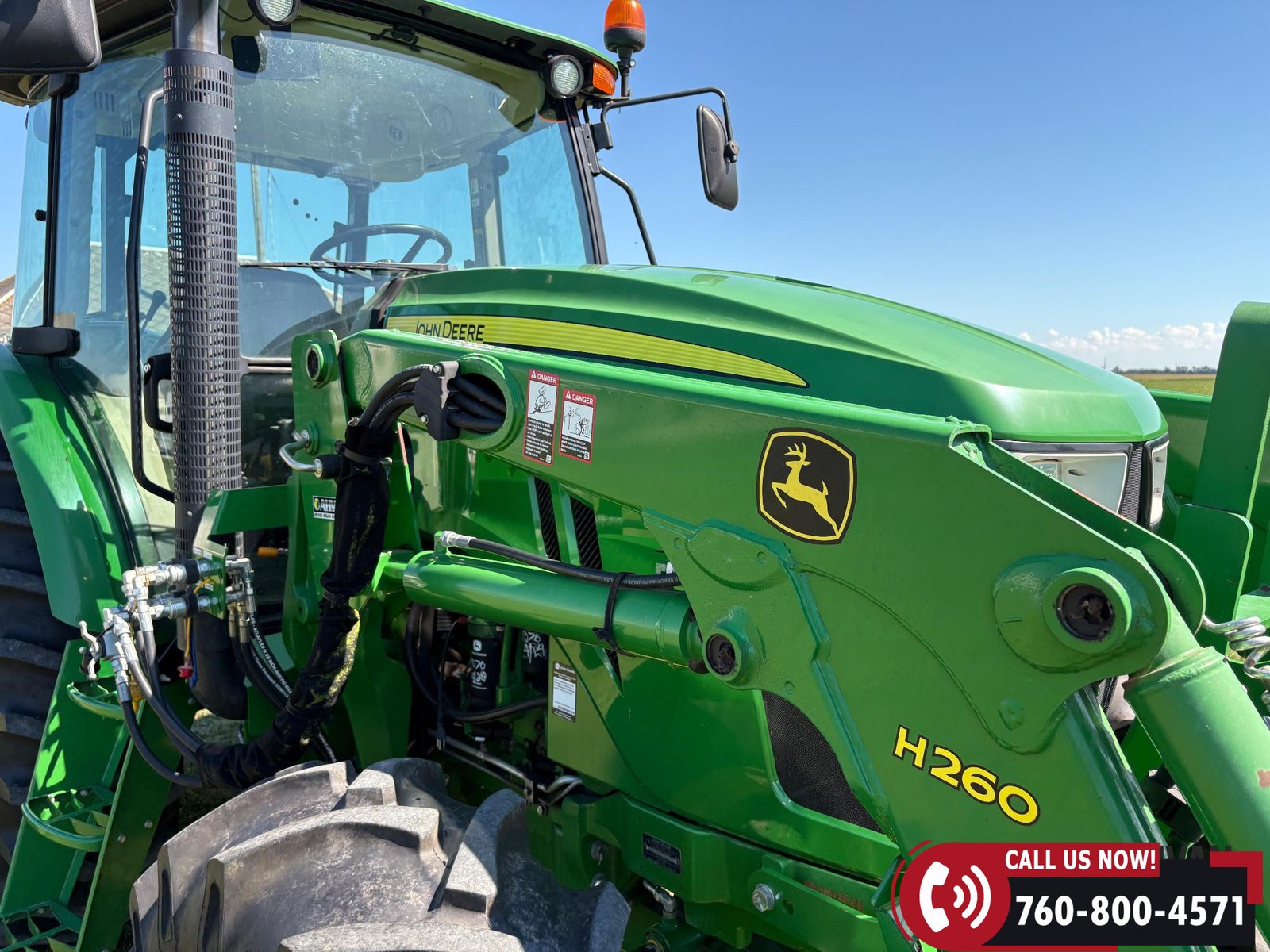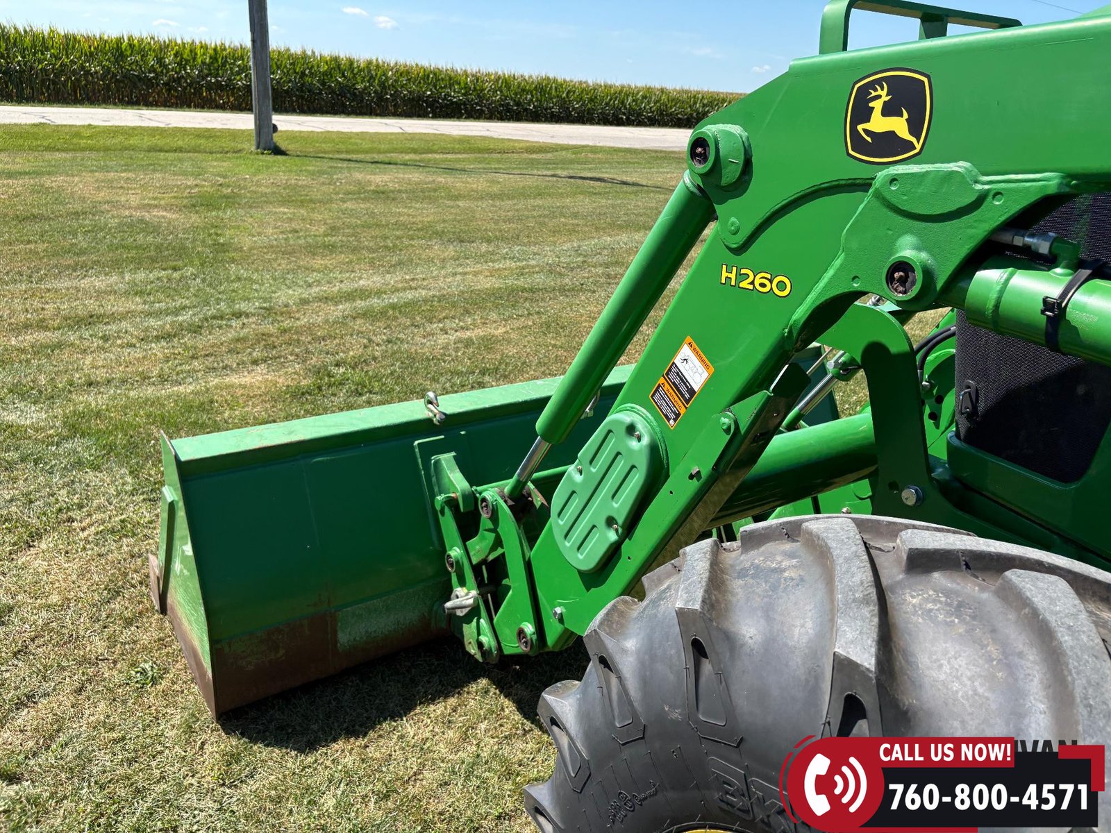 Sells complete with a John Deere H260 loader and 8-ft material bucket.