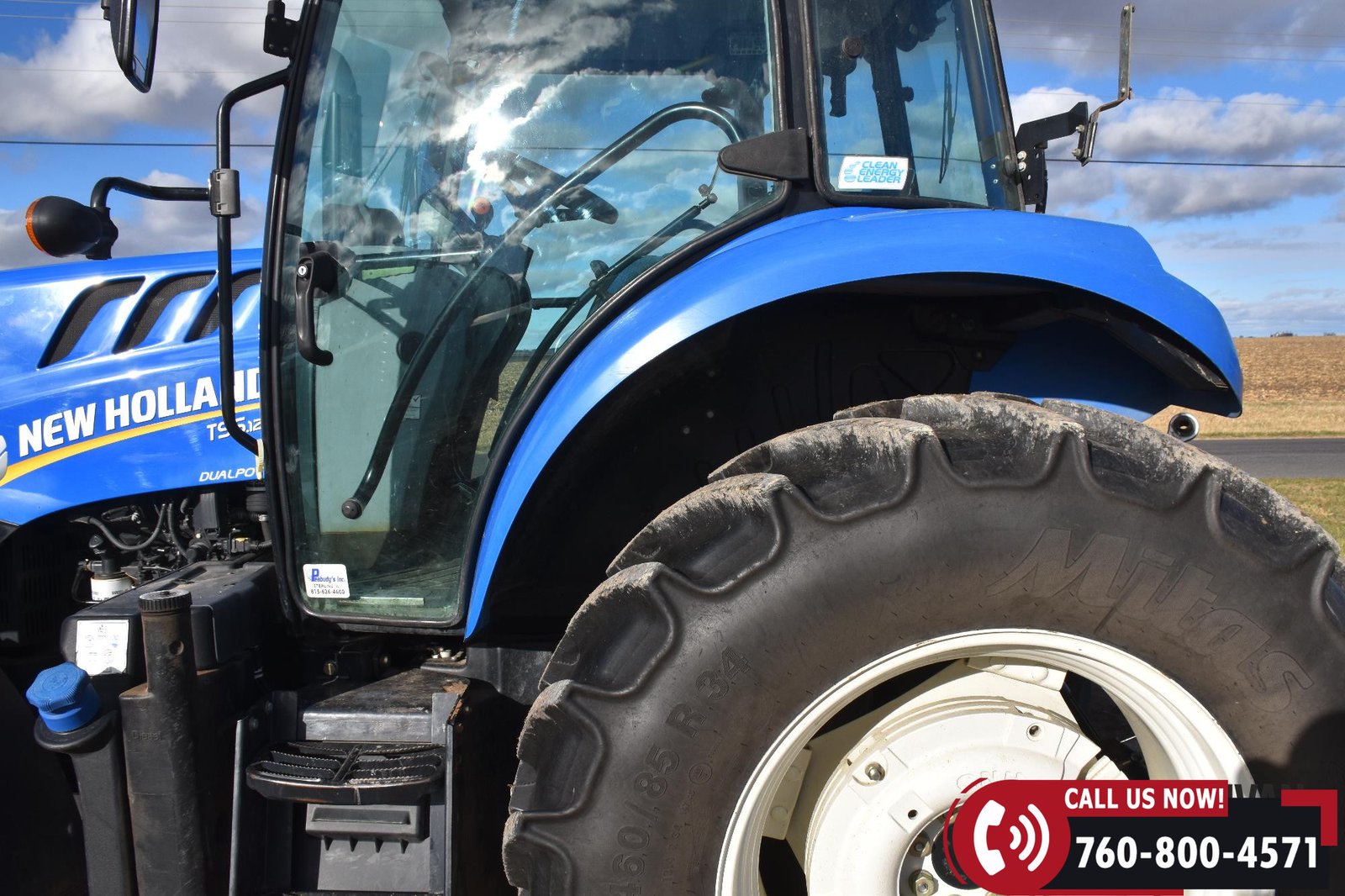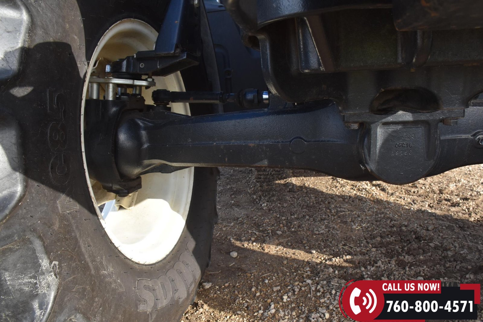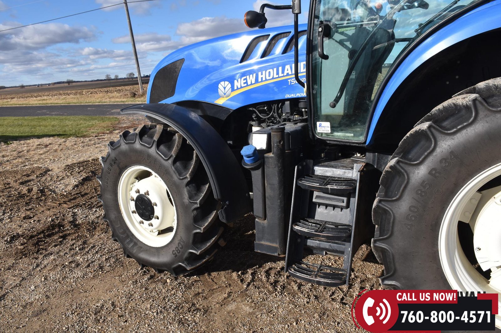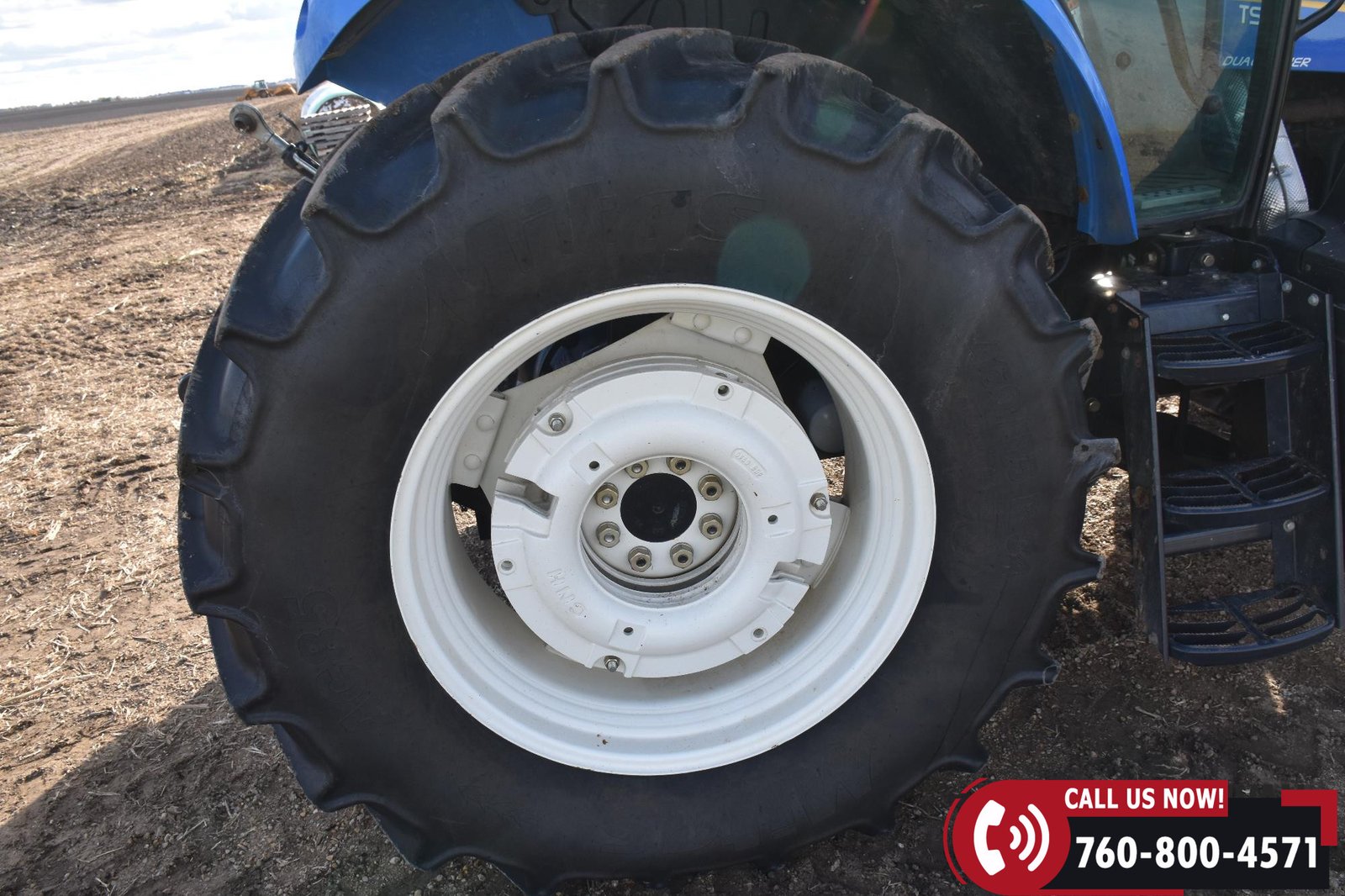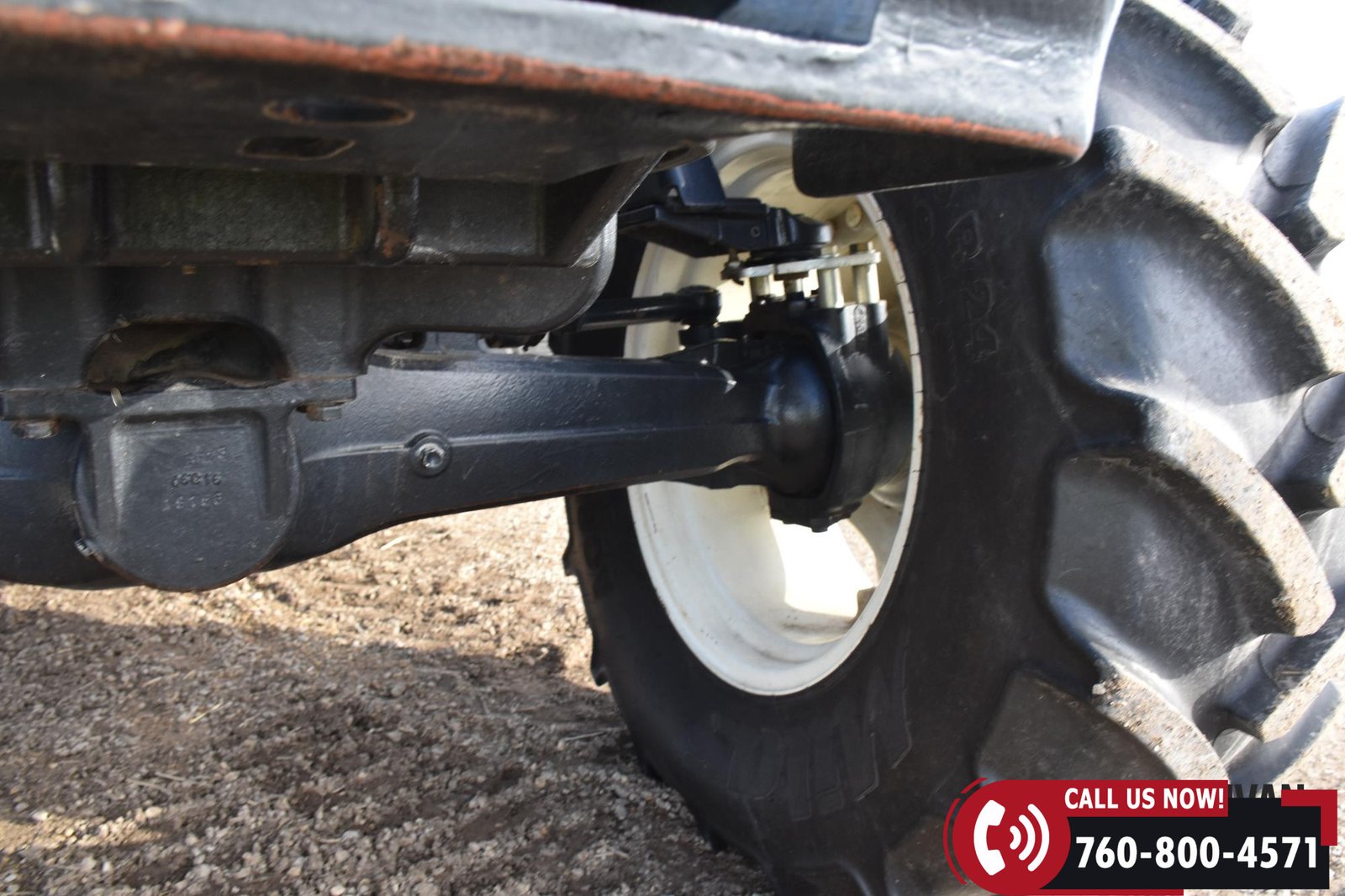 Rides on 380/85R24 front tires and 460/85R34 rear tires.