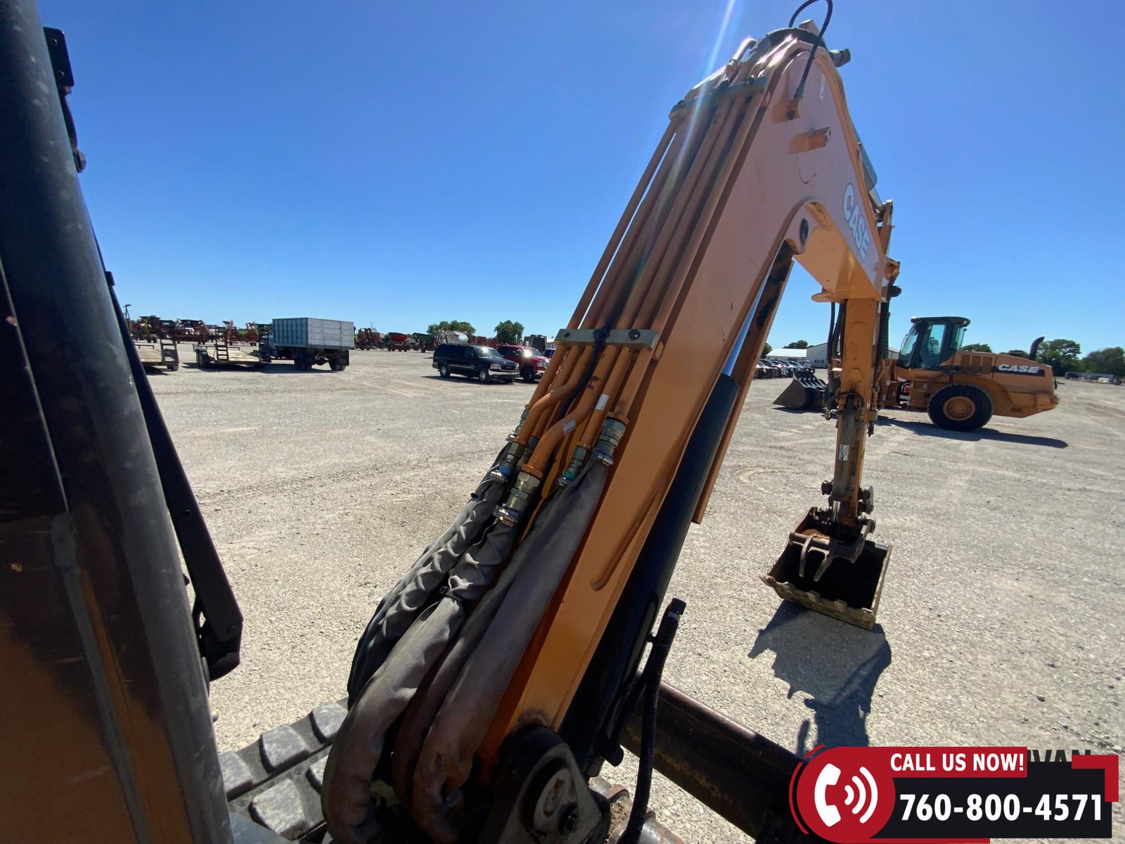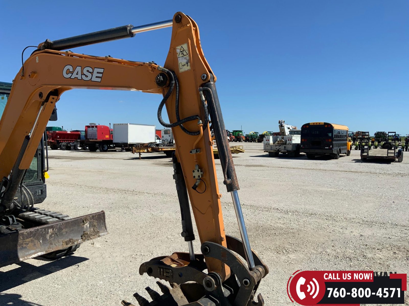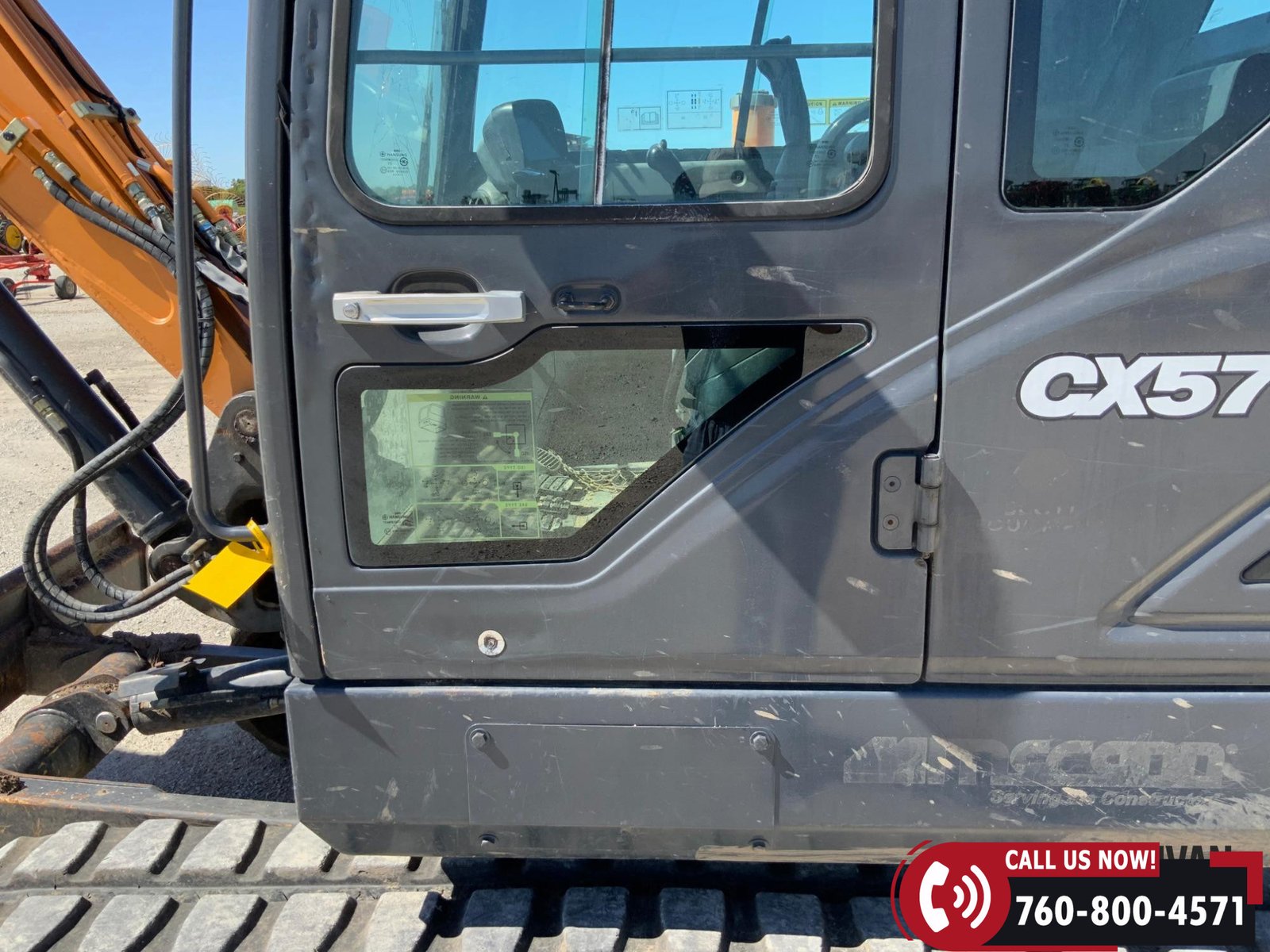 2017 Case CX57C Mini Excavator with 1,722 hours showing. Equipped with an enclosed cab with heat and A/C for operator comfort. Features include auxiliary hydraulics, a 75″ backfill blade, hydraulic thumb, and a 24″ bucket for versatile digging and material handling. Rides on 16″ rubber tracks. A reliable, job-ready mini excavator ideal for construction and utility work.