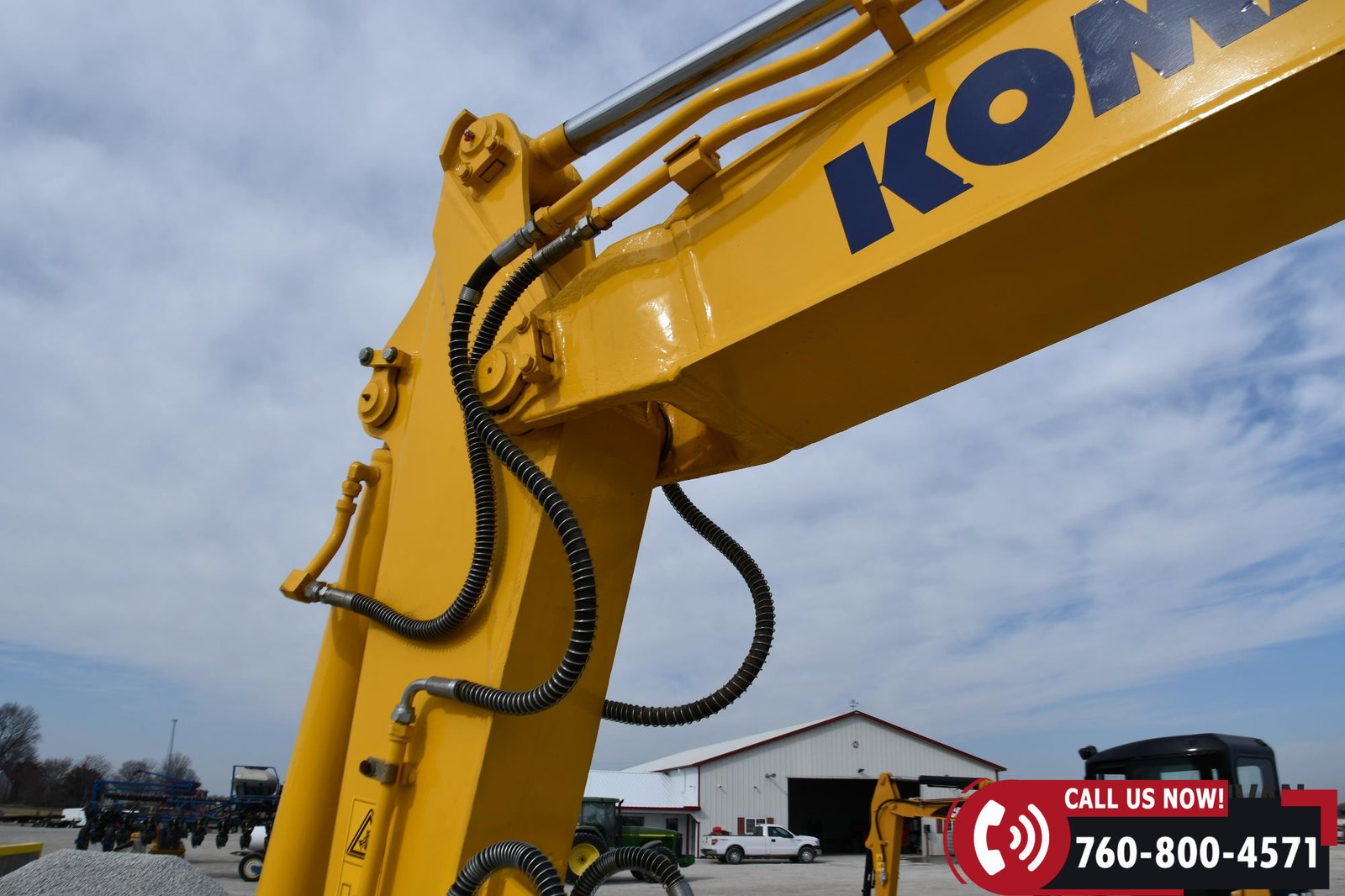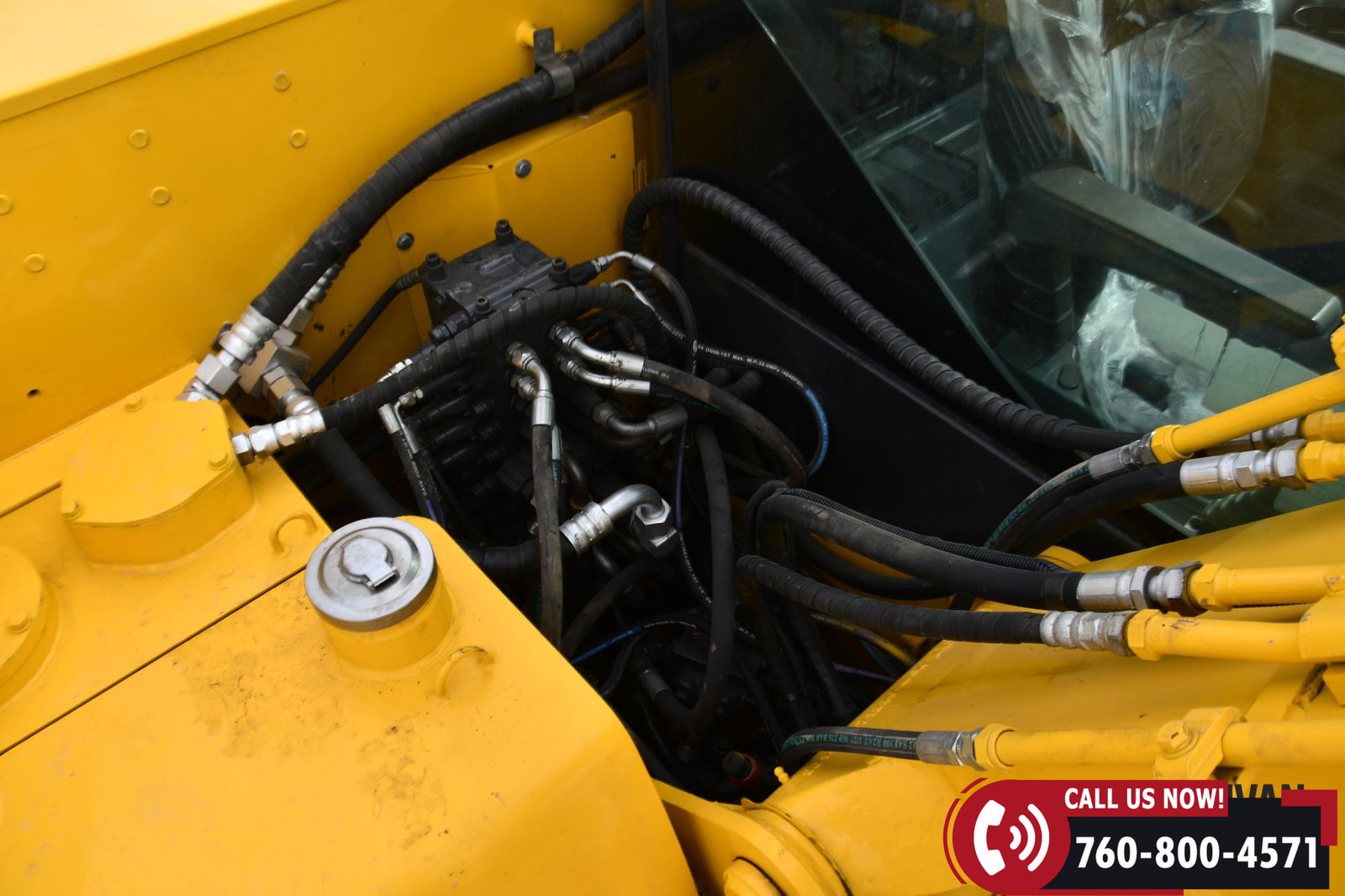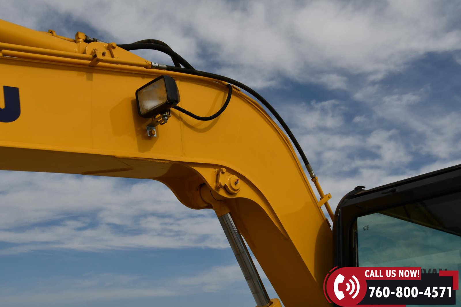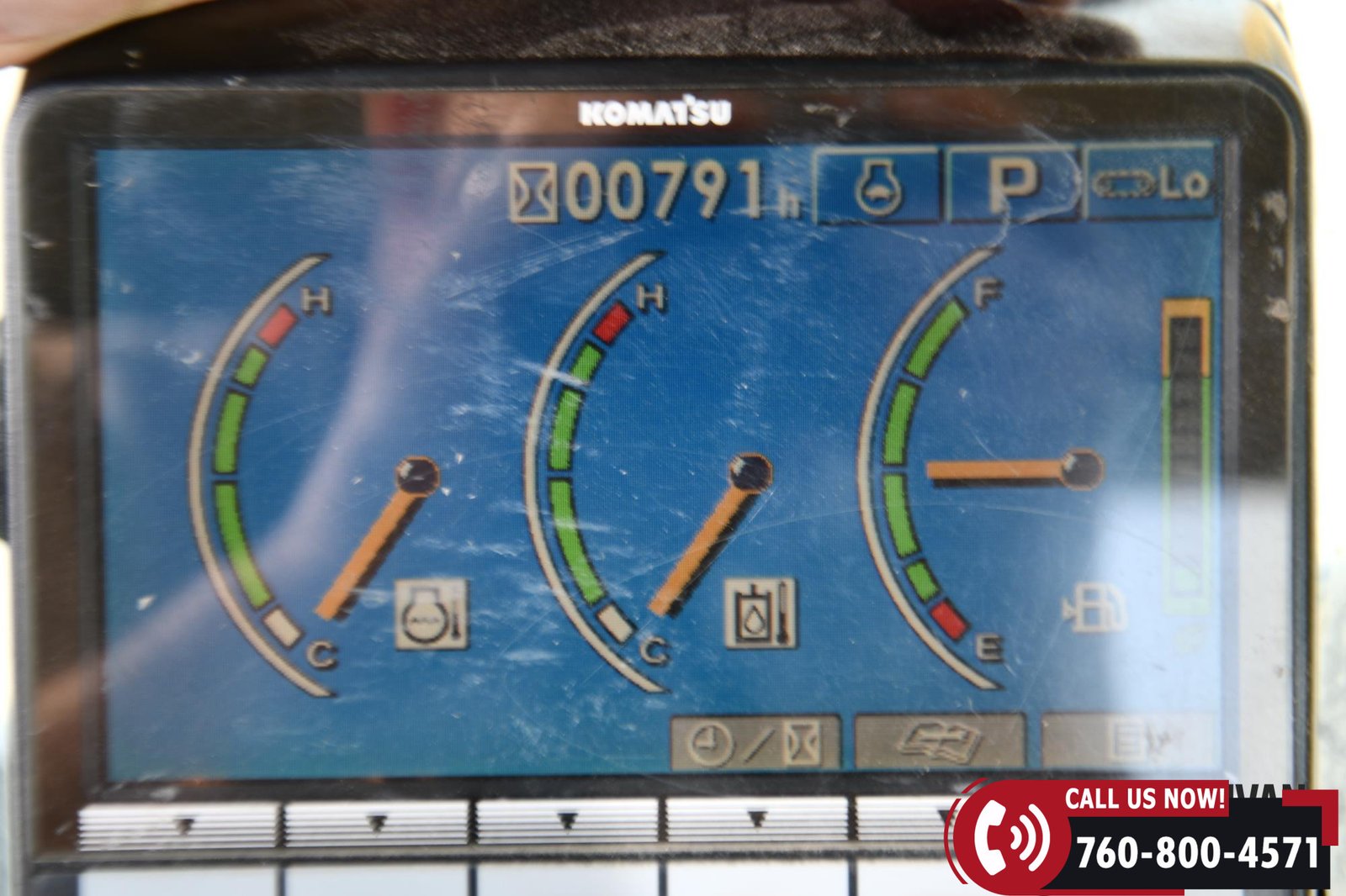2018 Komatsu PC70-8 Excavator with 791 hours showing. Equipped with an enclosed cab with heat and A/C for operator comfort. Features include an 88″ backfill blade, hydraulic thumb, and a 32″ bucket for efficient digging and material handling. Rides on 17″ tracks. A low-hour, versatile excavator ready for construction or utility work.
