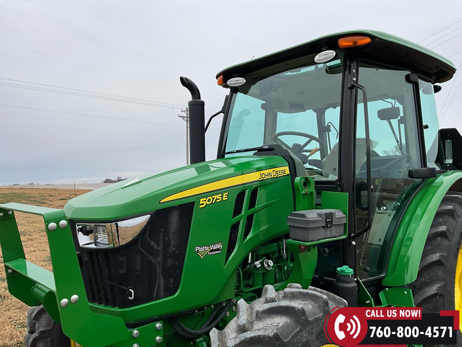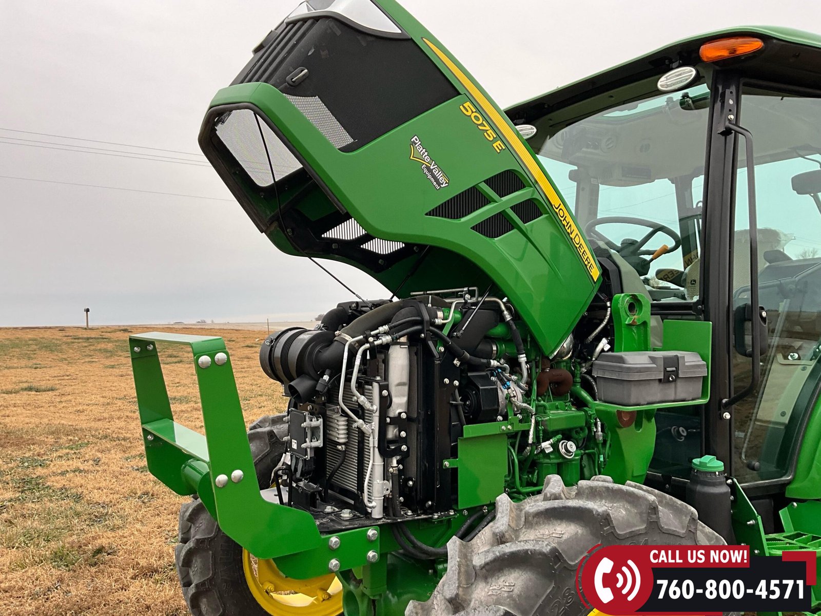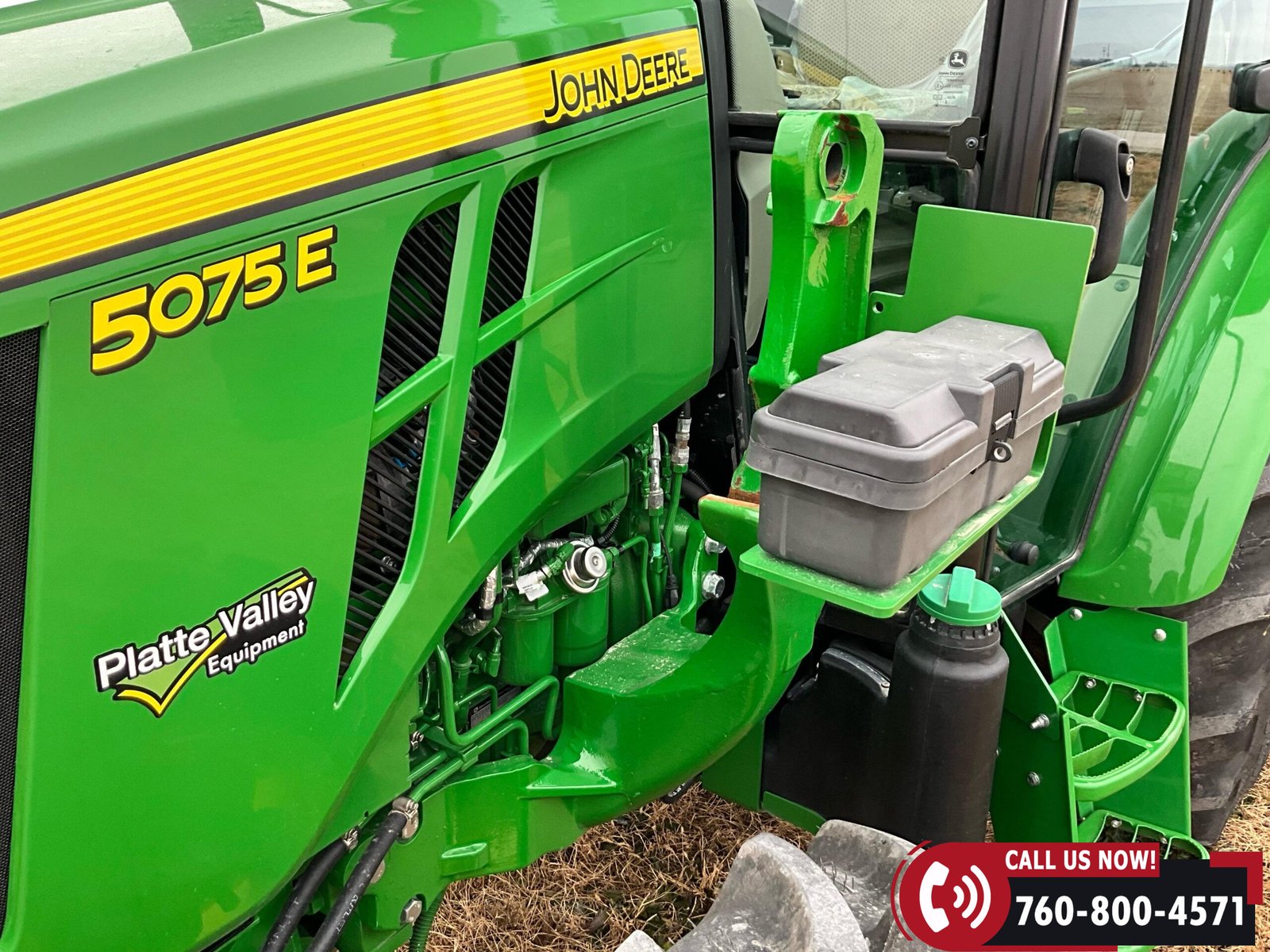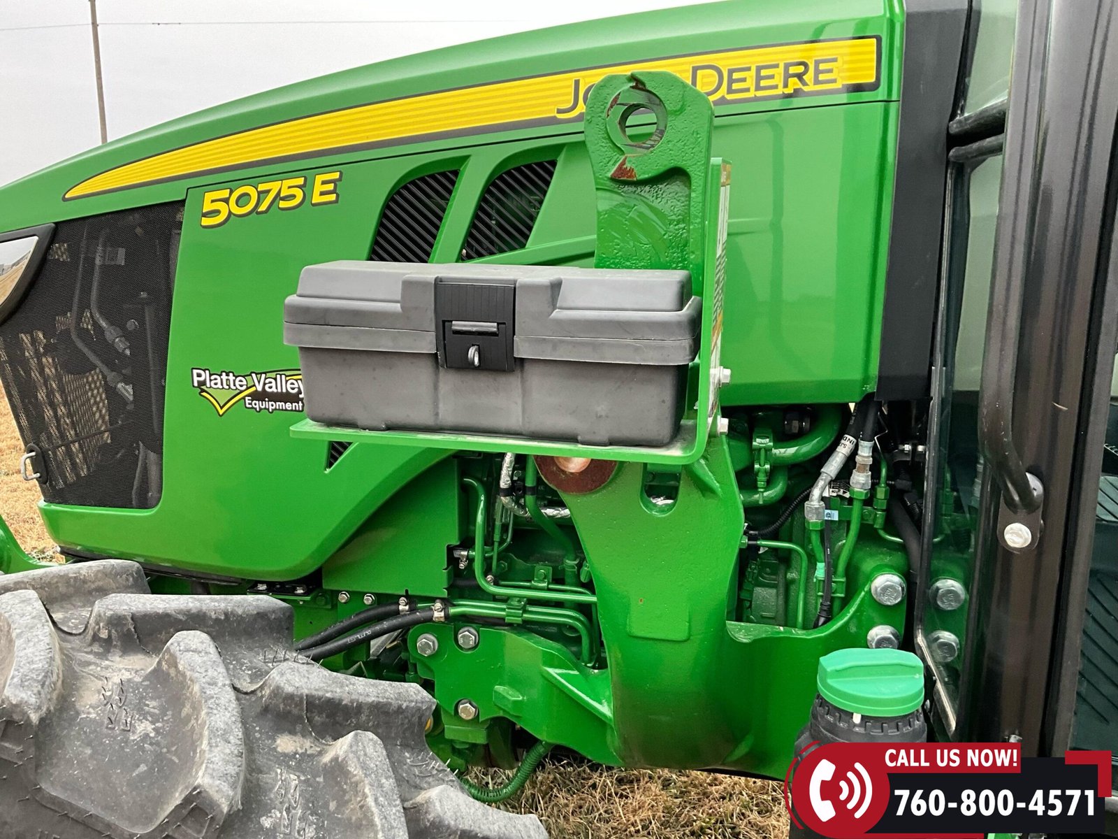 2023 John Deere 5075E MFWD Tractor with 87 hours showing. Powered by a John Deere 3029EWR 2.9L 3-cylinder turbocharged aftercooled diesel engine rated at 75 HP, water-cooled, and equipped with an engine block heater.