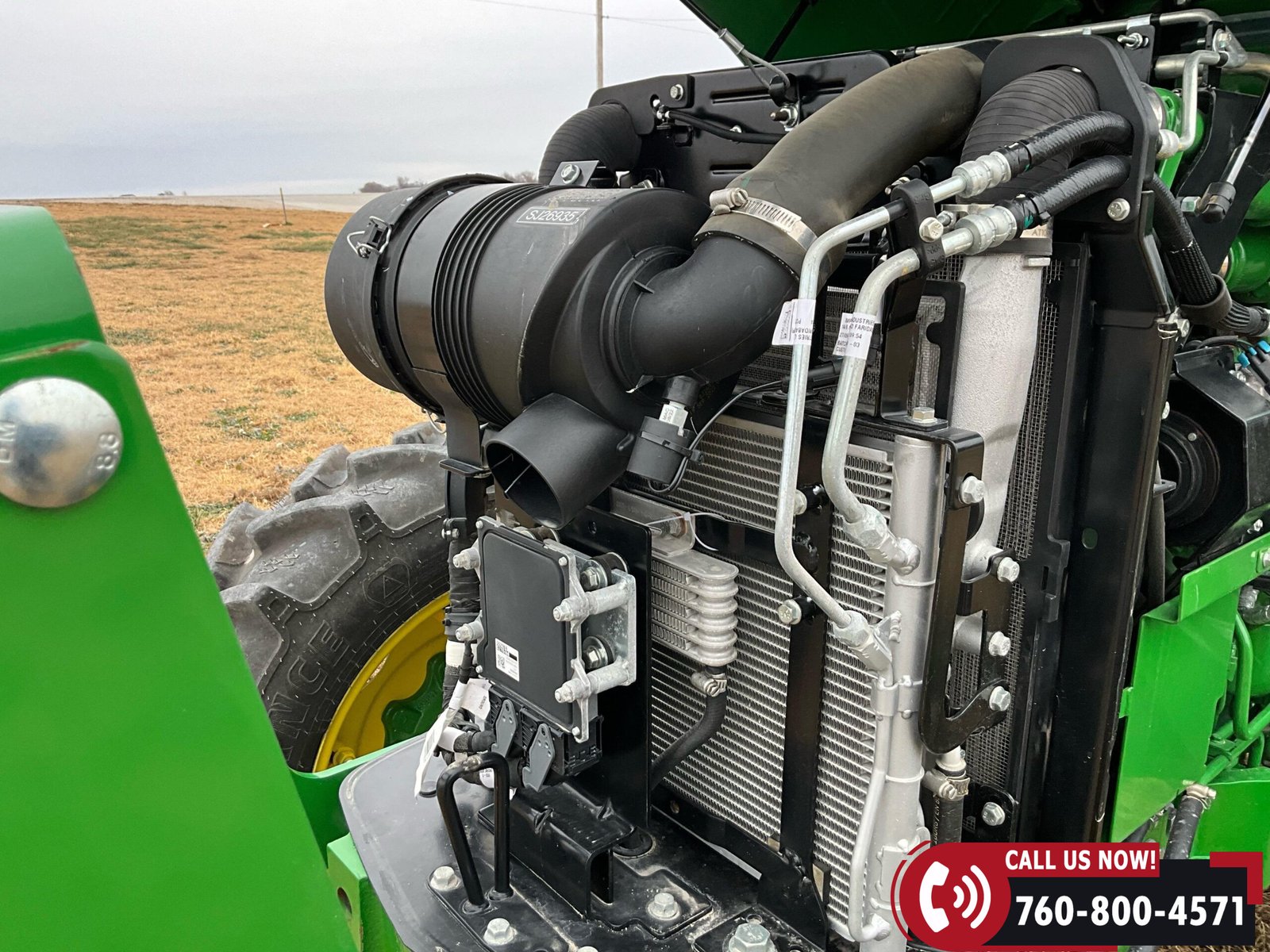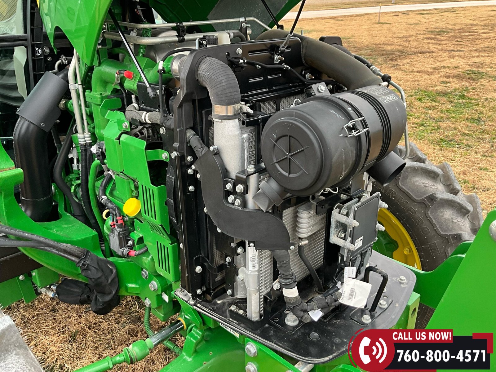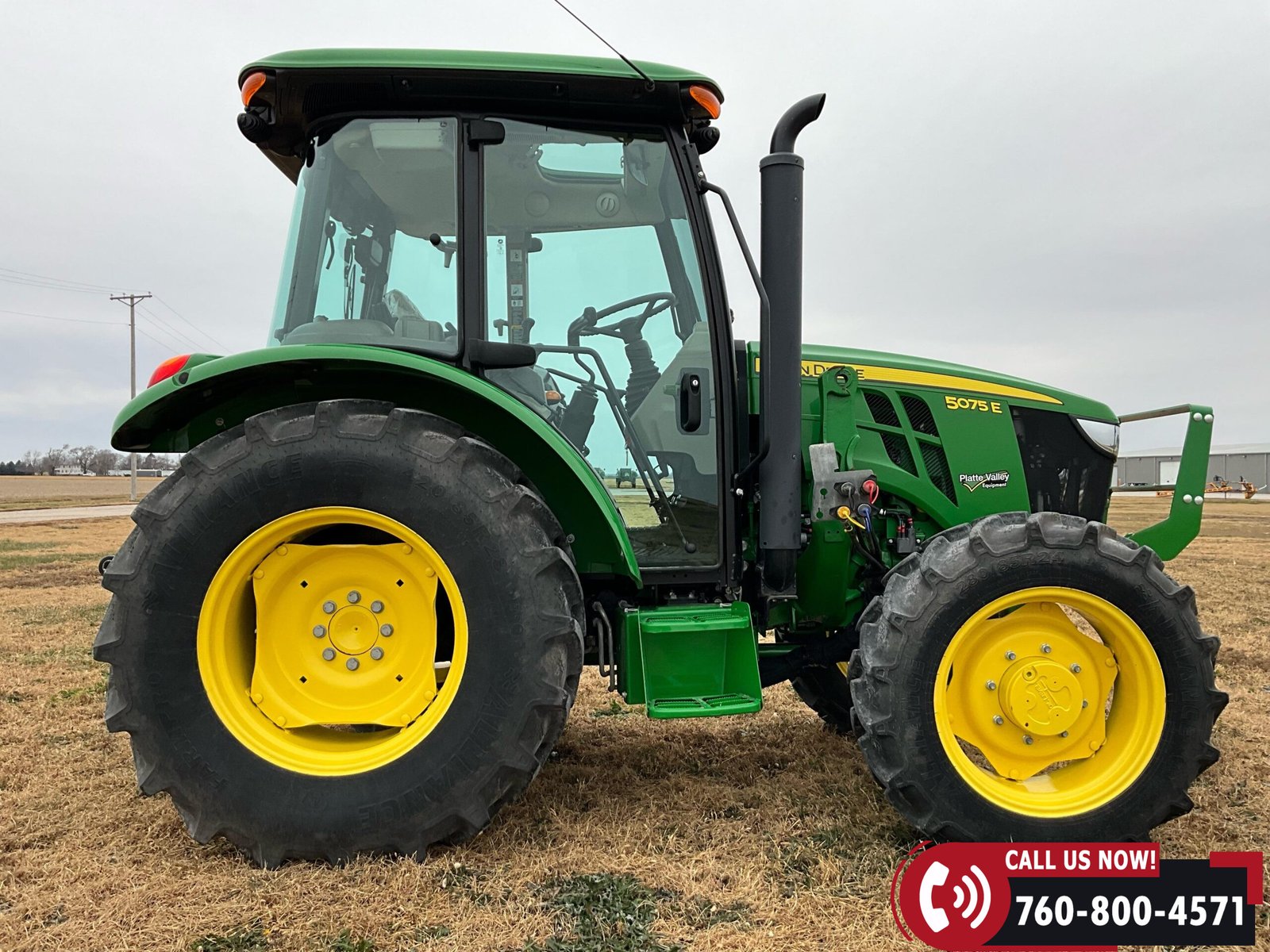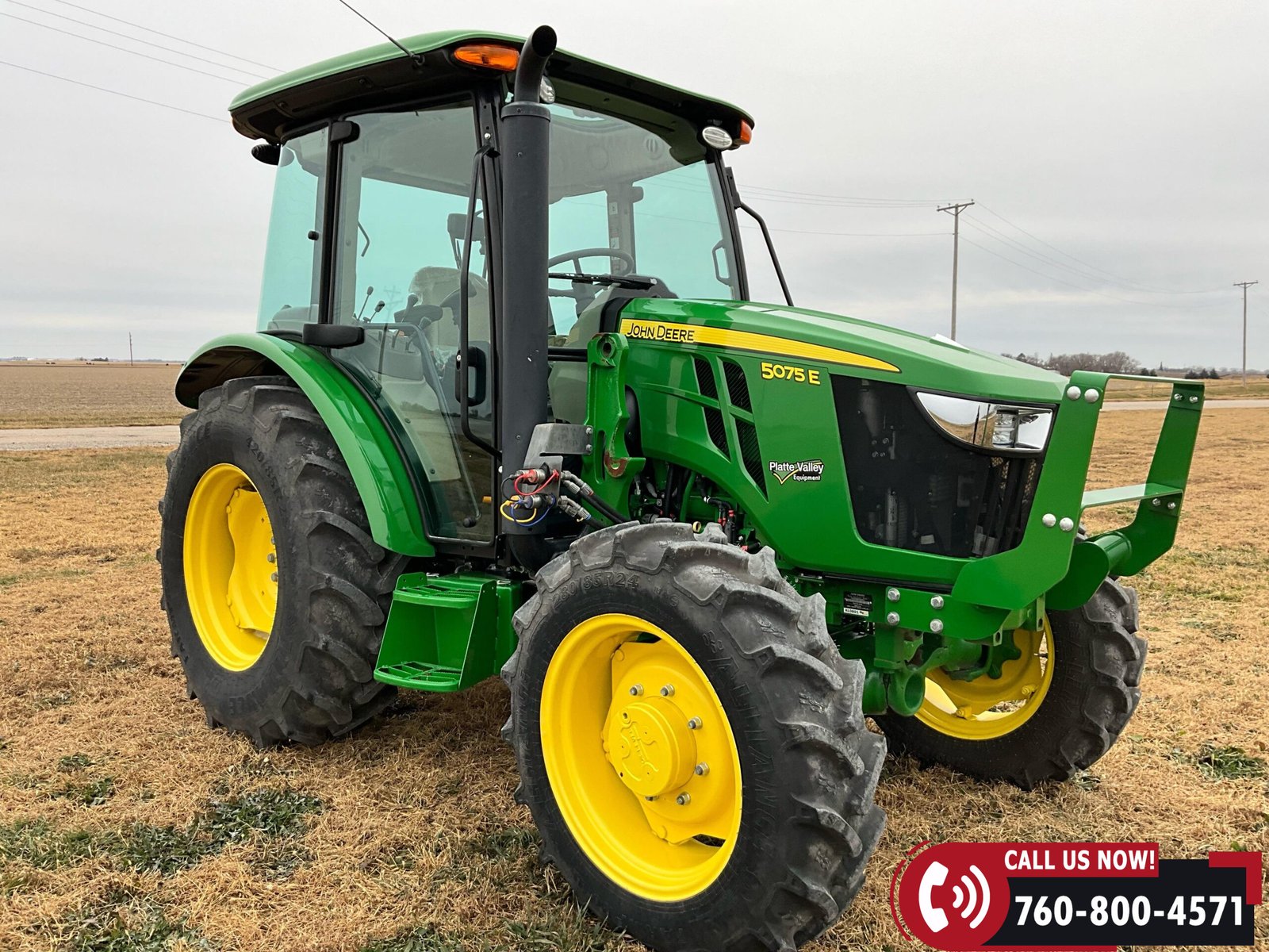 2023 John Deere 5075E MFWD Tractor with 87 hours showing. Powered by a John Deere 3029EWR 2.9L 3-cylinder turbocharged aftercooled diesel engine rated at 75 HP, water-cooled, and equipped with an engine block heater.