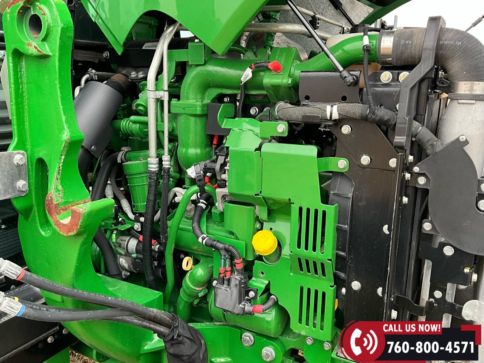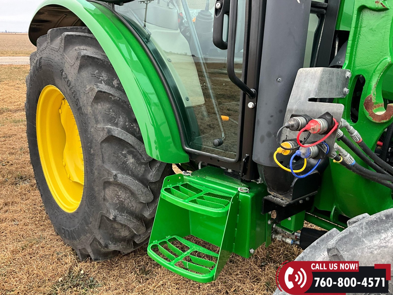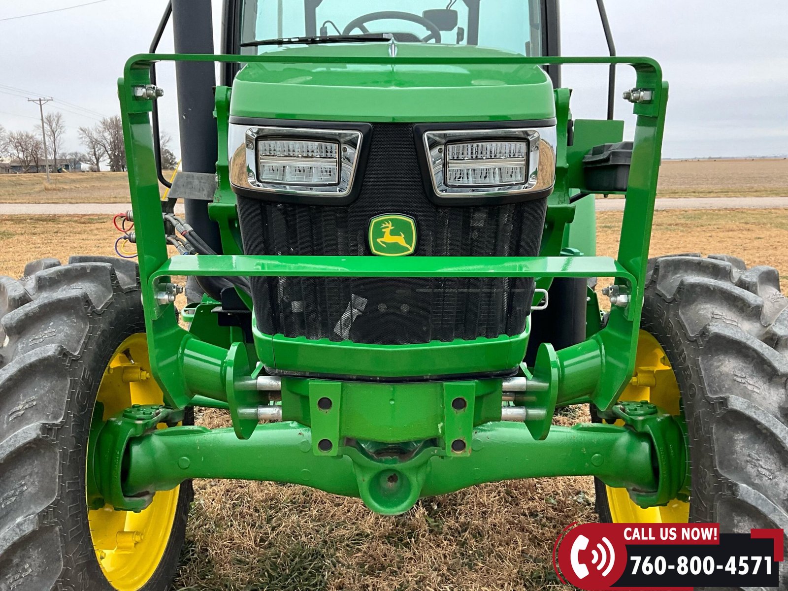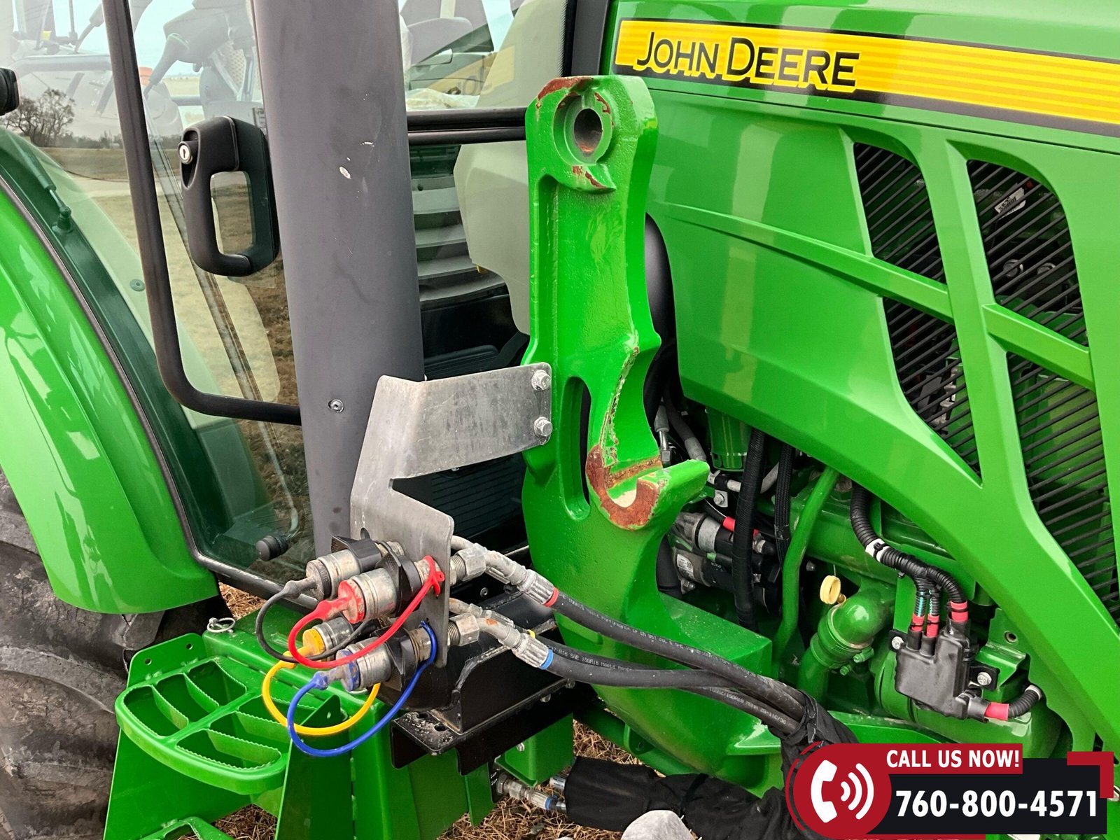 2023 John Deere 5075E MFWD Tractor with 87 hours showing. Powered by a John Deere 3029EWR 2.9L 3-cylinder turbocharged aftercooled diesel engine rated at 75 HP, water-cooled, and equipped with an engine block heater.