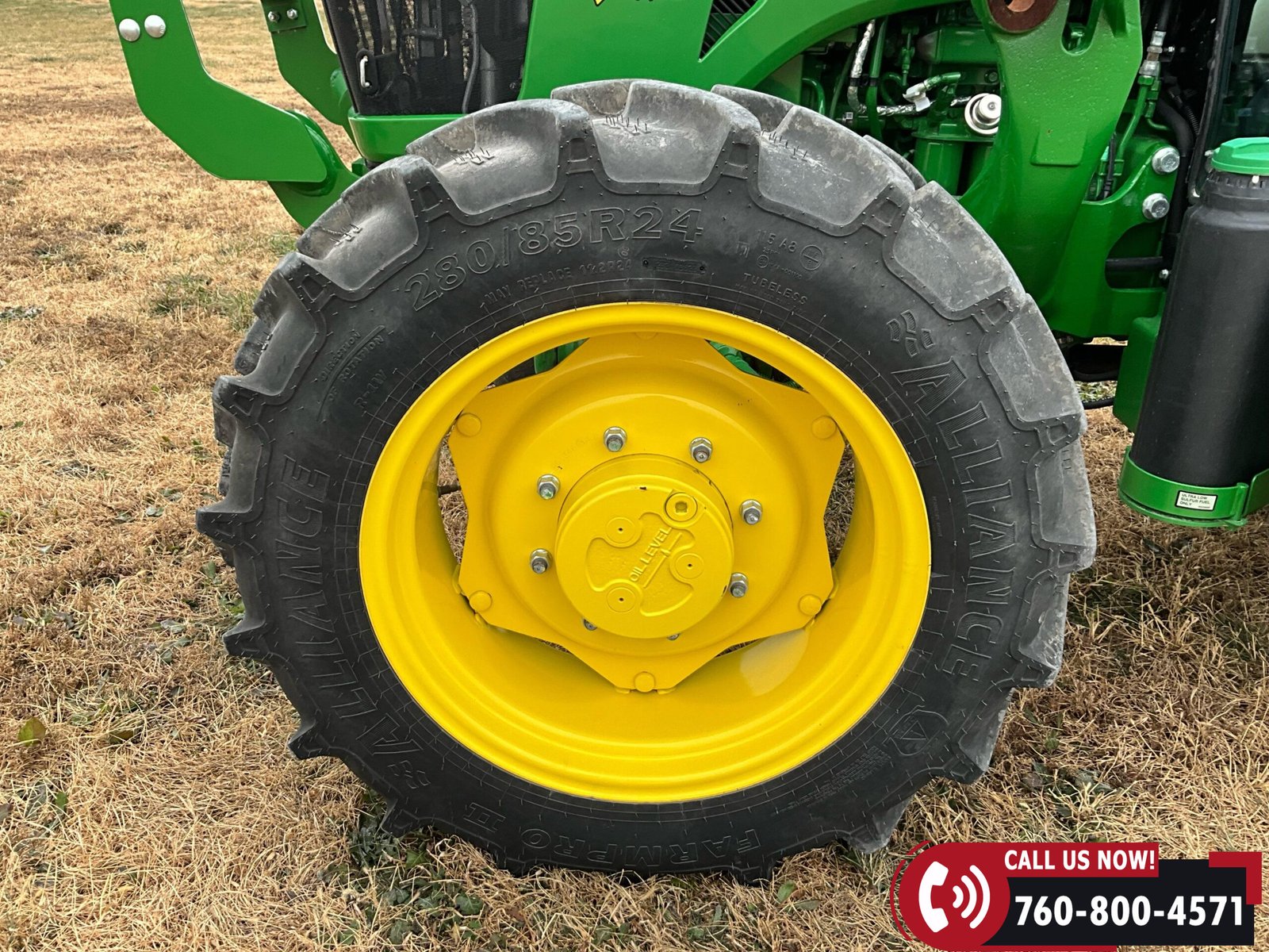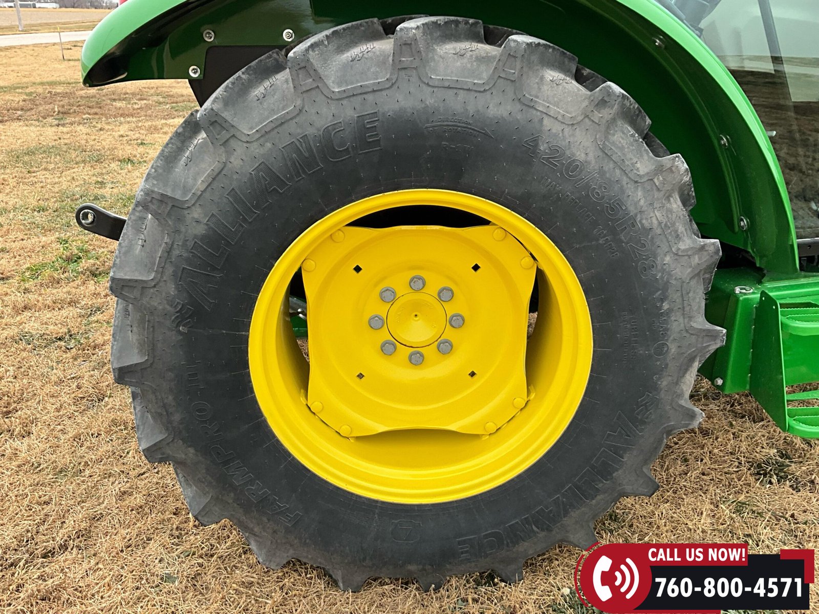 Rides on Alliance FarmPro II 280/85R24 front tires and Alliance FarmPro II 420/85R28 rear tires.