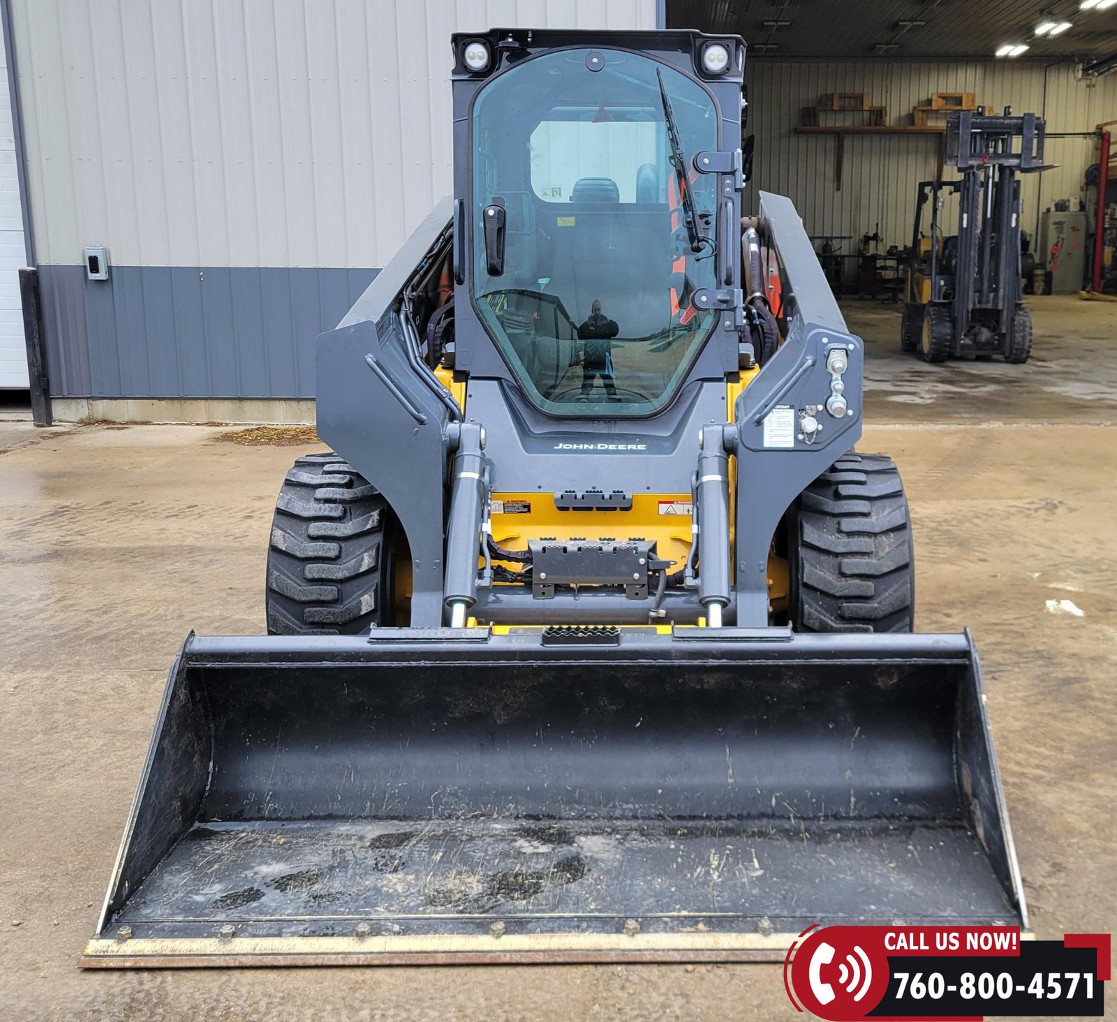 2024 John Deere 330G Skid Steer, 78 Hrs Showing, 88Hp, Yanmar Diesel Engine, Block Heater, Hydrostatic Transmission, Enclosed Cab W/Heat/AC, Radio, EH Controls, Air Ride Seat, 2 Speed, Self Leveling, Aux Hydraulics, Reversing Fan, 3 Way Switchable Controls, Deluxe Light Package, Rear View Camera, Cold Start Package, Pre Cleaner, 14-17.5 Tires, (6) Rear Weights, John Deere 84″ Construction Bucket