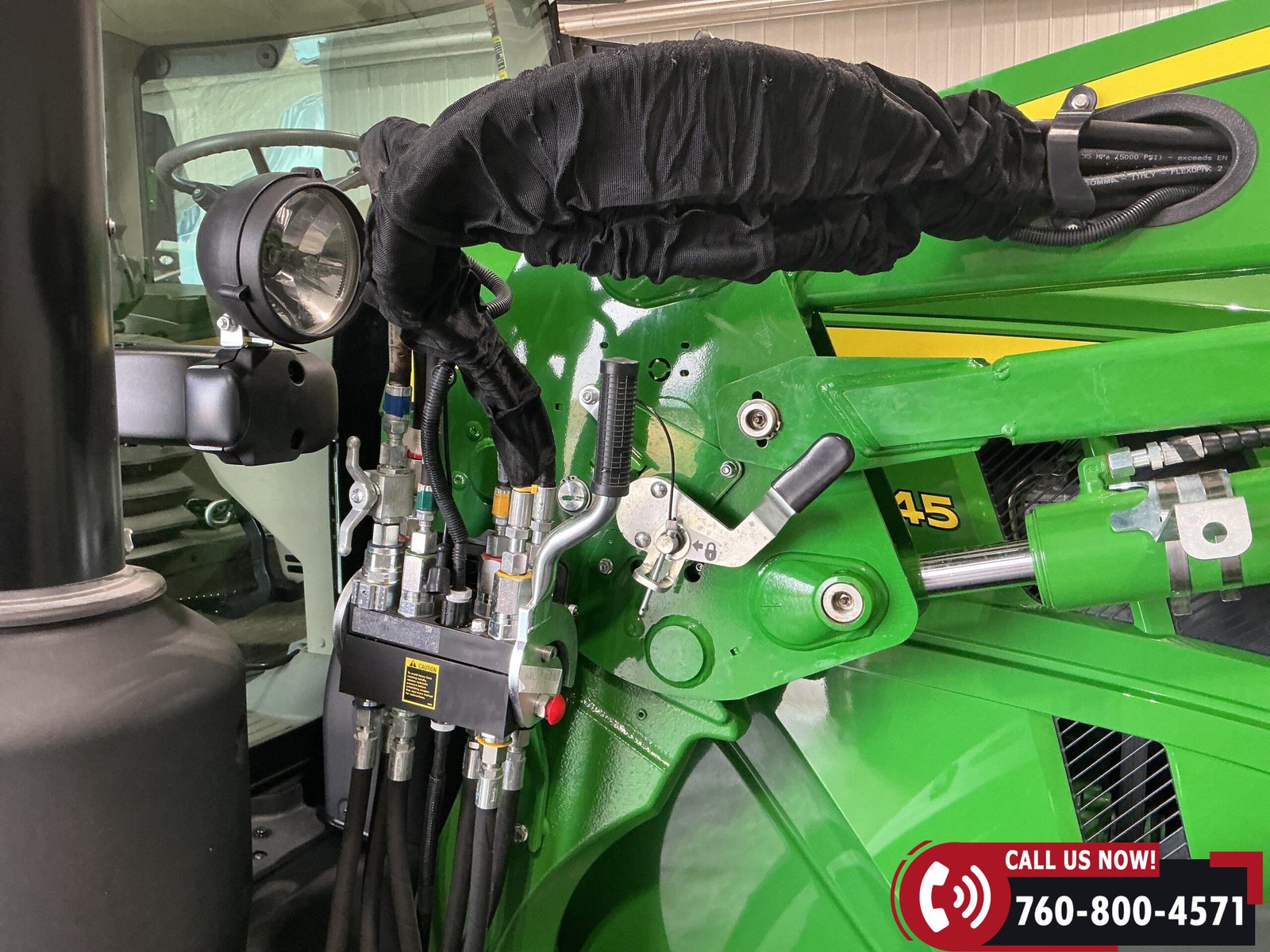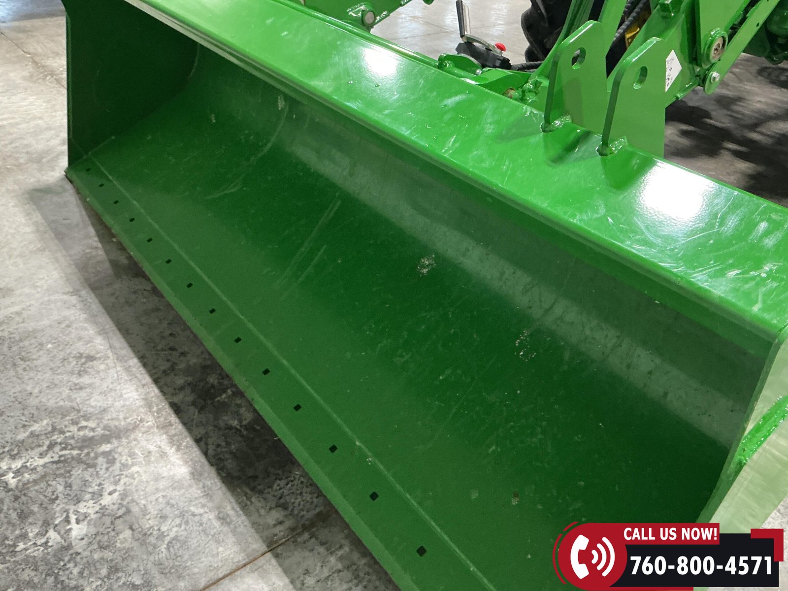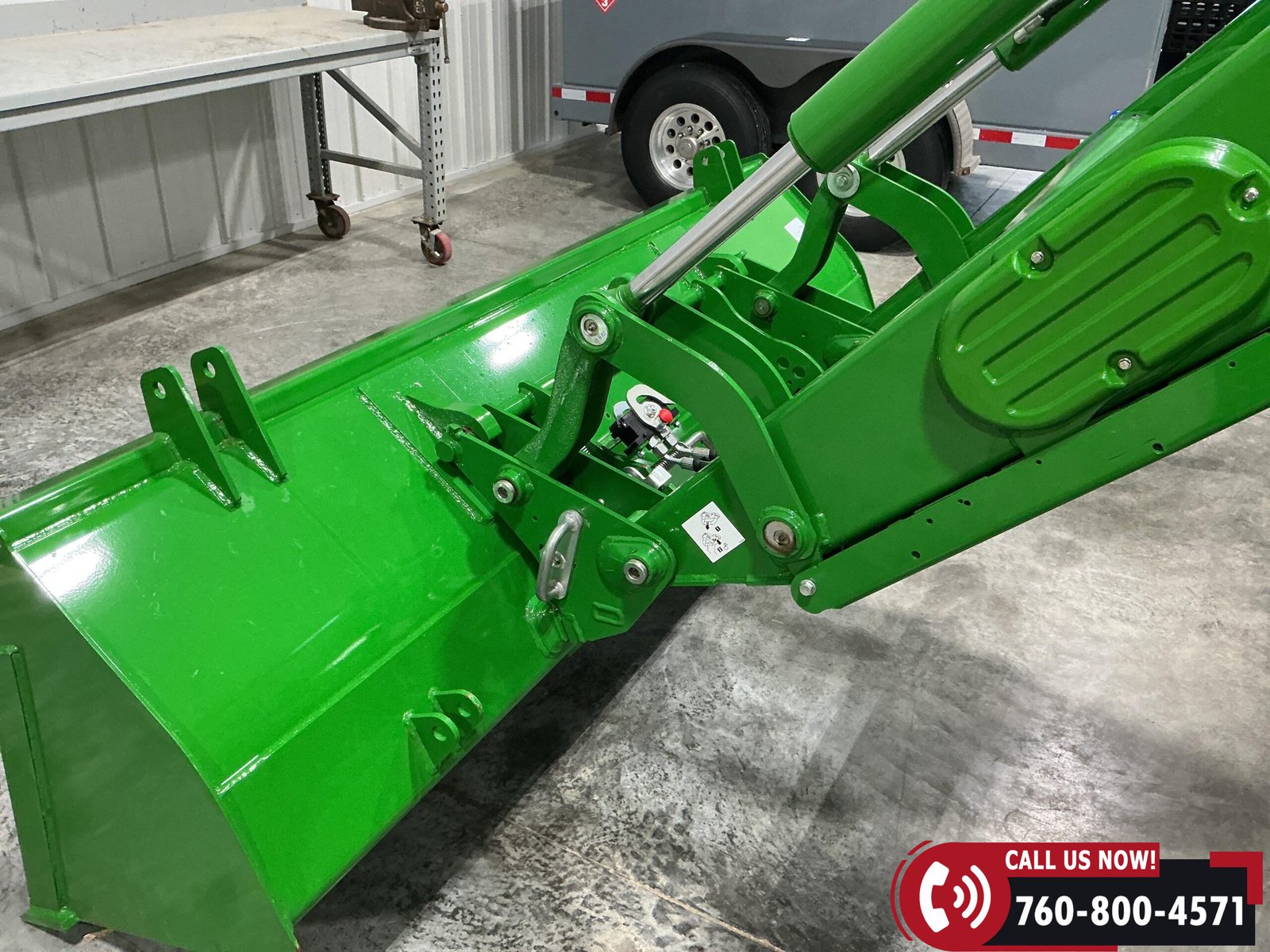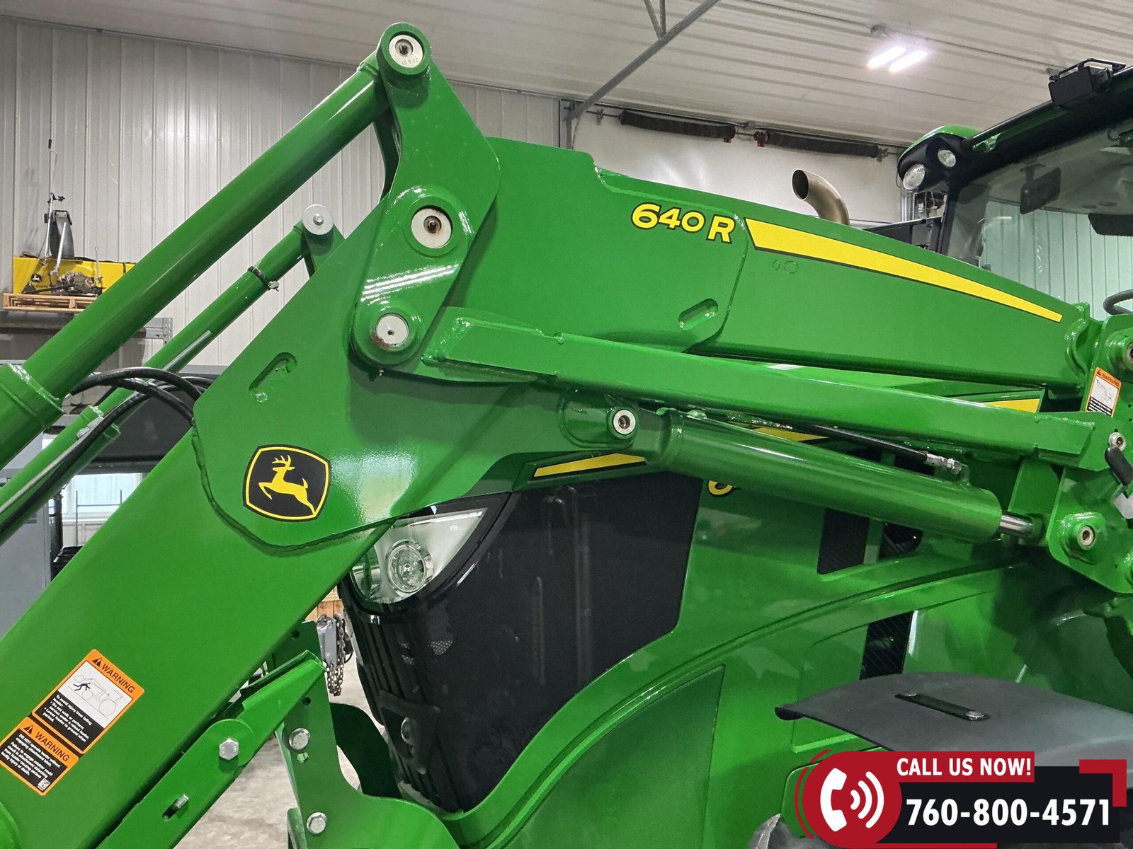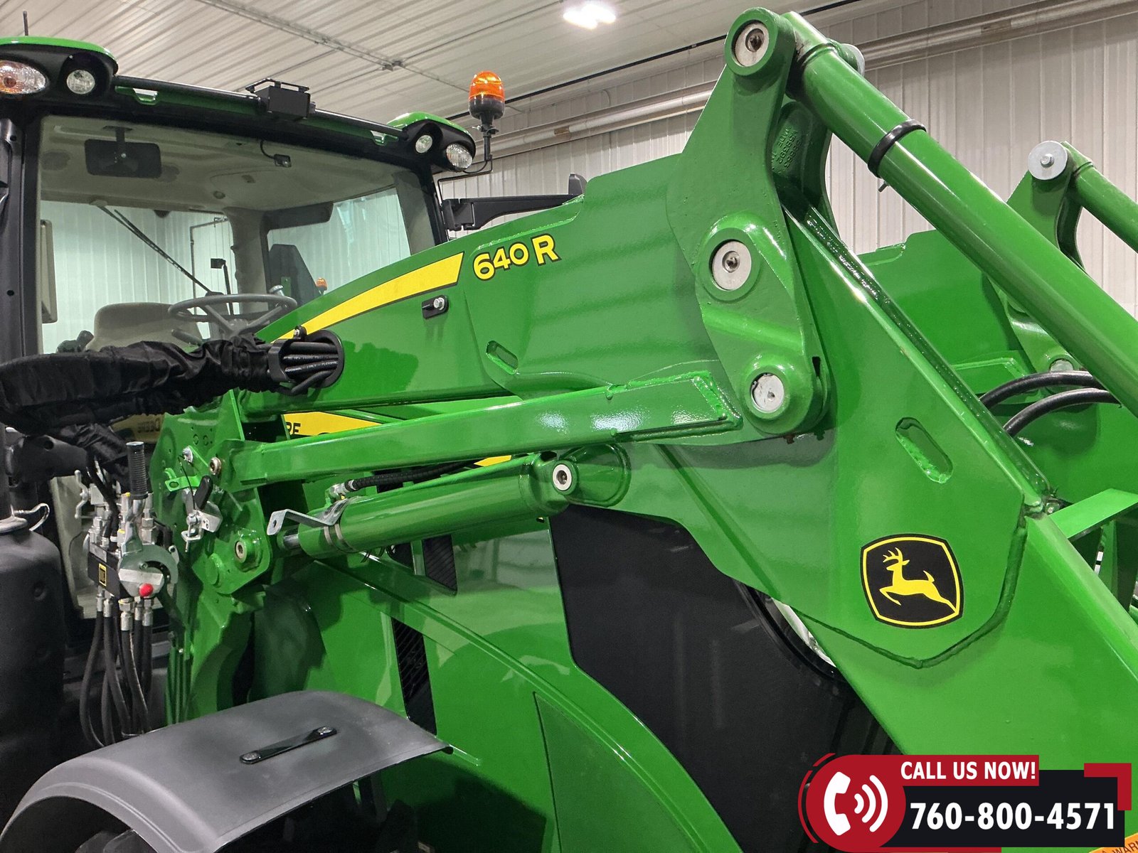 Includes a John Deere 640R quick-attach self-leveling loader with third-function hydraulic block and an 8-ft material bucket.