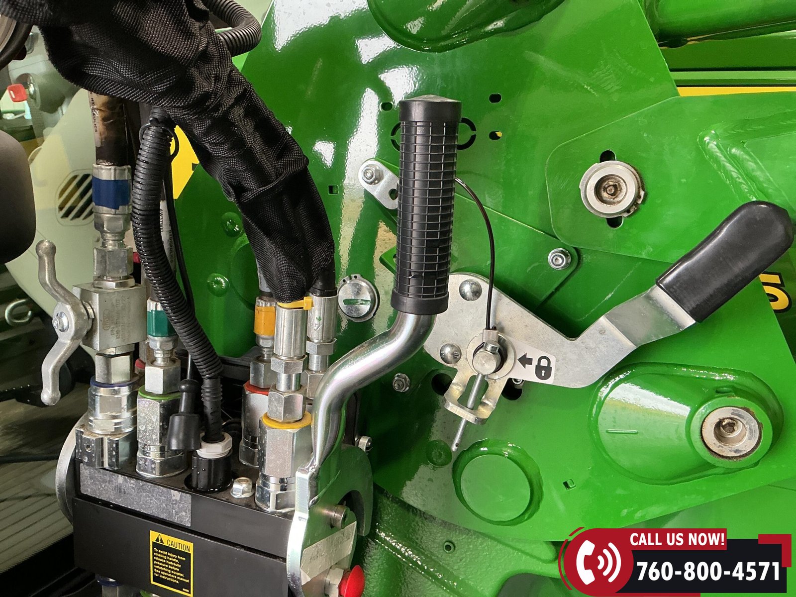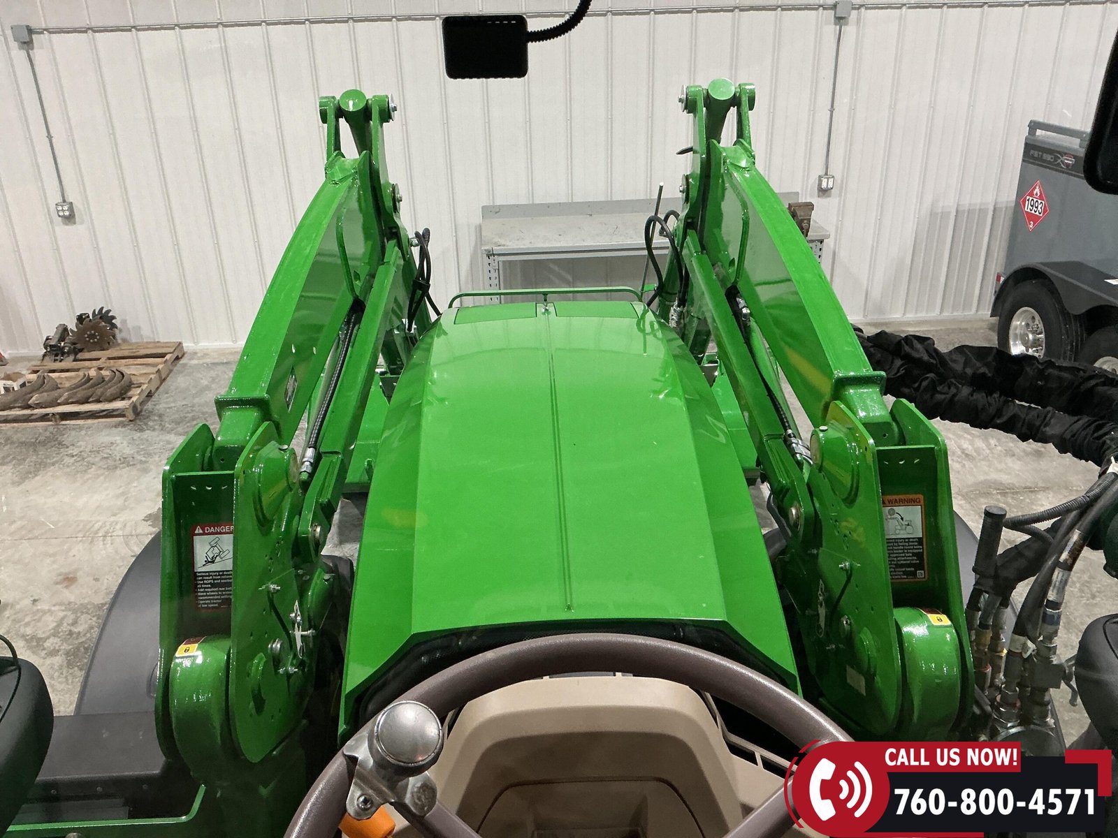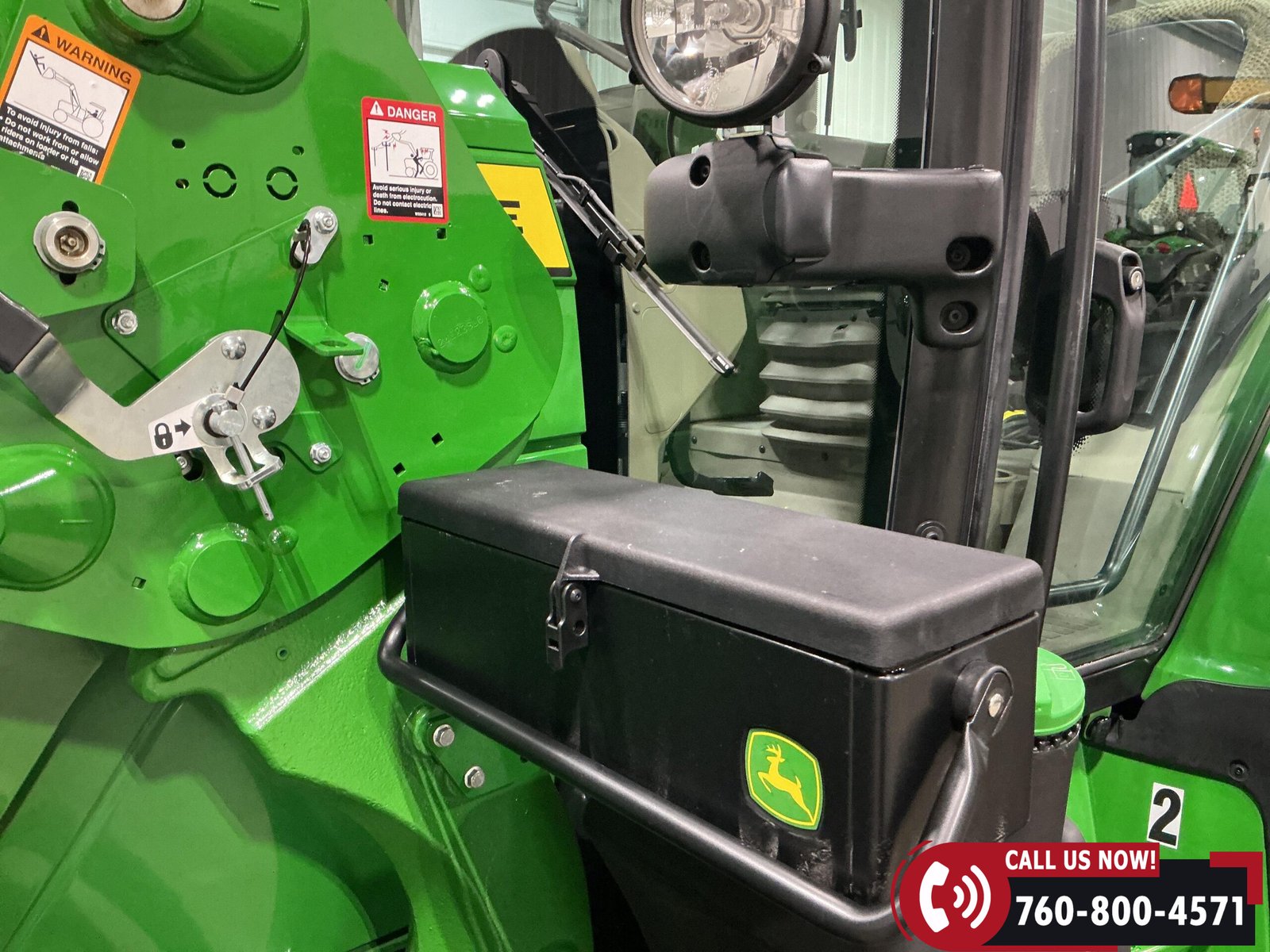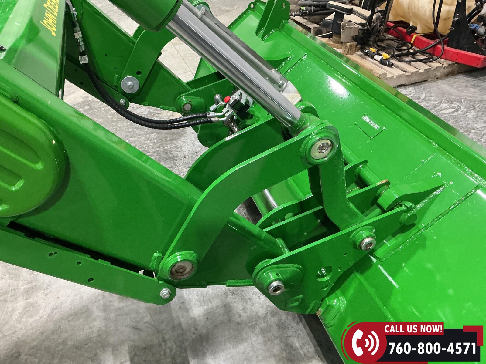 Includes a John Deere 640R quick-attach self-leveling loader with third-function hydraulic block and an 8-ft material bucket.