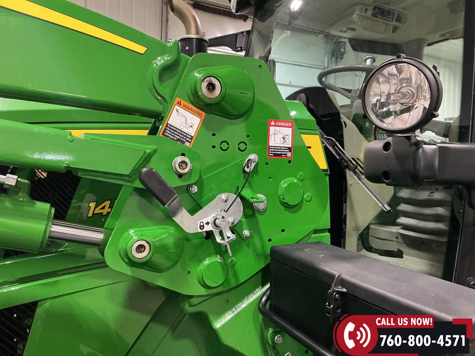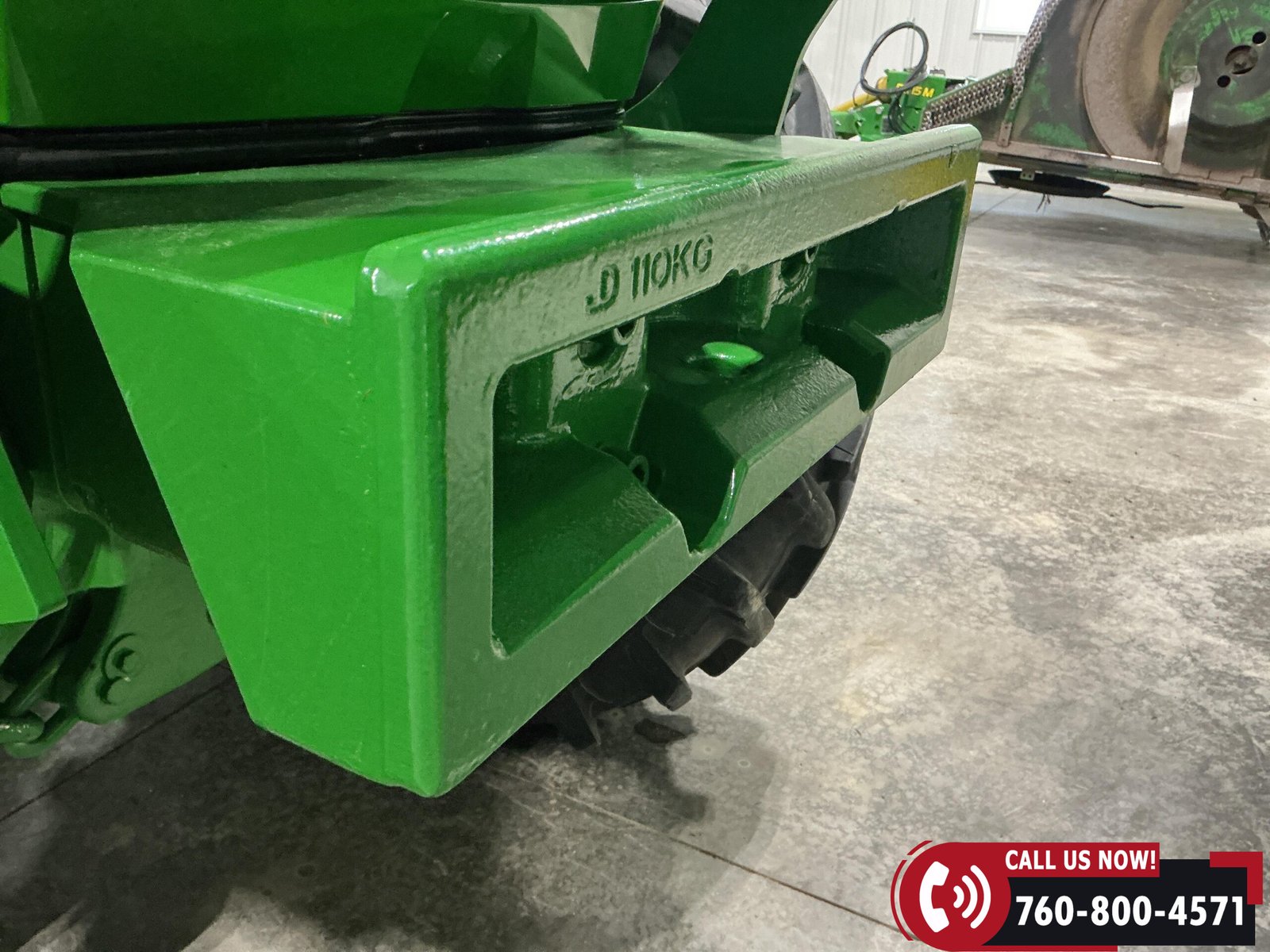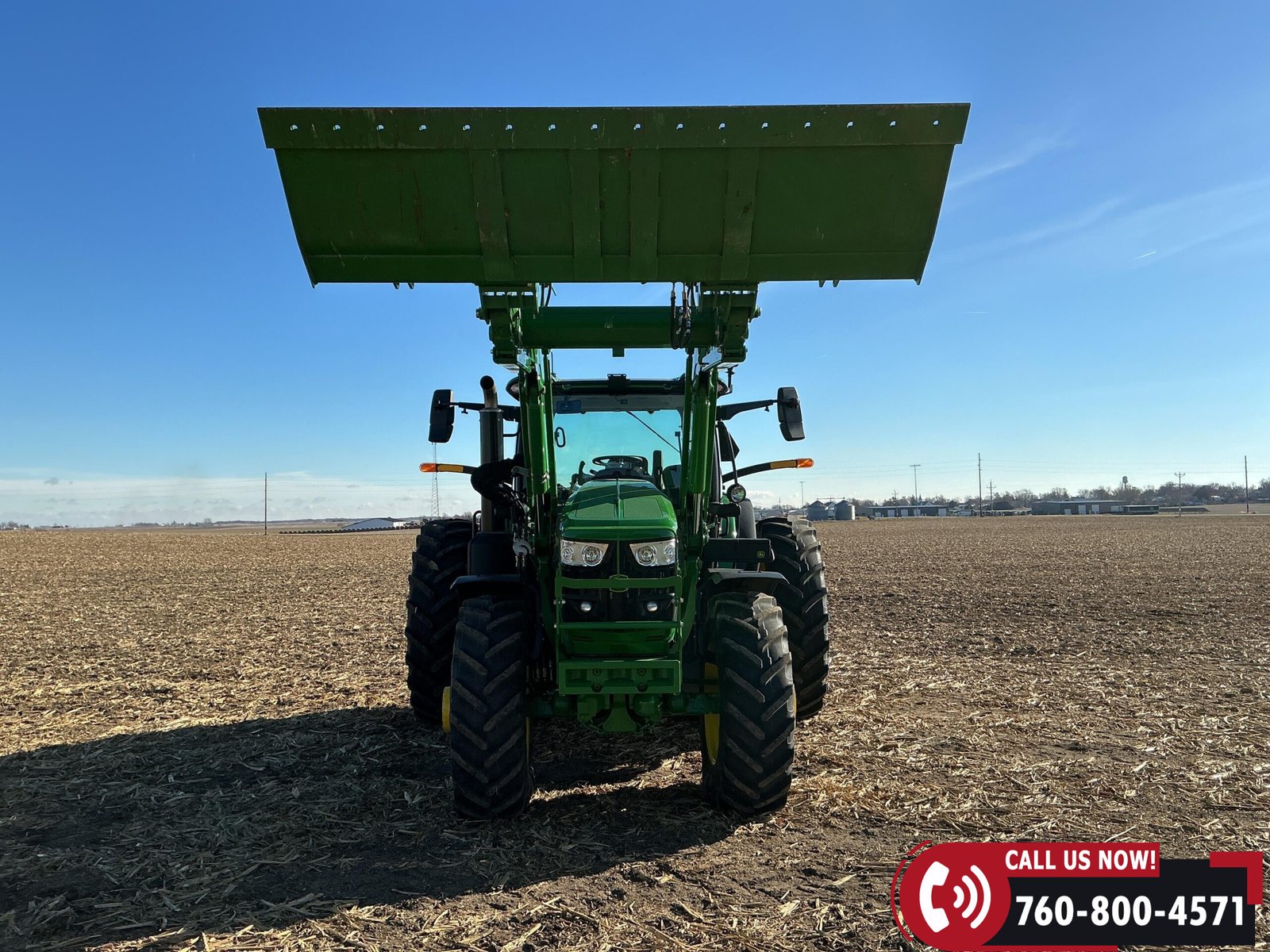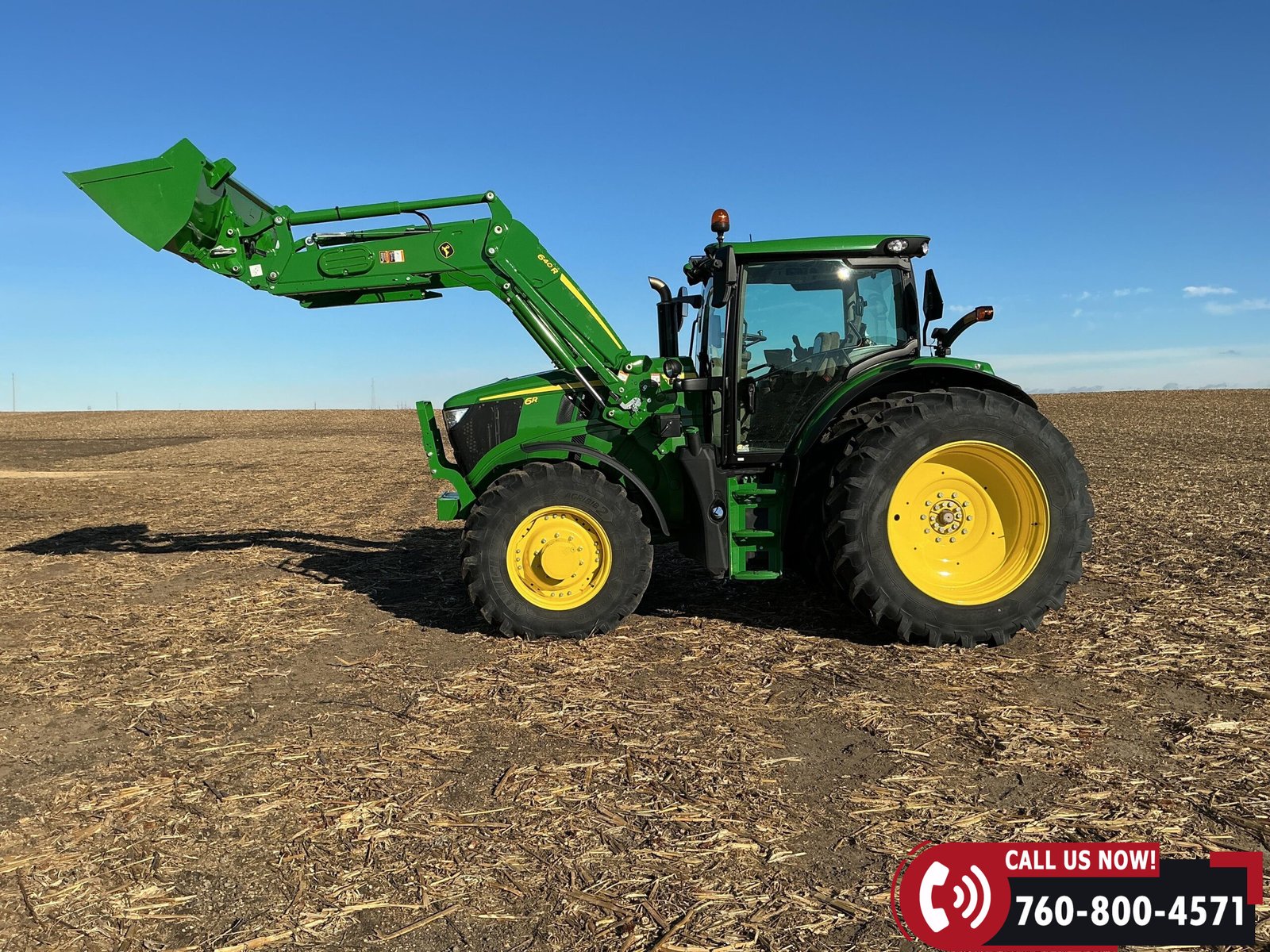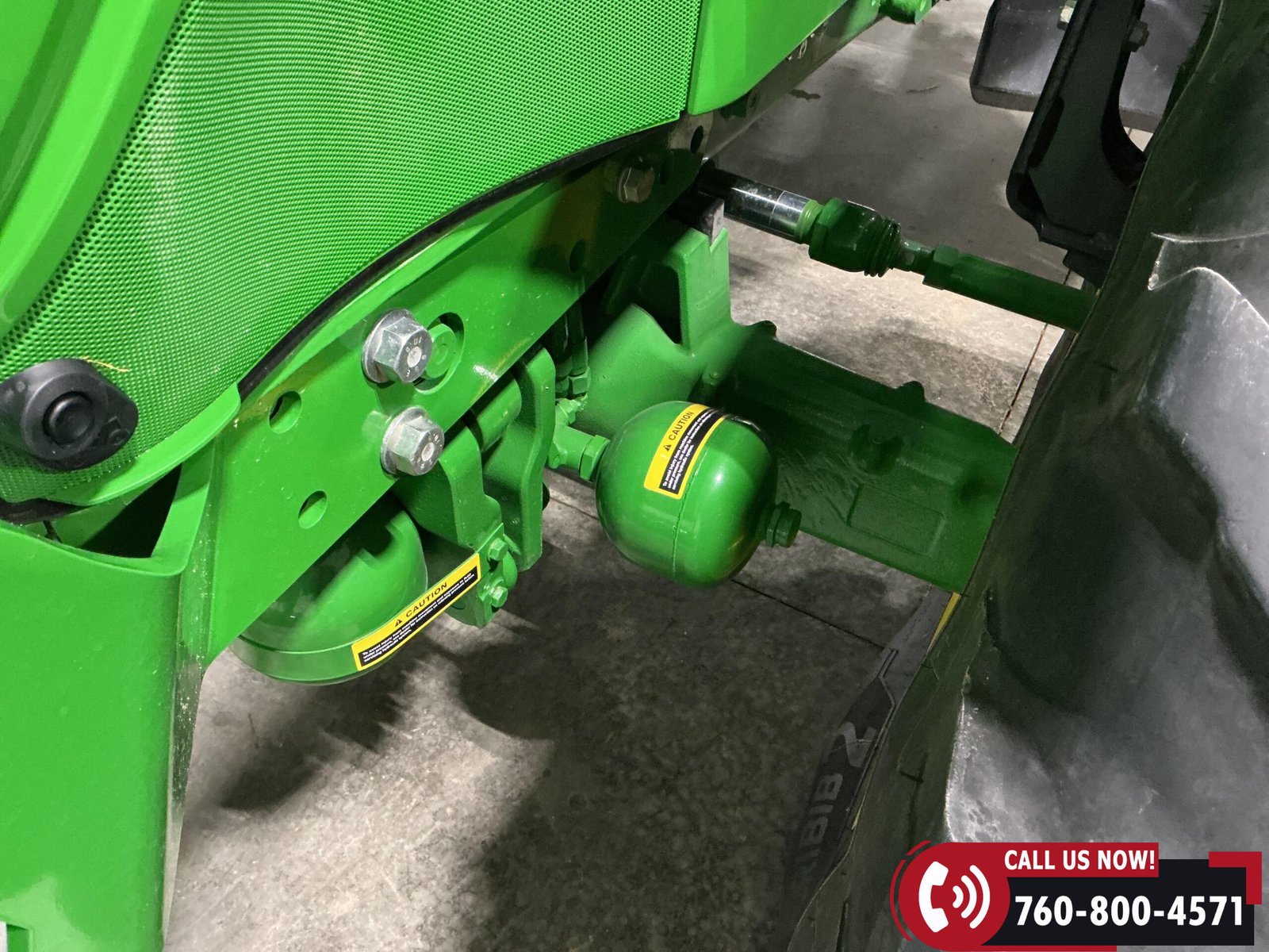Includes a John Deere 640R quick-attach self-leveling loader with third-function hydraulic block and an 8-ft material bucket.