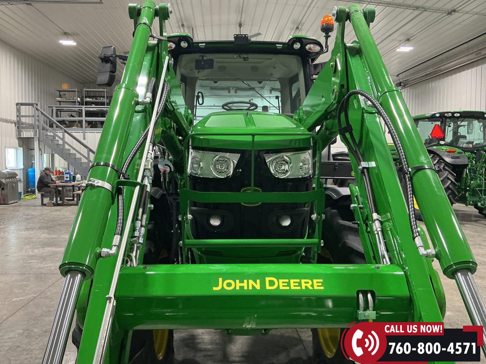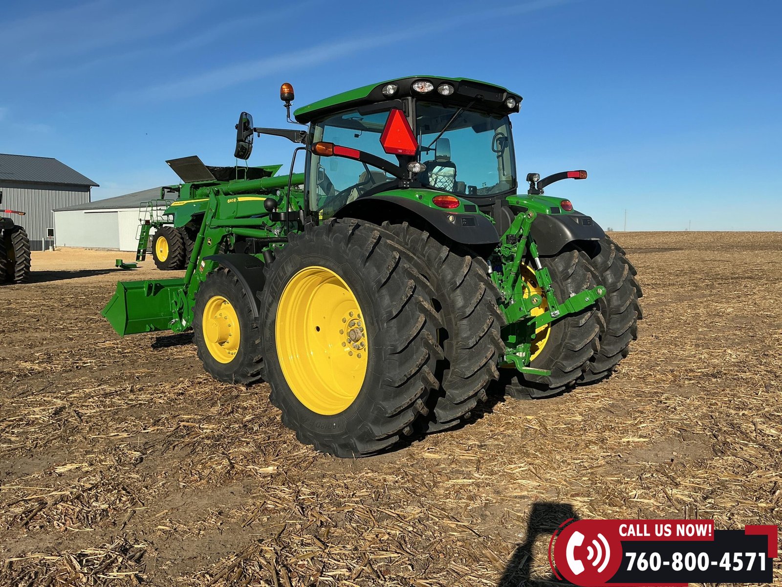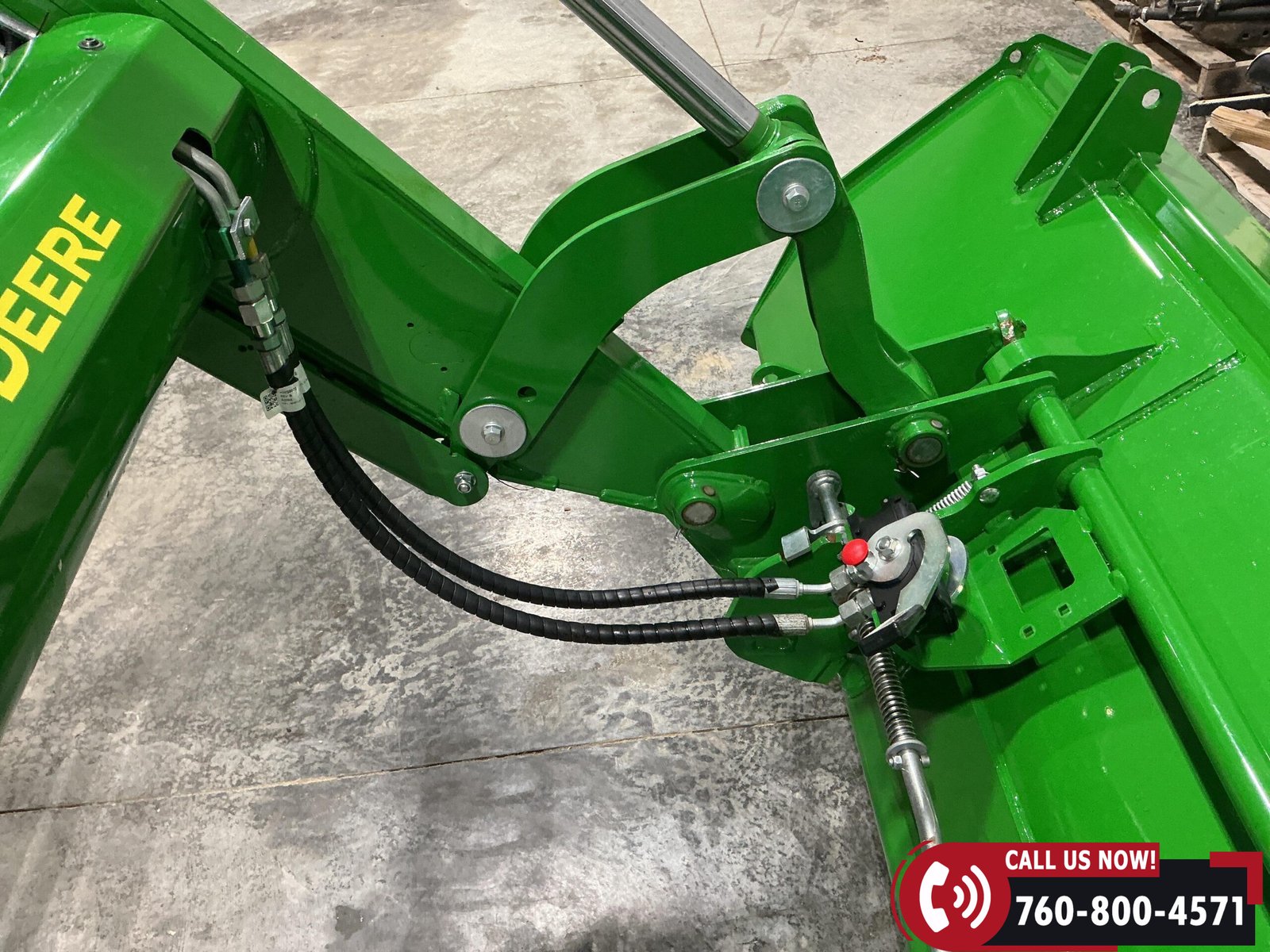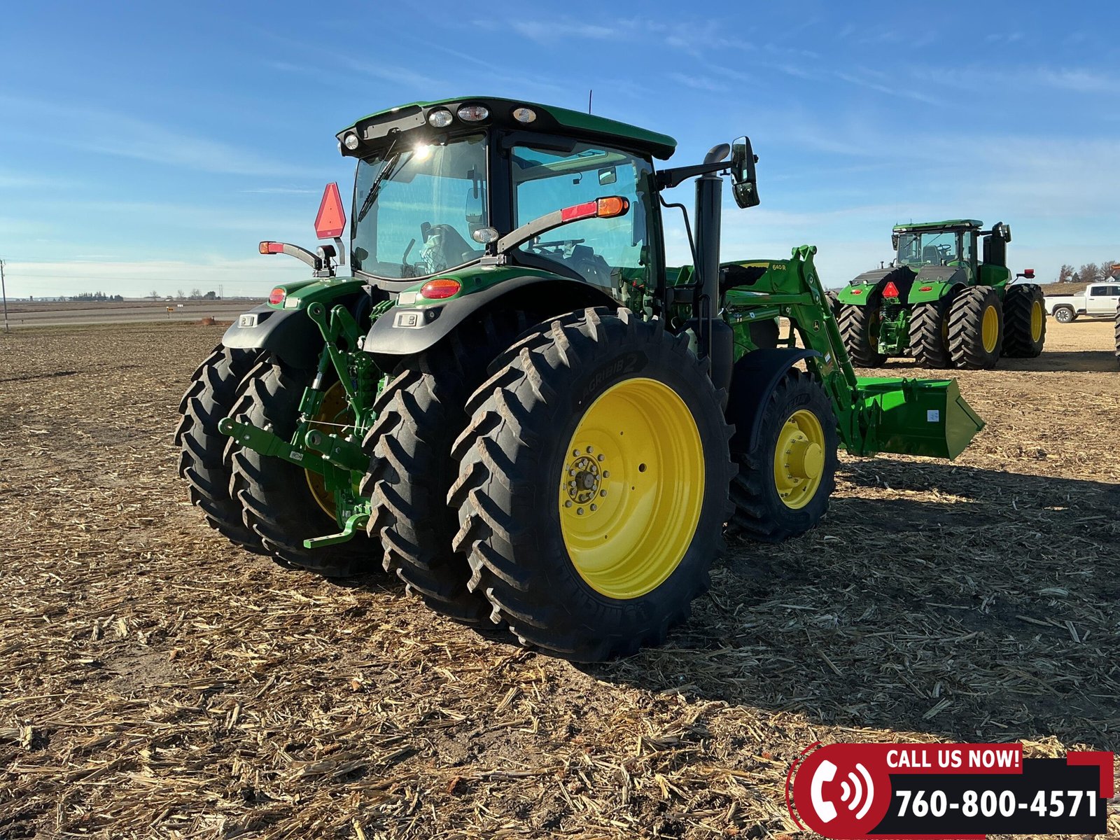 Includes a John Deere 640R quick-attach self-leveling loader with third-function hydraulic block and an 8-ft material bucket.