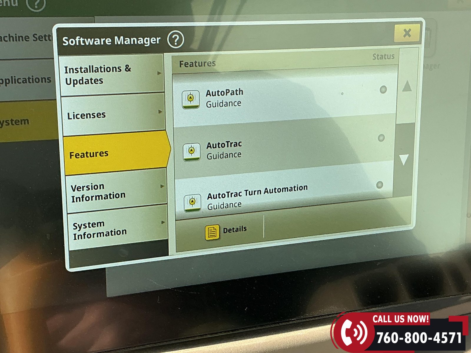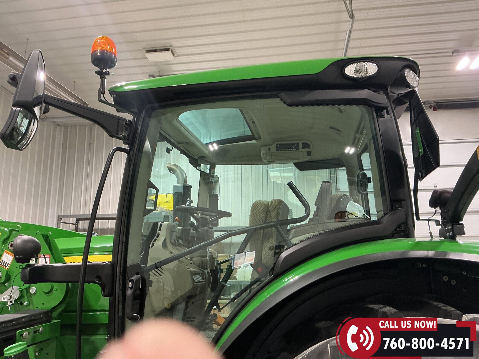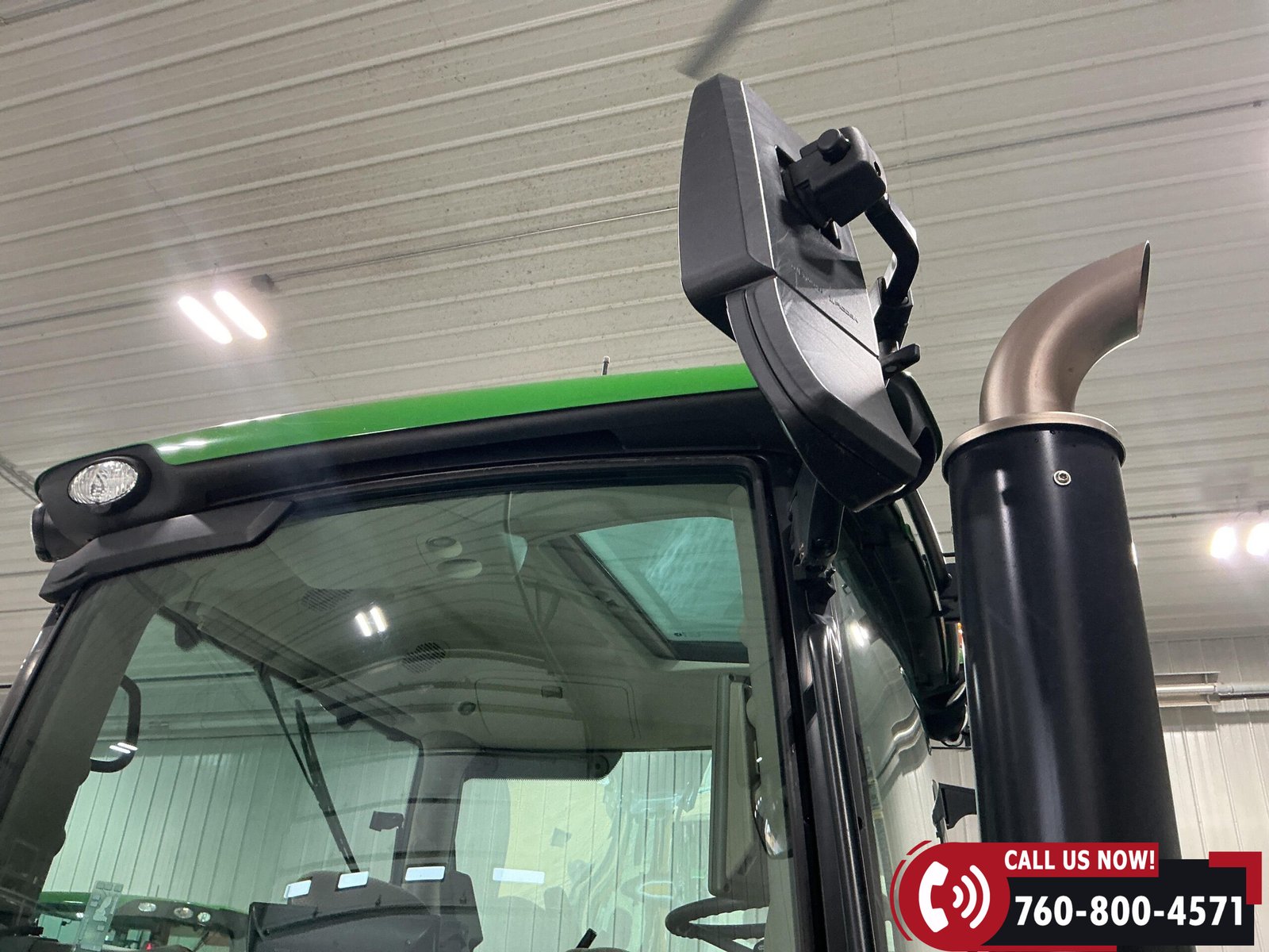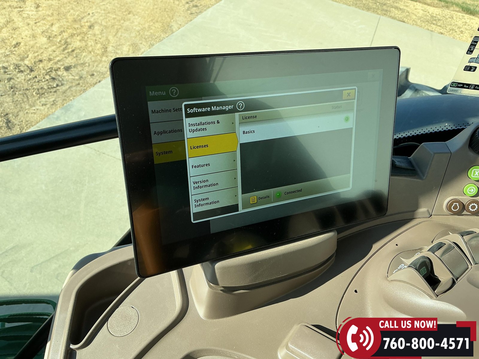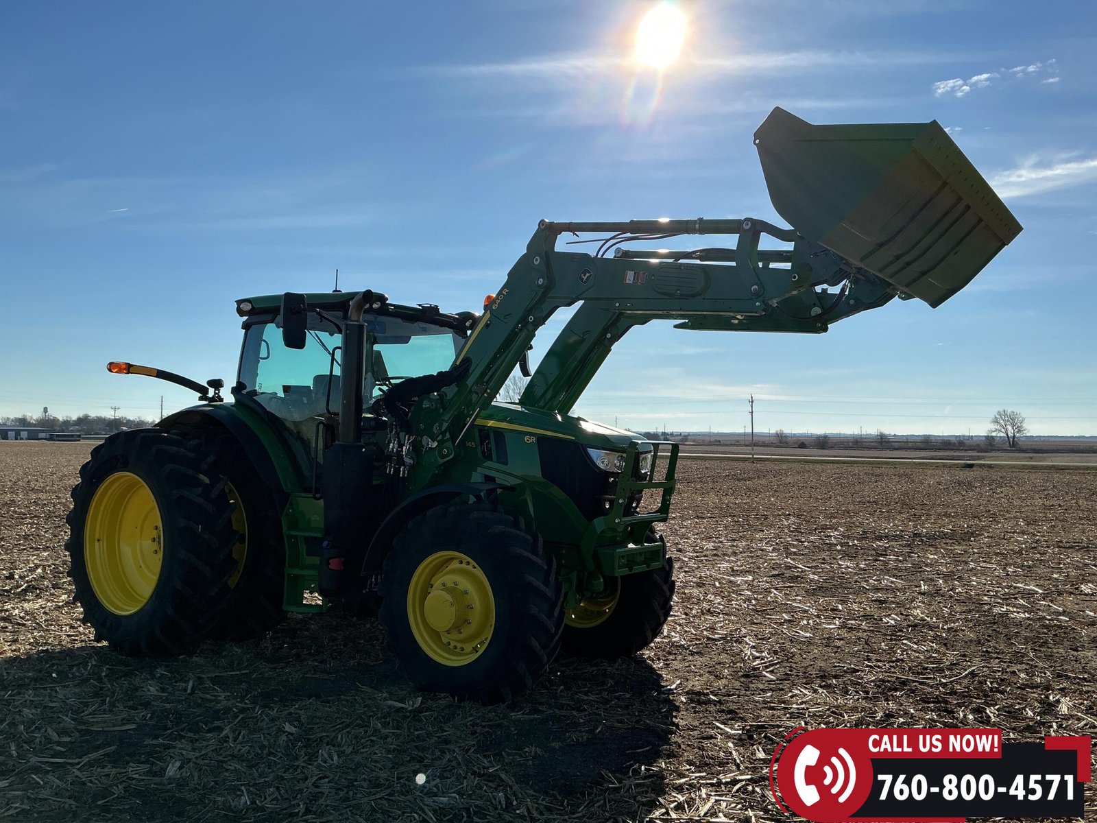 Includes a John Deere 640R quick-attach self-leveling loader with third-function hydraulic block and an 8-ft material bucket.