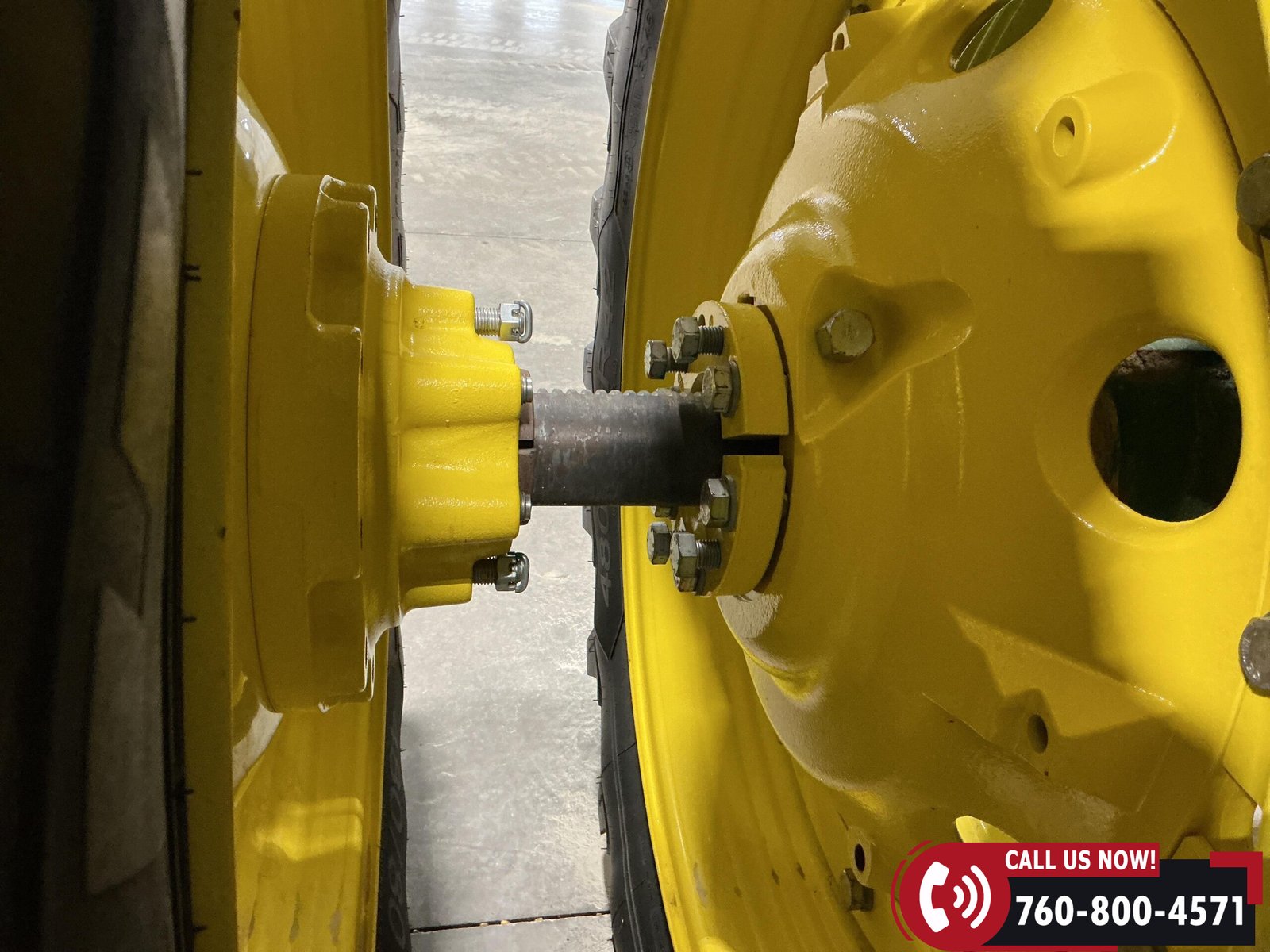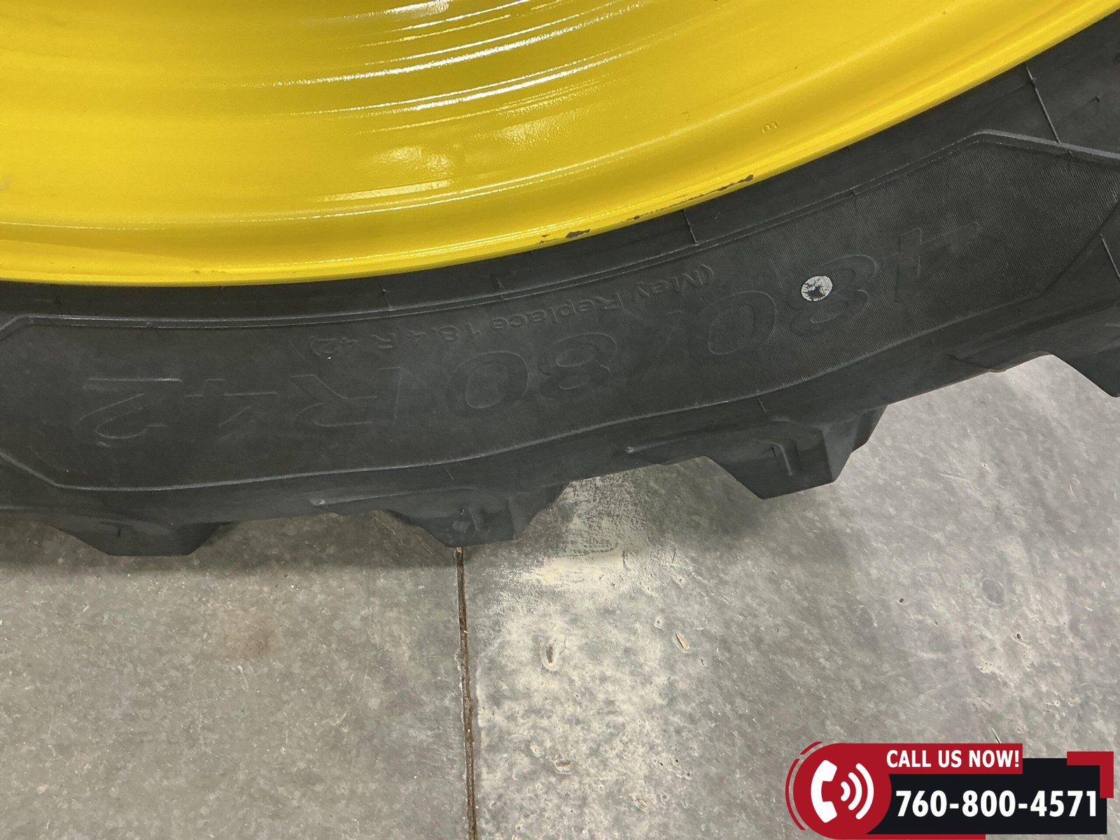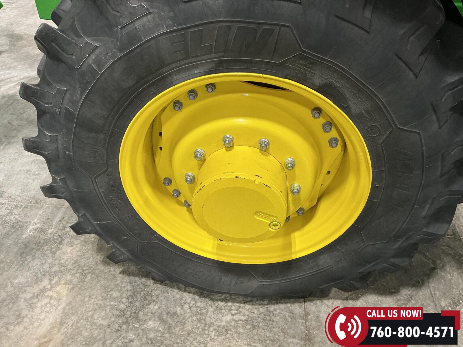 Rides on 420/85R28 front tires and 480/80R42 rear tires with duals.