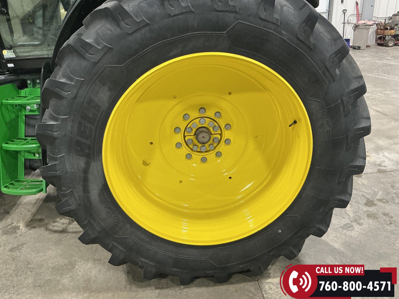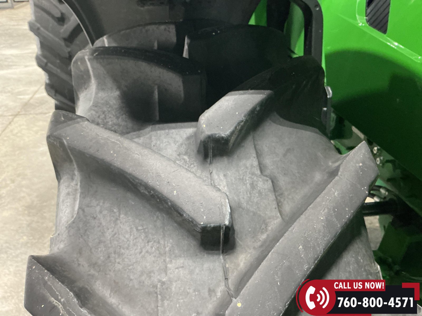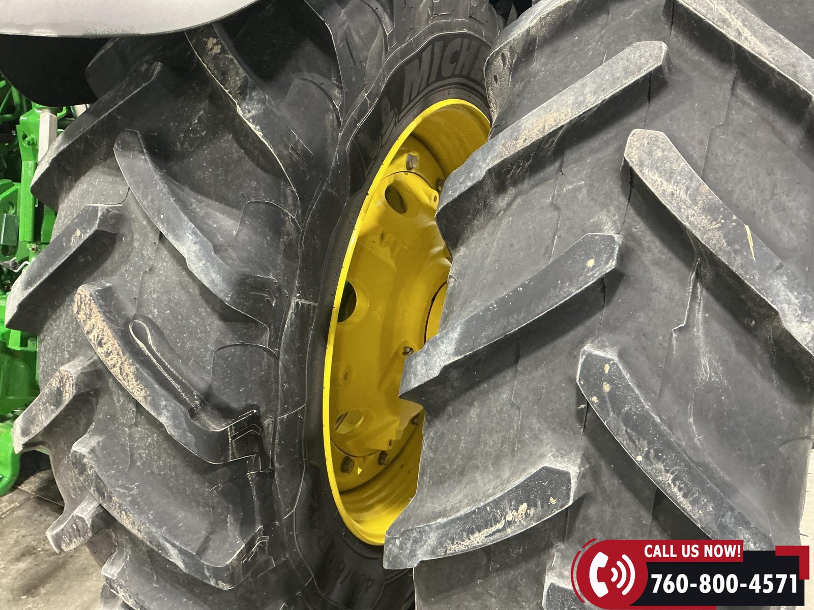 Rides on 420/85R28 front tires and 480/80R42 rear tires with duals.