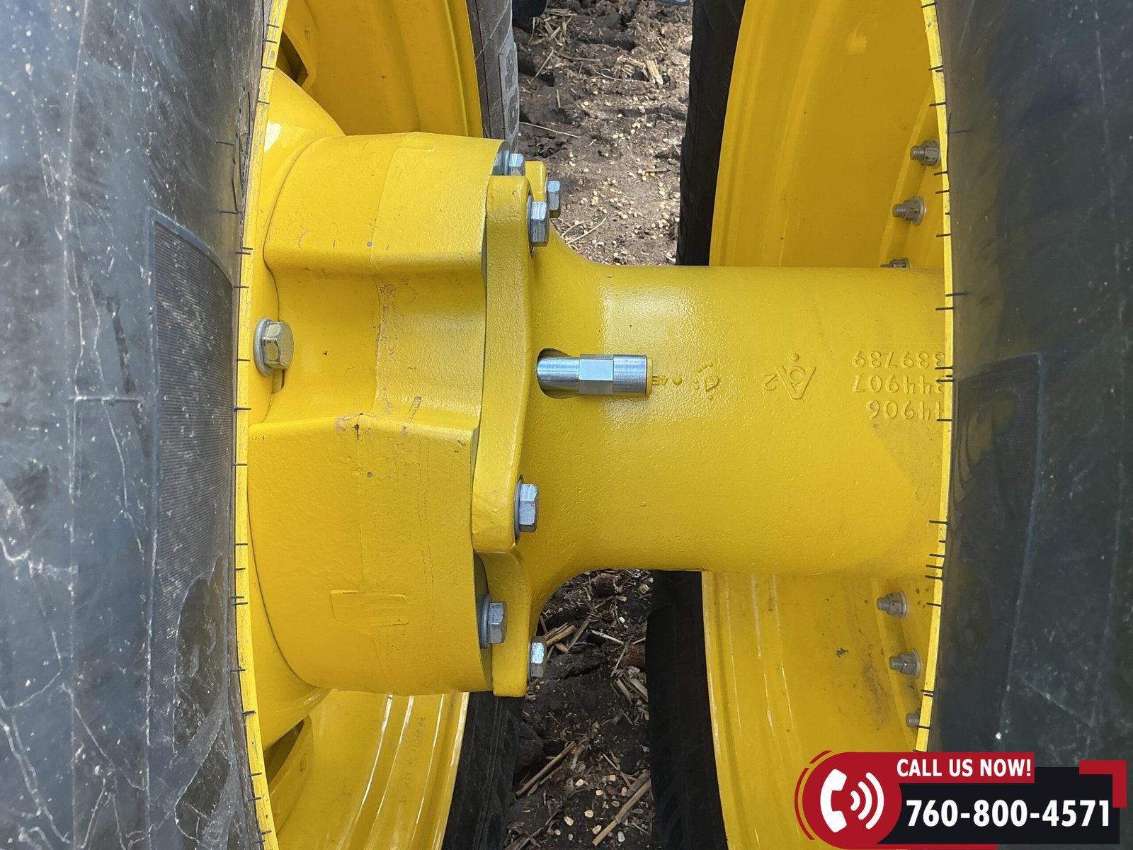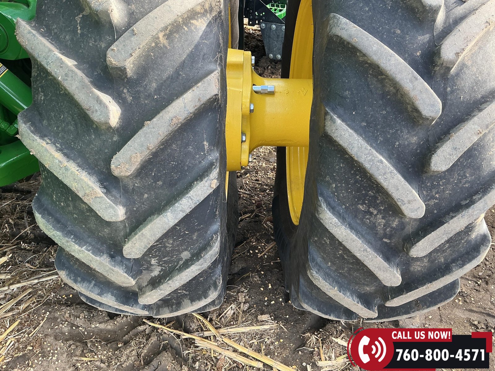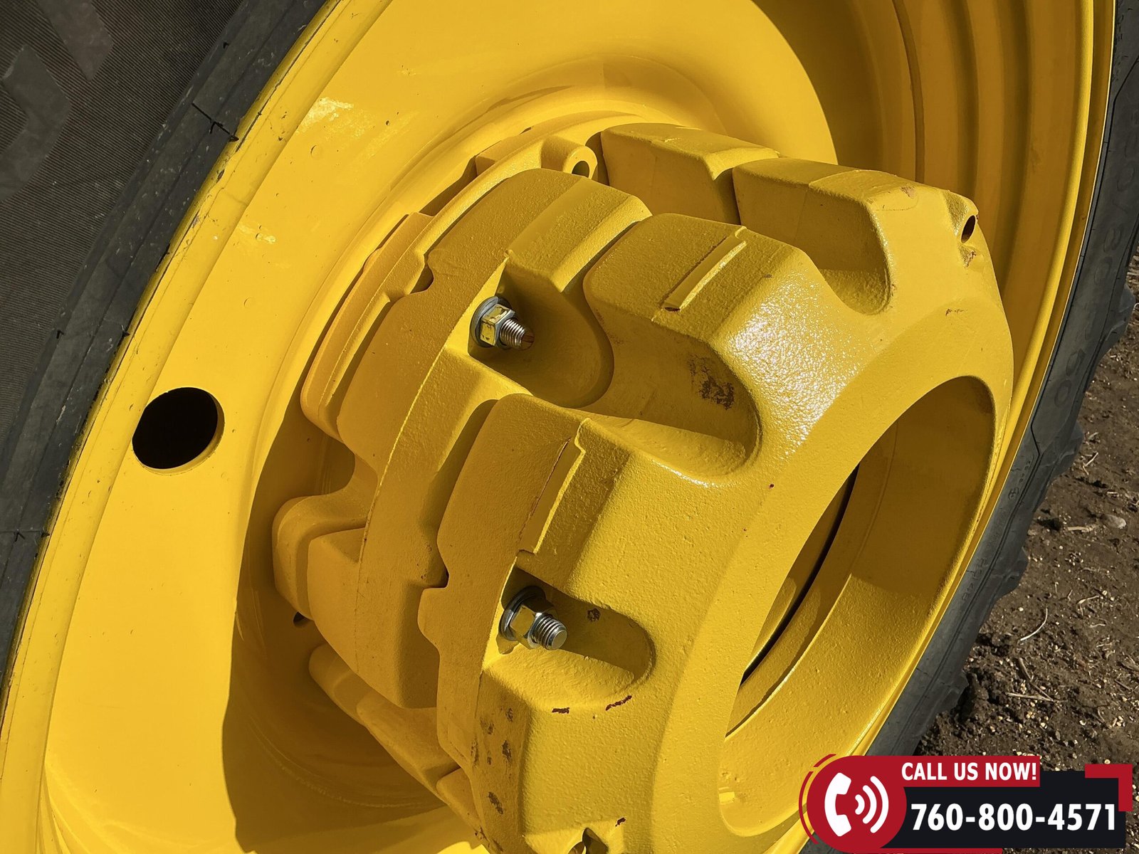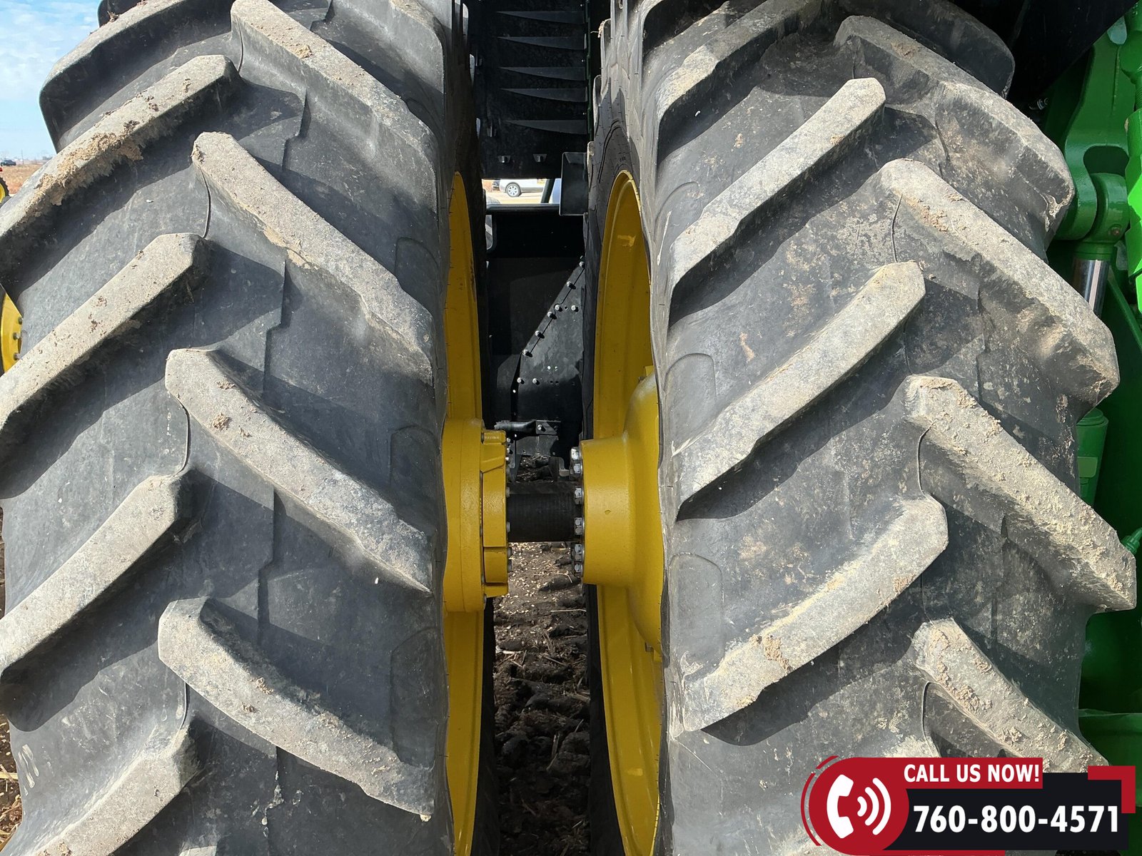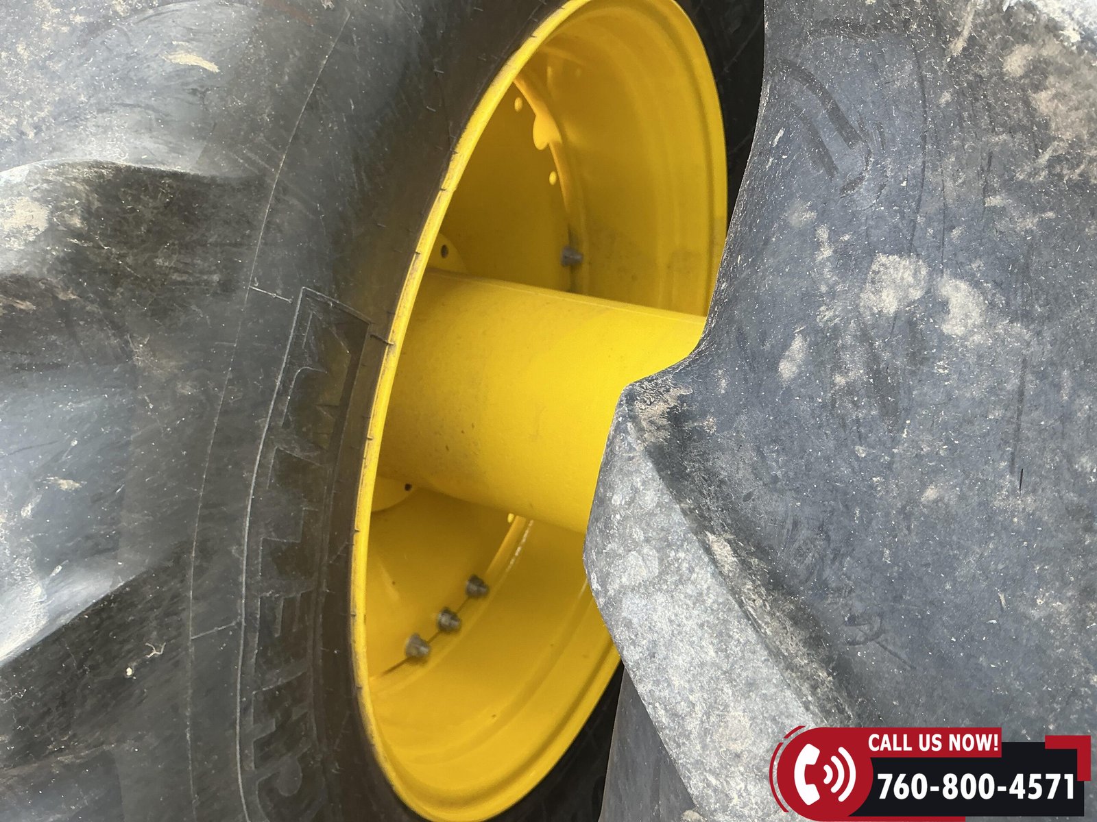 Rides on 480/70R34 front tires with duals and 480/80R50 rear tires with duals. Rear wheels include (4) outer 205 kg (452 lb) weights and (2) inner 625 kg (1,377 lb) weights, totaling 4,562 lbs of rear wheel weight.